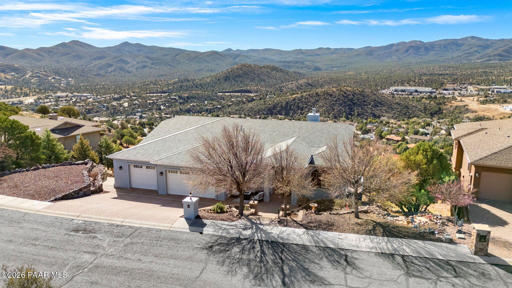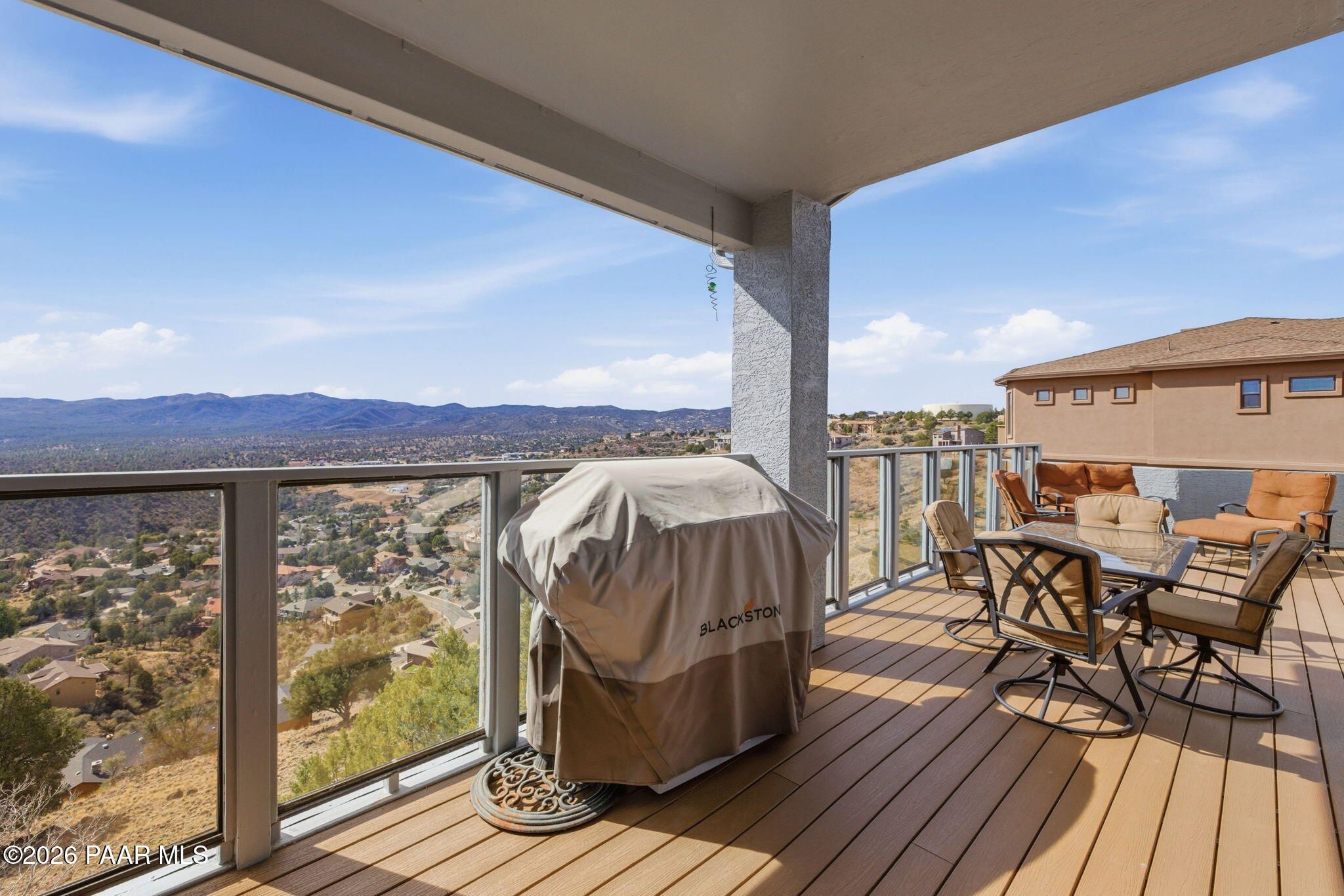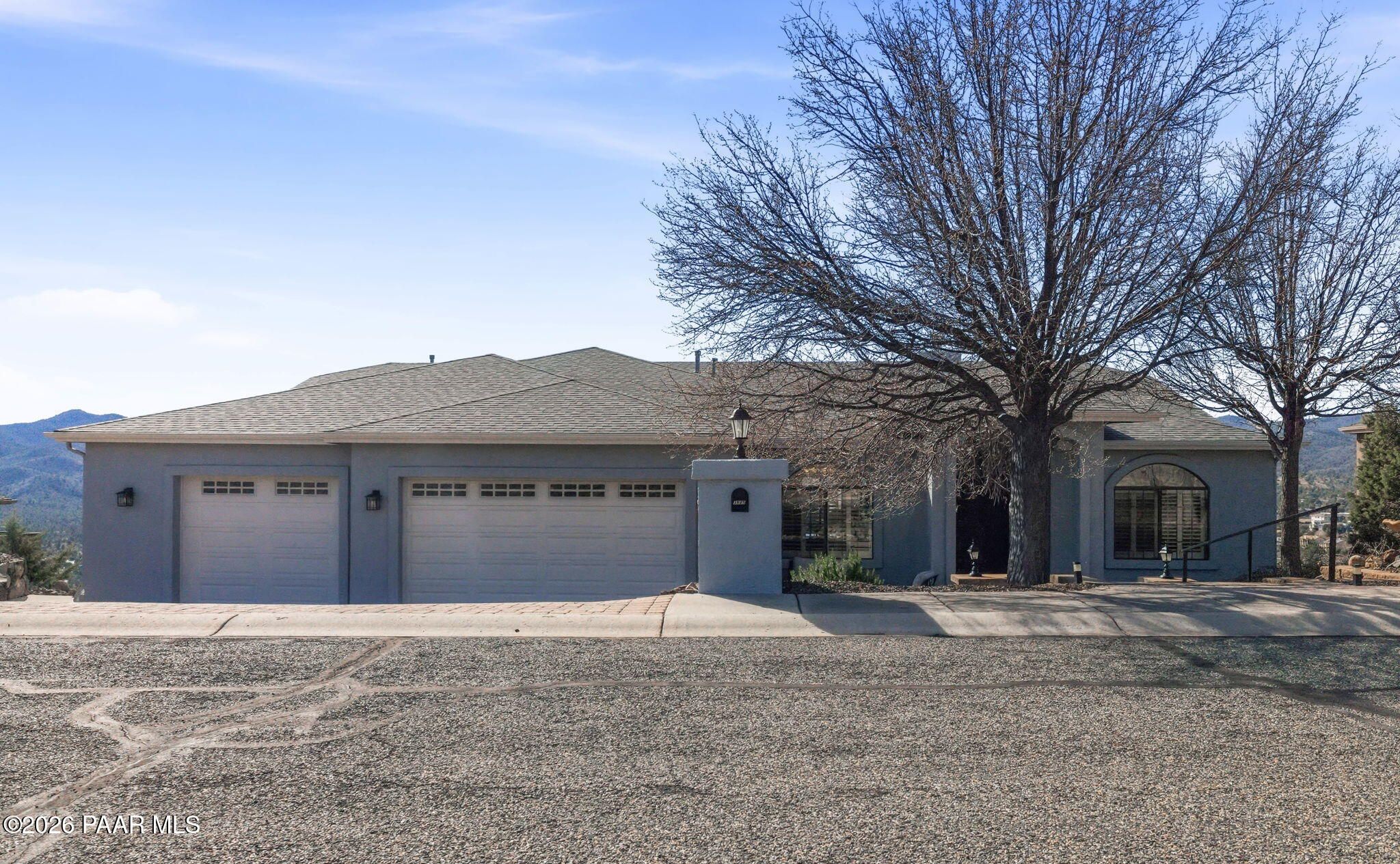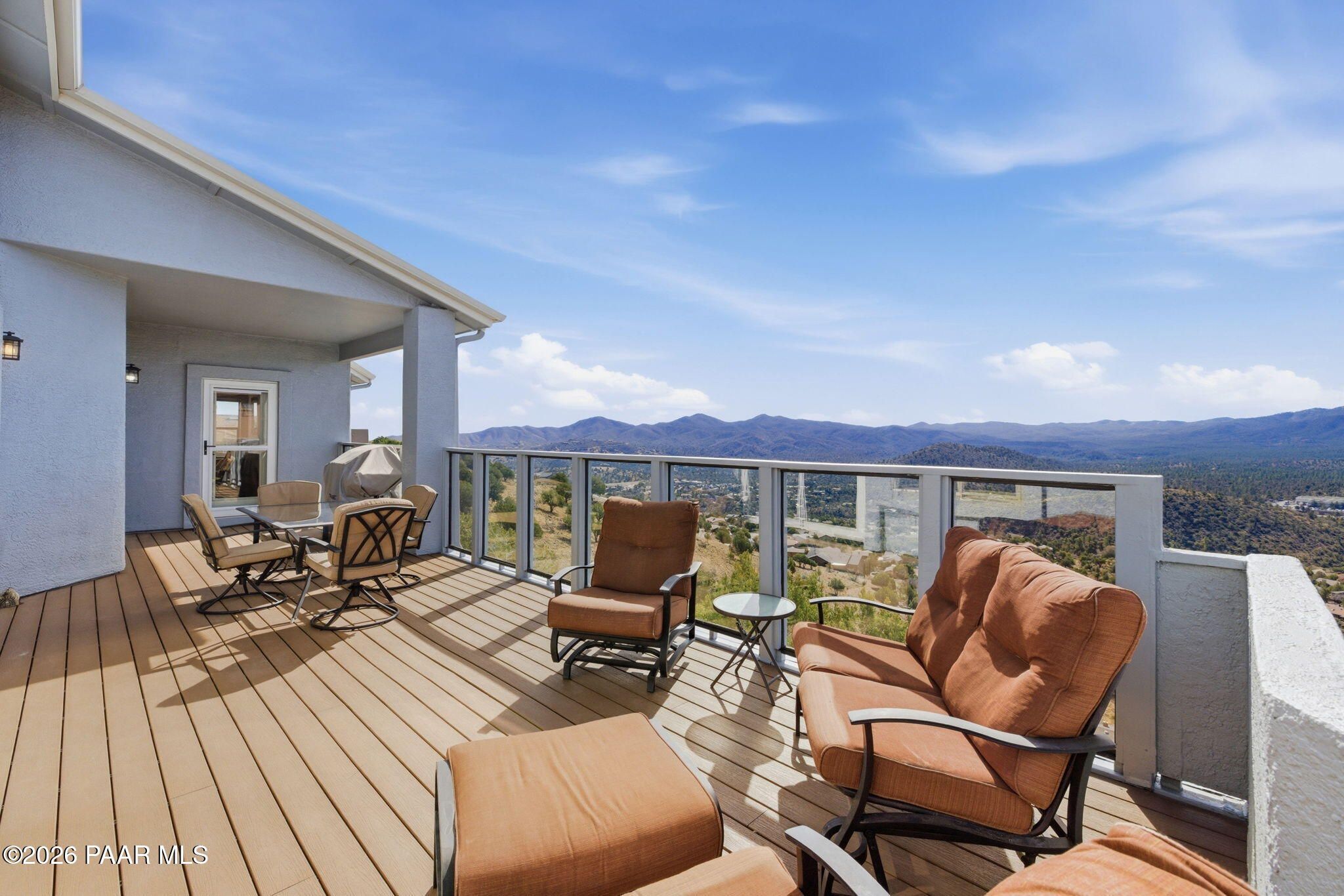 Single-level living on a quiet cul-de-sac in the prestigious Yavapai Hills community, offering sweeping panoramic mountain and valley views and over 3,600 square feet of beautifully updated living space. Designed to live as a five-bedroom plus den, this home delivers exceptional flexibility for entertaining, working from home, or hosting guests.The main level features a desirable split floor plan with the primary suite and additional bedrooms, complemented by expansive living and dining areas filled with natural light. Multiple decks create seamless indoor-outdoor living--ideal for enjoying Prescott's stunning sunsets, cool evenings, and serene natural surroundings.Extensive upgrades enhance both style and comfort, including a new roof (2022), full interior and exterior repaint, remodeled bathrooms, new tile flooring, vinyl plank flooring on the lower level, and new south-facing windows and doors. Stainless steel appliances were updated in 2020, and washer, dryer, and refrigerator convey, making this home truly move-in ready.The lower level offers a spacious bonus or family room with additional bedrooms and flexible spaces ideal for a den, studio, or guest retreat. Centrally located to Prescott, Prescott Valley, and the quad cities, this exceptional property blends privacy, luxury, and convenience in one of the area's most sought-after neighborhoods.
