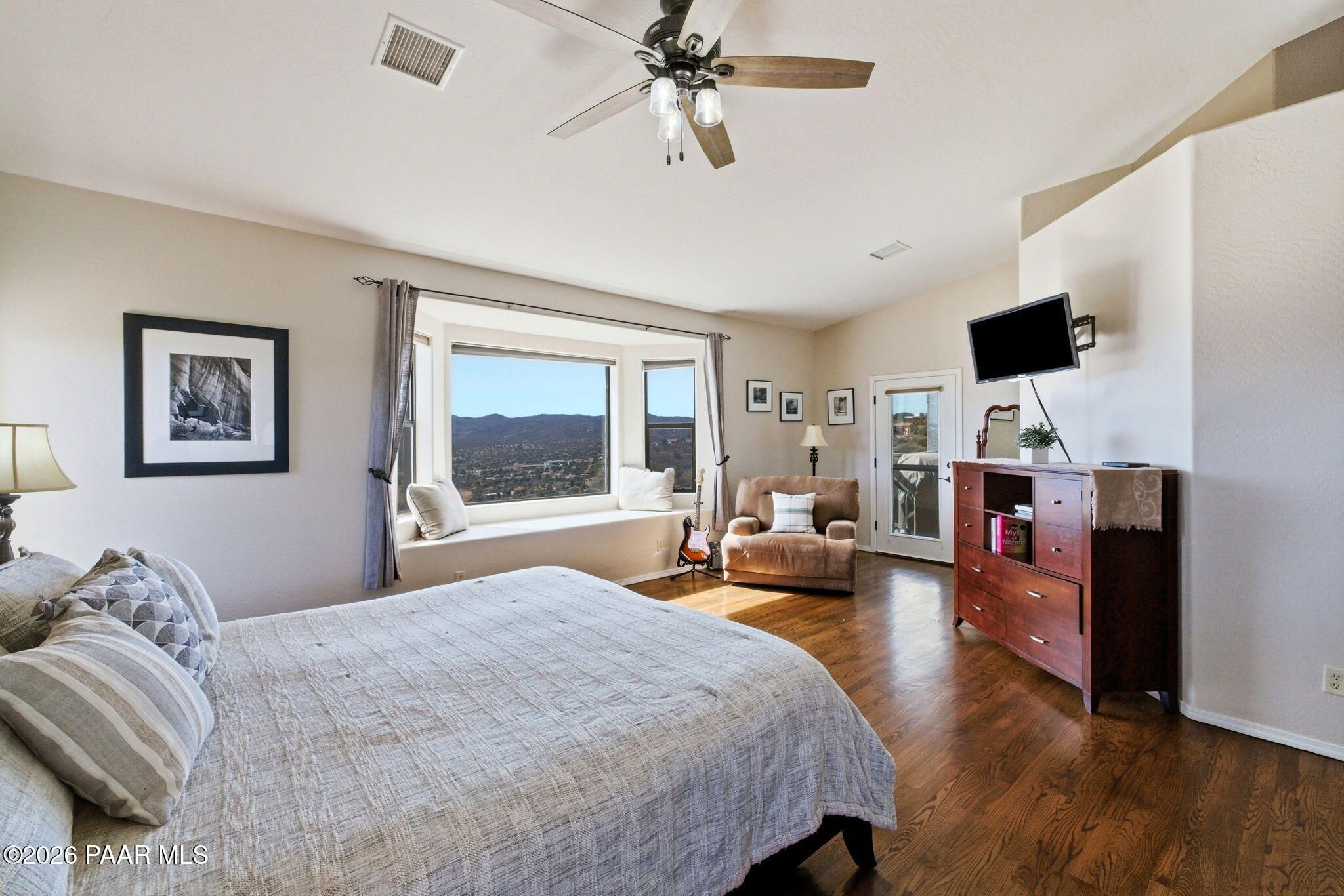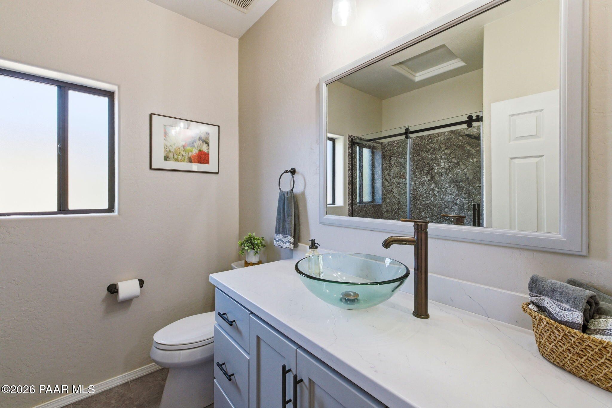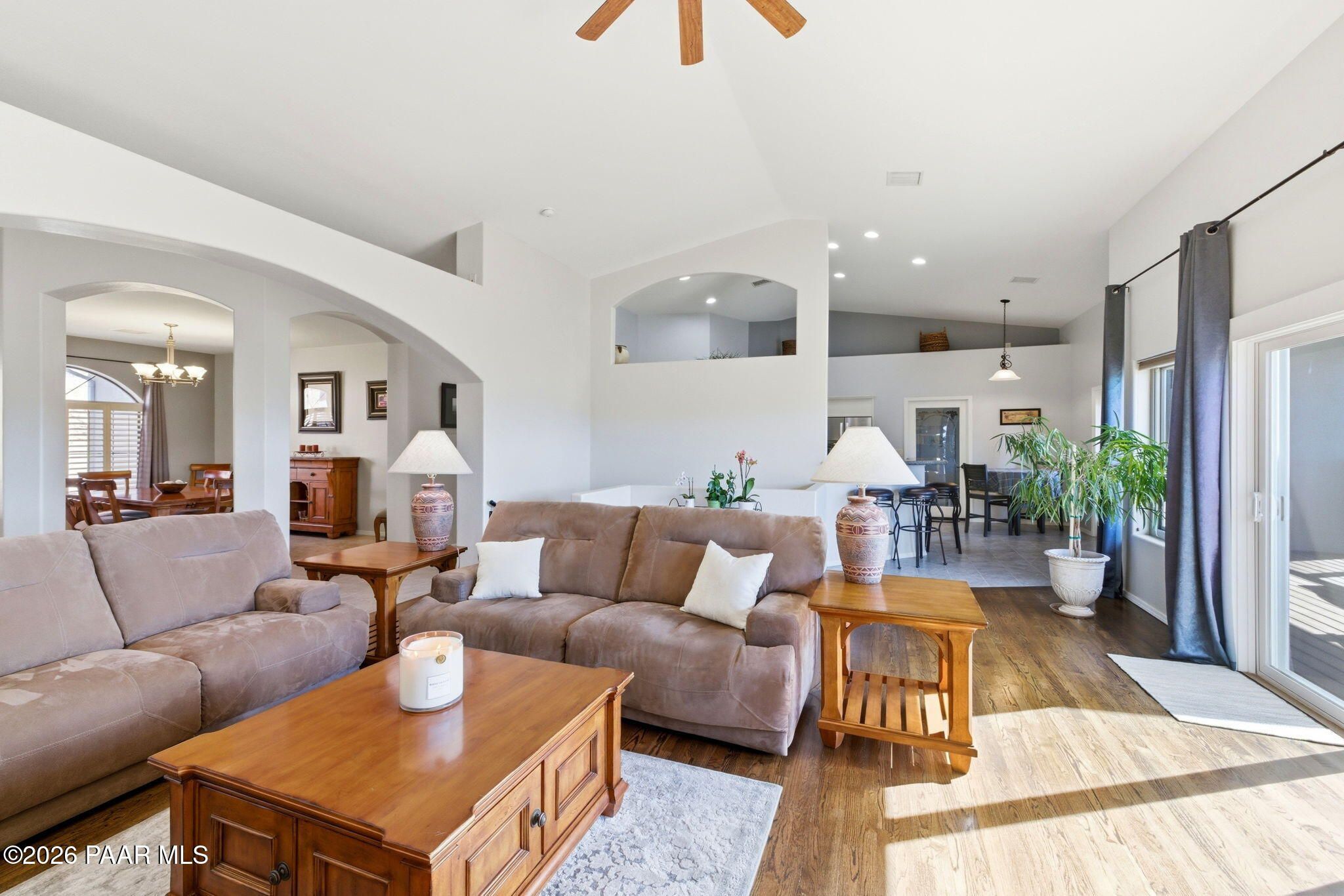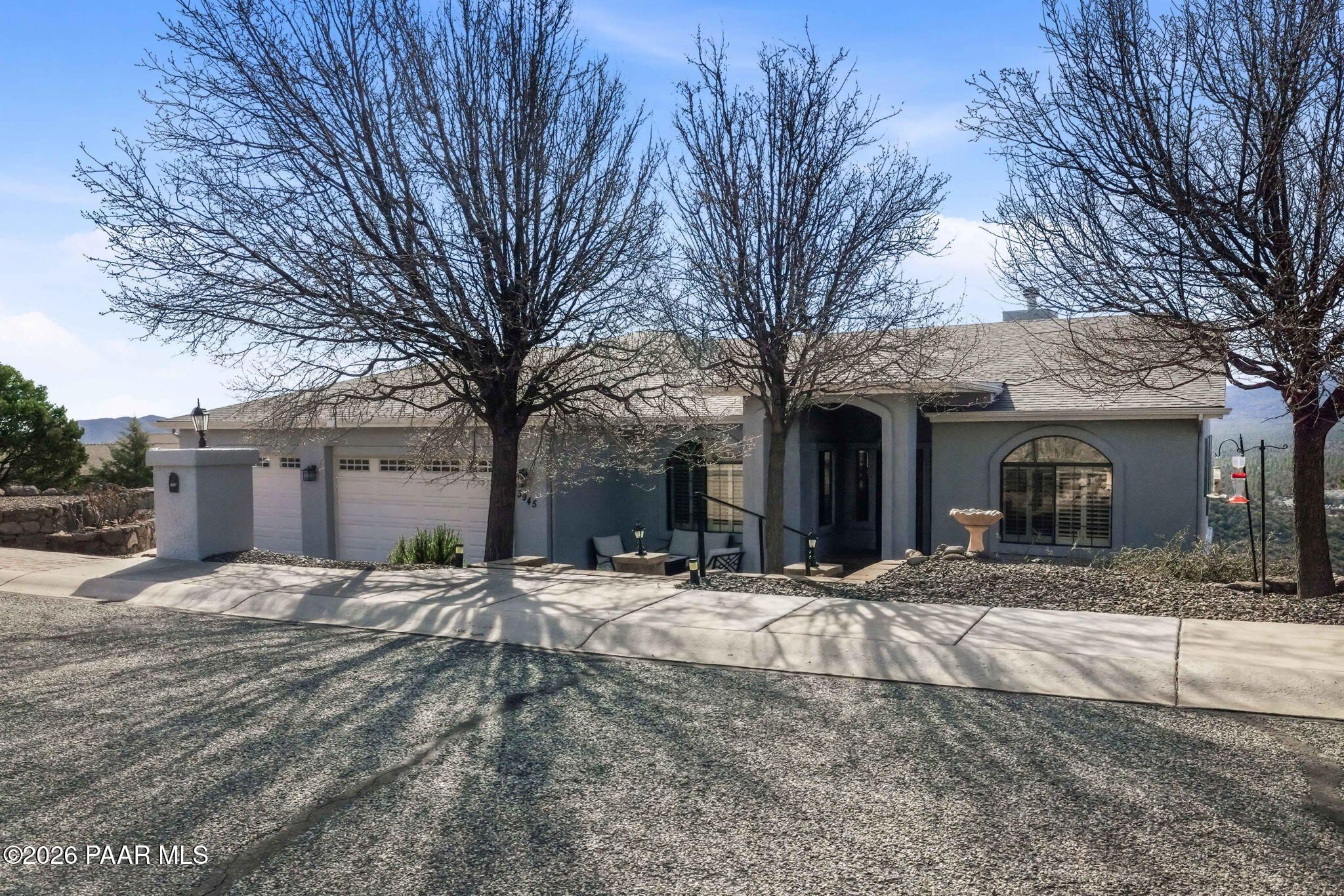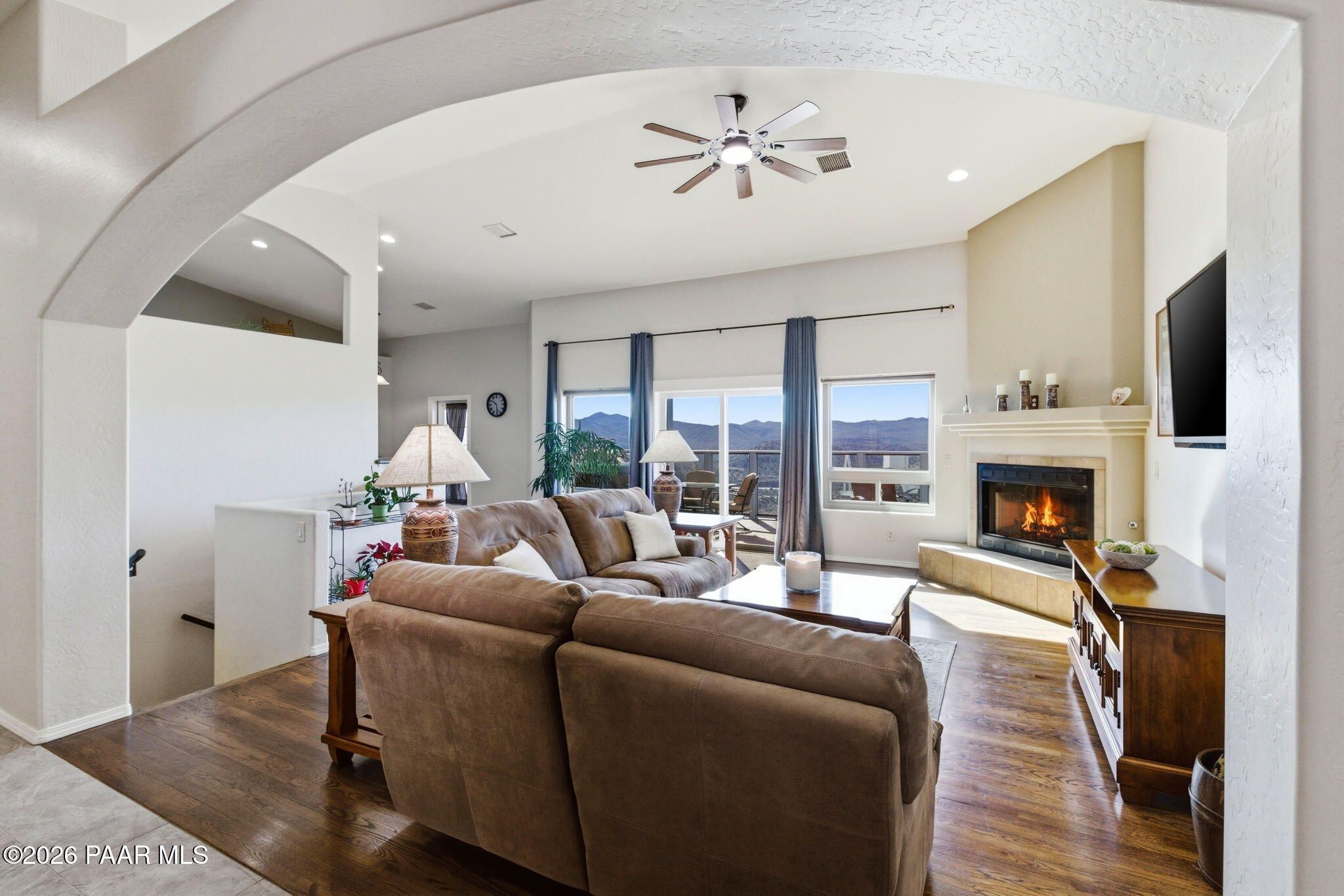 Single-level living on a quiet cul-de-sac in the prestigious Yavapai Hills community, offering sweeping panoramic mountain and valley views and over 3,600 square feet of beautifully updated living space. Designed to live as a five-bedroom plus den, this home delivers exceptional flexibility for entertaining, working from home, or hosting guests.The main level features a desirable split floor plan with the primary suite and additional bedrooms, complemented by expansive living and dining areas filled with natural light. Multiple decks create seamless indoor-outdoor living--ideal for enjoying Prescott's stunning sunsets, cool evenings, and serene natural surroundings.Extensive upgrades enhance both style and comfort, including a new roof (2022), full interior and exterior repaint, remodeled bathrooms, new tile flooring, vinyl plank flooring on the lower level, and new south-facing windows and doors. Stainless steel appliances were updated in 2020, and washer, dryer, and refrigerator convey, making this home truly move-in ready.The lower level offers a spacious bonus or family room with additional bedrooms and flexible spaces ideal for a den, studio, or guest retreat. Centrally located to Prescott, Prescott Valley, and the quad cities, this exceptional property blends privacy, luxury, and convenience in one of the area's most sought-after neighborhoods.