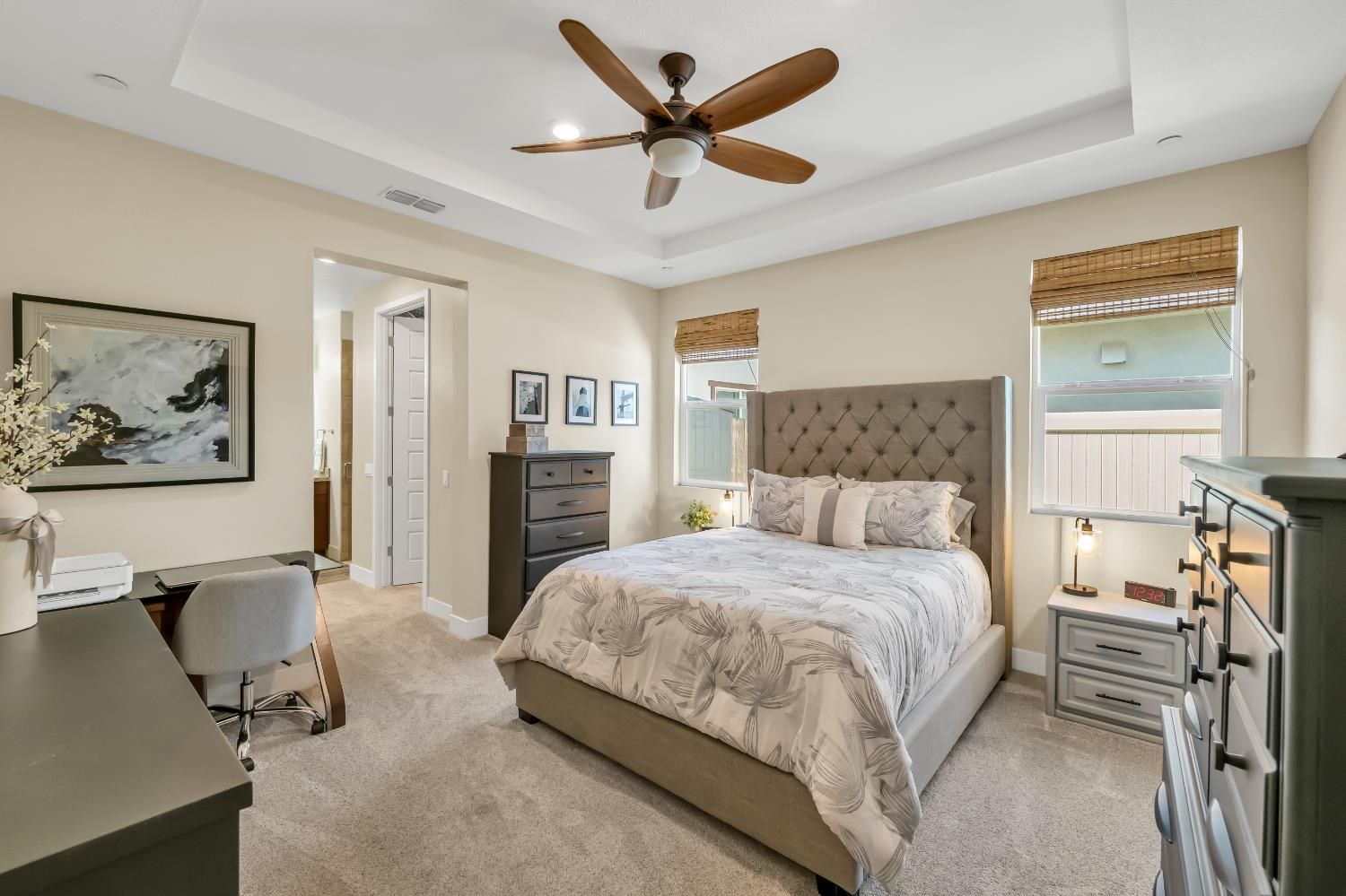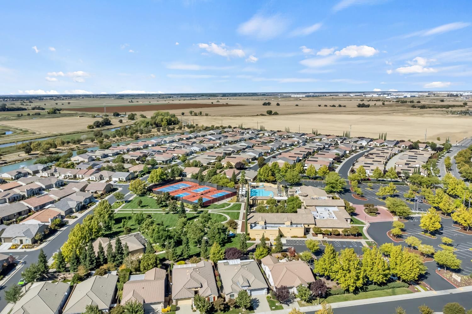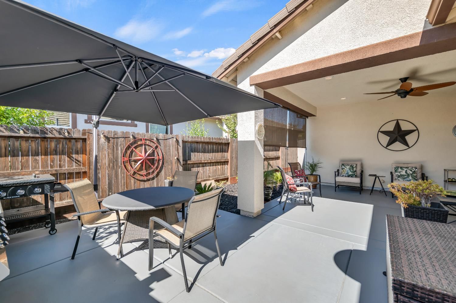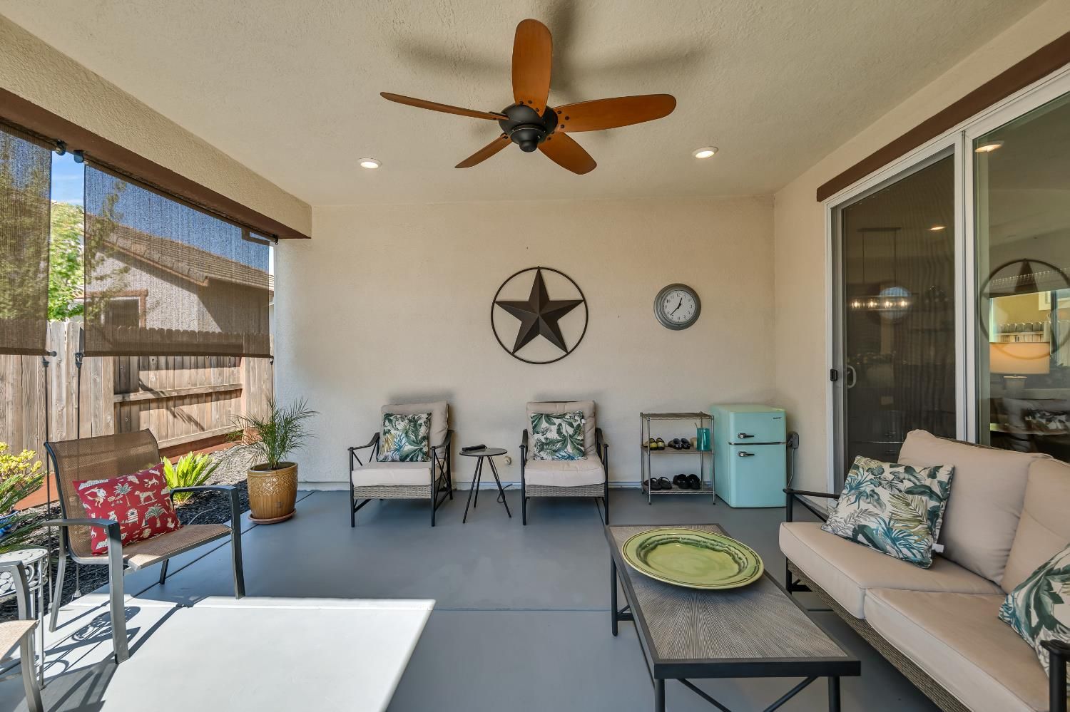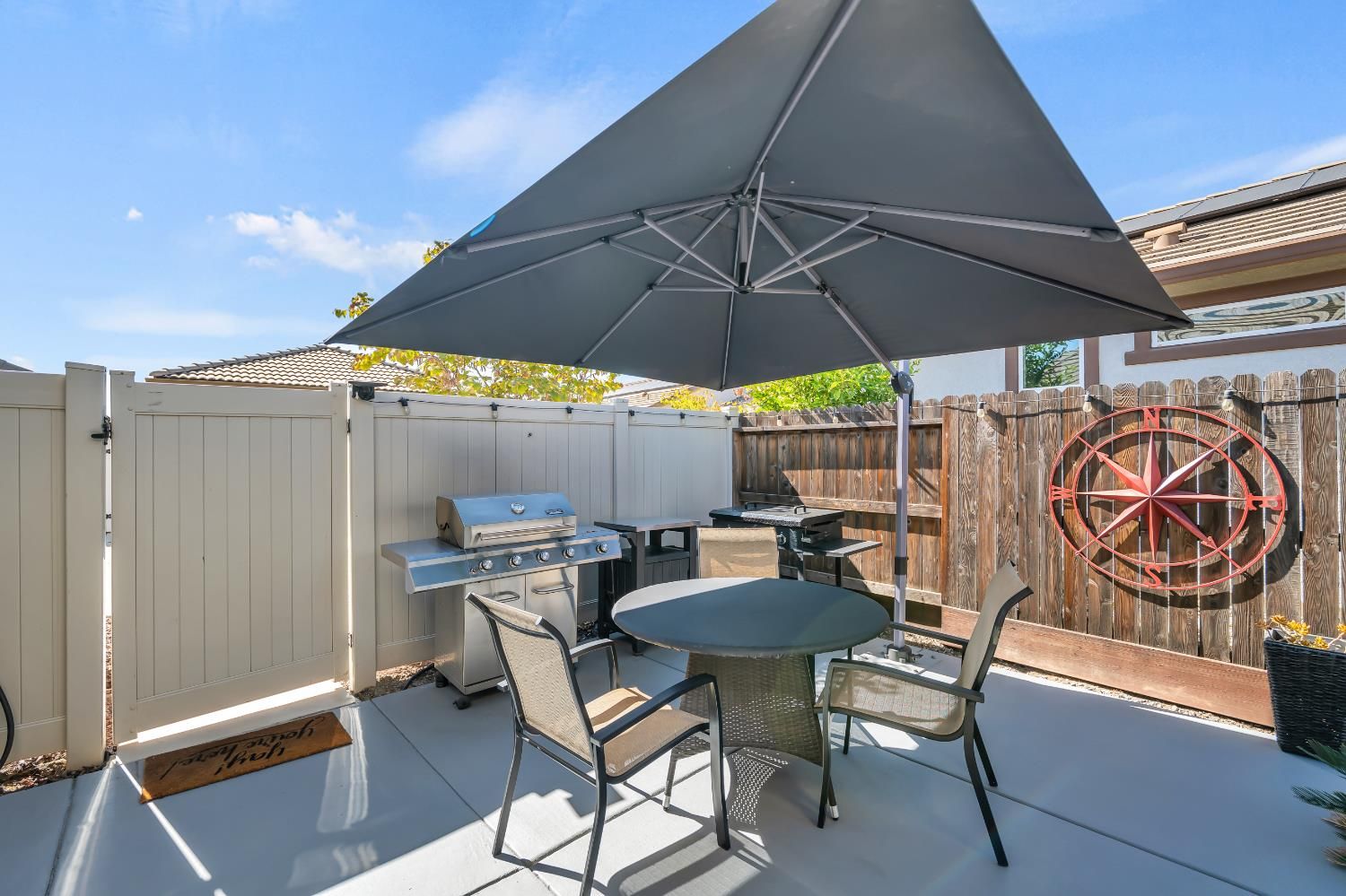 Beautifully maintained 2-bedroom, 2-bath home located in the desirable Four Seasons at Westshore, active 55+ in the Natomas area. This 2016-built property offers a thoughtful layout with modern finishes and approximately 1,295 square feet of living space, including new upgraded carpet in both bedrooms with memory foam padding, upgraded ceiling fans throughout, a new dishwasher, and "point of use" instant hot water at the kitchen sink. The kitchen features granite countertops, pendant lighting, and plenty of cabinet space, opening to a comfortable living area with a custom stone wall, gas insert fireplace, and mahogany mantle. Outside, enjoy an extended concrete patio with a large cantilever umbrella perfect for relaxing or entertaining, plus a detached Craftsman shed for additional storage. Owned solar panels help keep utility costs low. The community includes access to a clubhouse, pool, fitness room, and recreation areas. Conveniently located near parks, shopping, and freeway access, this move-in-ready home offers both comfort and convenience in a peaceful neighborhood.