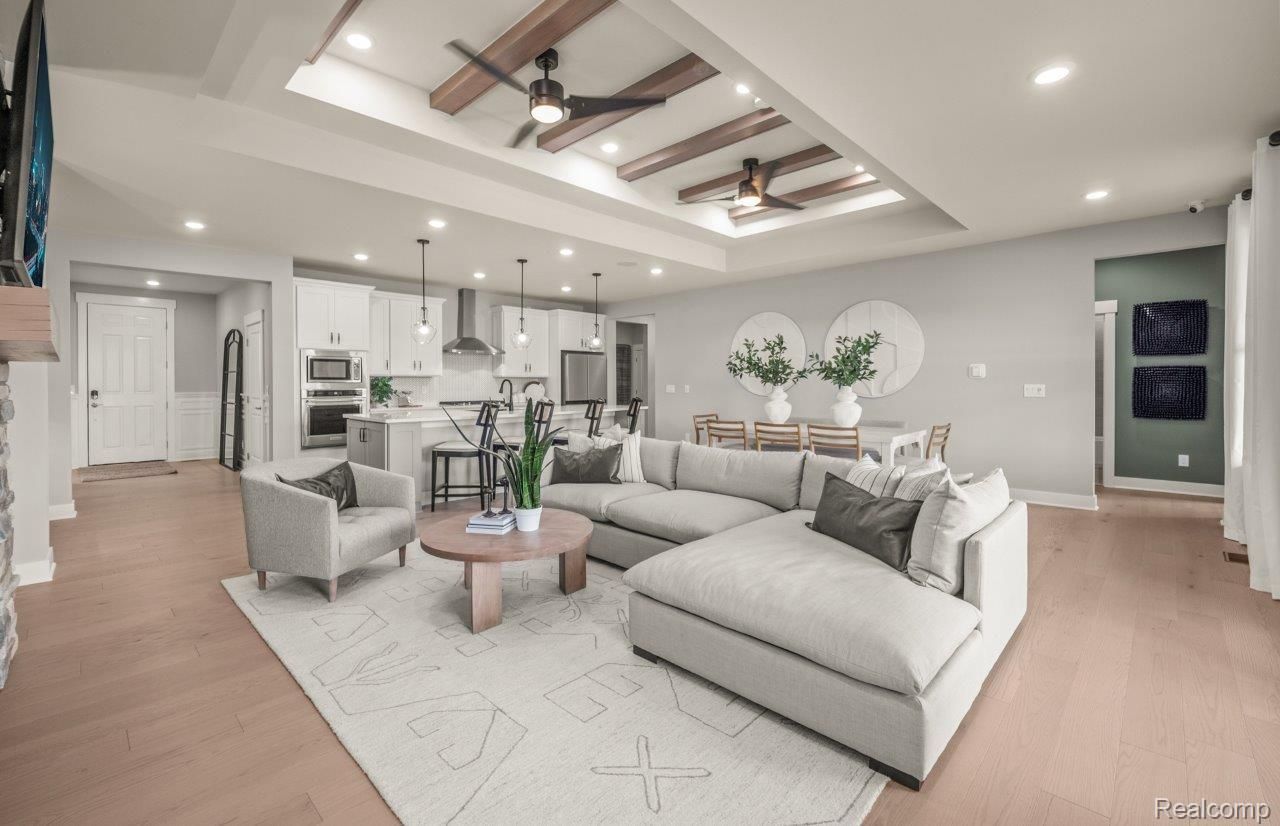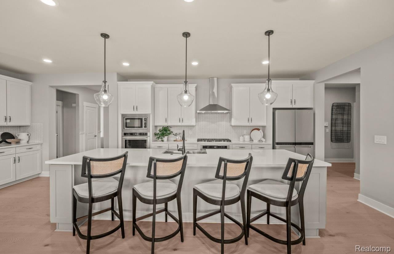 Fall move in. Imagine stepping into your dream home at Kensington Ridge, where comfort, style, and convenience come together perfectly. This stunning Stardom plan is a ranch-style home designed for effortless living, with an open, light-filled floor plan that flows seamlessly from room to room, creating the perfect space for entertaining or relaxing. Warm your soul next to the full stone floor to ceiling gas fireplace in the gathering room or head outside onto the rear covered patio for a relaxing night with nature. The chef-inspired kitchen is a showstopper, featuring built-in appliances, a spacious island, and ample pantry storage. Enjoy a private, versitle space in the flex room complete with french doors for privacy. At the end of the day, retreat to the luxurious Owner’s Suite, offering privacy, serene views, and a spa-like walk-in-shower in the ensuite bathroom . Other popular options include upgraded designer interior paint, a shower in guest bath, hard surface flooring areas, water softener prep, laundry sink and cabinets, upgraded interior trim package all situated on an Estate sized lot. With no maintenance worries, you’ll have more time to enjoy the incredible amenities, from the 16,800 sq. ft. clubhouse with a full gym to the peaceful, motor-free lake for relaxation. Located in the charming city of Milford, just minutes from shops, dining, and Kensington Metro State Park, this home offers the perfect blend of tranquility and convenience. This is more than just a home; it’s a lifestyle waiting for you to enjoy.