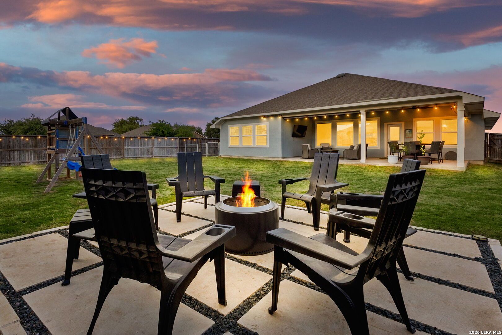 Set on a larger lot in Veramendi, this home brings together thoughtful upgrades, flexible space, and a backyard designed to actually be enjoyed. The layout flows easily from the main living areas into a kitchen equipped with a Kinetico water softener and reverse osmosis system at both the sink and refrigerator... small details that make a big difference in everyday living. Out back is where this one really shines. A dedicated fire pit patio, permanent exterior lighting, and patio lights create the perfect setting for evenings outside, while a roller shade adds comfort when the Texas sun is doing its thing. Tinted rear windows offer added privacy and efficiency without sacrificing natural light. Inside, you'll find smart upgrades like a whole home alarm system, in-wall pest control, and a decked attic for extra storage. The garage has been partially built out into a gym or workshop space, giving you flexibility depending on how you want to use it. Located in the highly desirable Veramendi community with access to trails, parks, and neighborhood amenities, this home is set up to make daily living feel just a little bit easier.