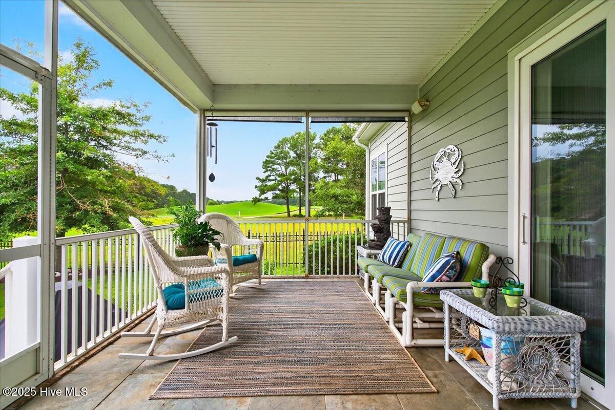 This stunning Creekside home offers front-row views of the signature #8 hole at Crow Creek Golf Club, making it perfect for year-round living or the ultimate golfer's retreat. Recently upgraded with a brand-new HVAC system in 2024, this property blends comfort, style, and peace of mind. From the moment you arrive, you'll notice the craftsmanship and attention to detail. The open-concept kitchen flows into the living and dining areas, filled with natural light from numerous windows and French doors that open to an expansive front porch—ideal for morning coffee or evening relaxation. In the back, a screened lanai overlooks the #8 hole, the creek, and a backdrop of nature's beauty. The primary suite offers a spacious walk-in shower and a closet with custom shelving, while the upstairs guest retreat includes its own living area, bedroom, and full bath. Practical features abound, including a well-equipped workshop in the garage and plenty of additional storage in the attic. Crow Creek is a welcoming community with a full amenity center, including a pool, fitness facilities, and a game room. Best of all, you're just 10 minutes from the beach, and a brand-new shopping area...featuring Publix, Walmart, McDonald's, Dunkin' Donuts, Great Clips, Chase Bank, Eggs Up Grill, Heartland Dental, and more!!!