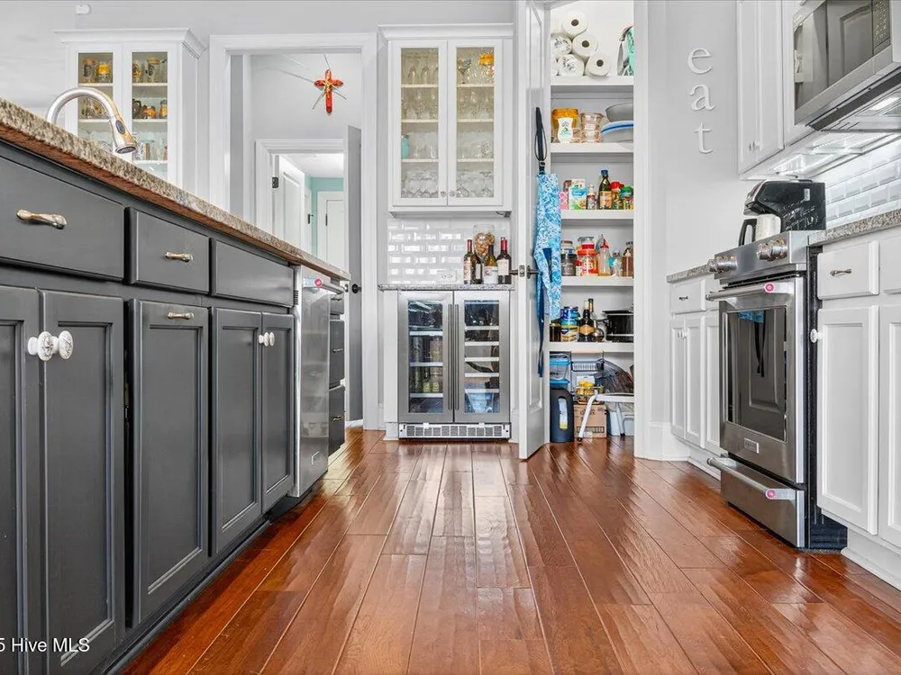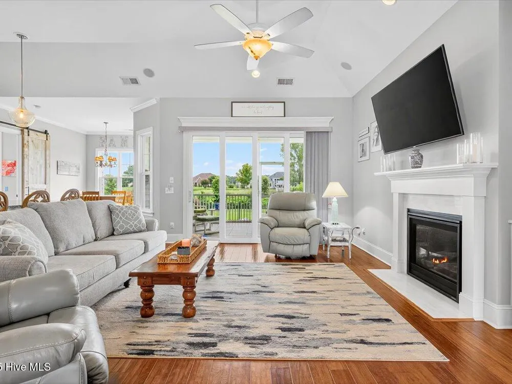 - Blinds/Shades, Walk-in Shower, Walk-In Closet(s), Gas Log, Pantry, Master Downstairs, Kitchen Island, Ceiling Fan(s)