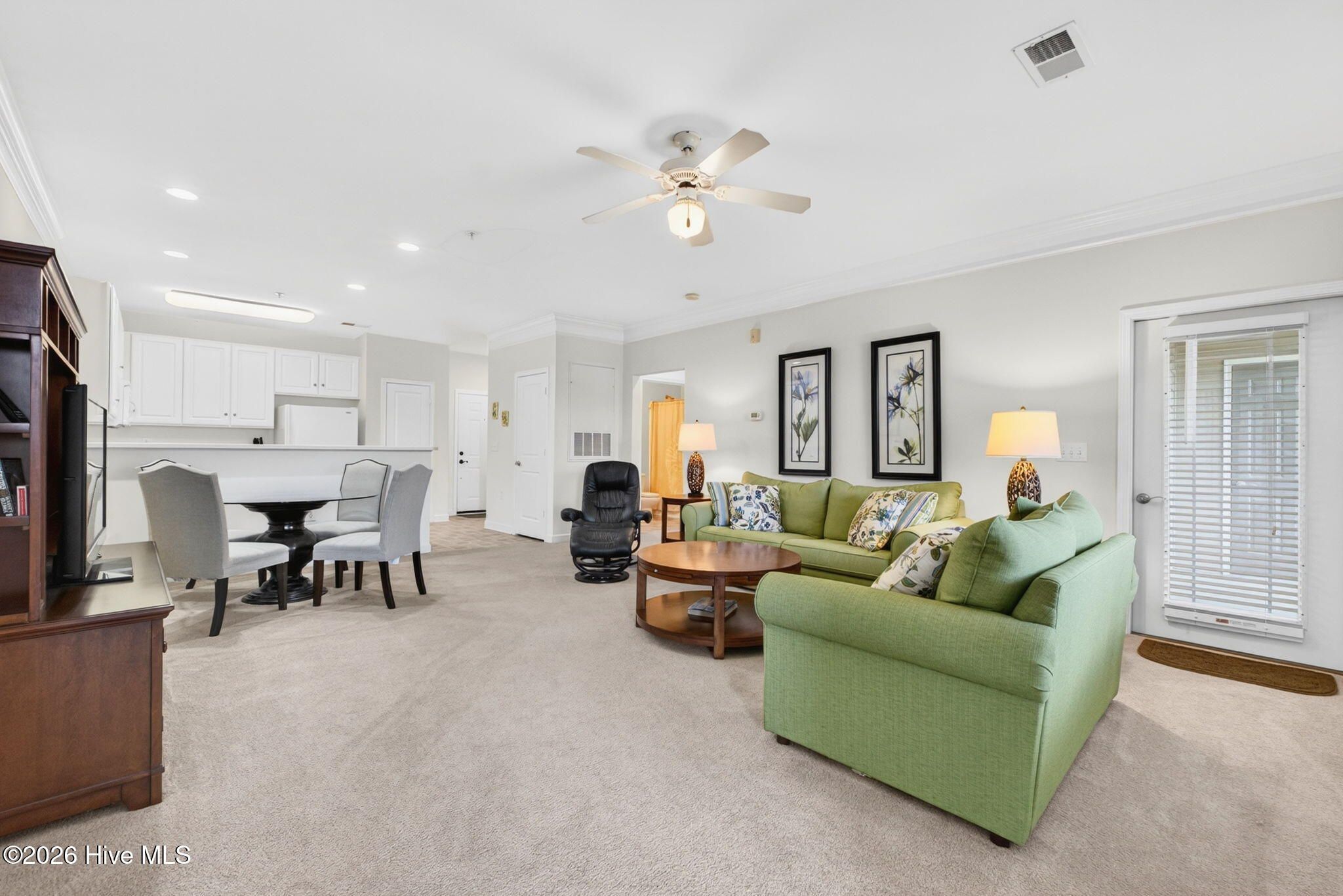 Welcome to effortless coastal living in this beautifully furnished golf view condo perfectly positioned beside the renowned Crow Creek Golf Club. Offering over 1,400 square feet, this spacious residence features three bedrooms and two full baths, highlighted by an oversized primary suite with a large walk in closet and an en-suite bath complete with dual vanities, a walk in shower and a soaking tub designed for true relaxation. The open concept living and dining area feels bright and inviting, flowing seamlessly into a well appointed kitchen, separate laundry room and a welcoming foyer that sets the tone from the moment you walk in. Step outside to an expansive balcony where you can unwind with the coastal breeze and take in peaceful golf course views. Crow Creek delivers a lifestyle that feels like a resort every day with three pools, tennis and pickleball courts, two fitness centers and a vibrant owner's clubhouse, all set within one of the most meticulously maintained golf communities along the East Coast. Located in Calabash, a world famous coastal village celebrated for its incredible seafood and laid back charm, you are just minutes from pristine Brunswick County beaches, top tier dining, shopping and easy access to Myrtle Beach and historic Wilmington. This is the kind of place where every day feels like a getaway and opportunities like this do not come around often.