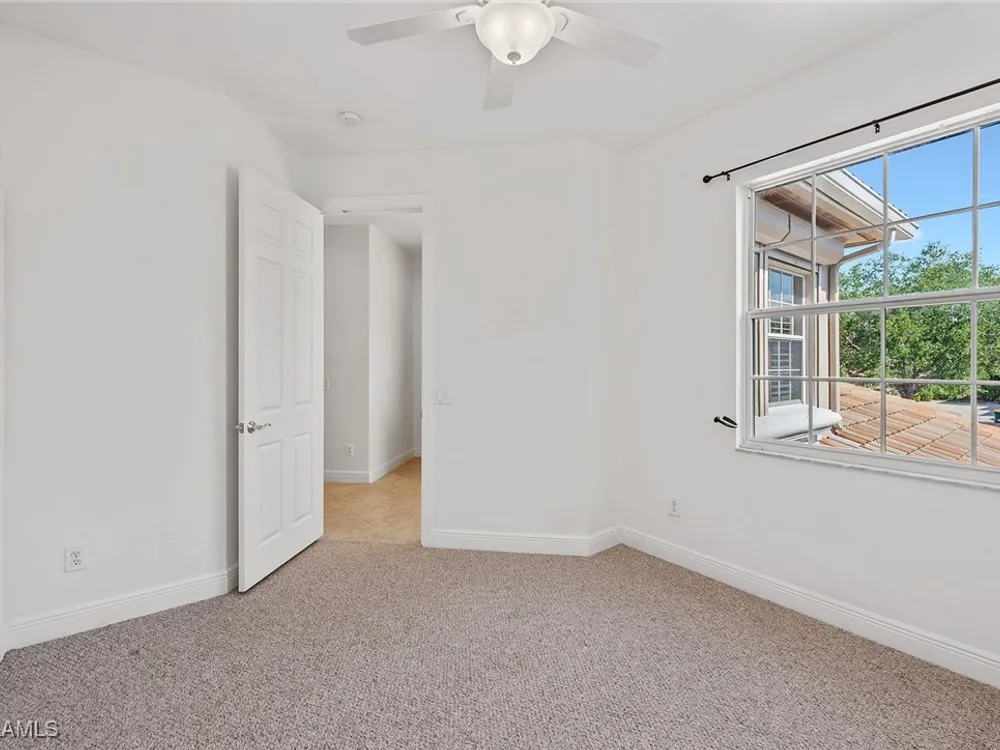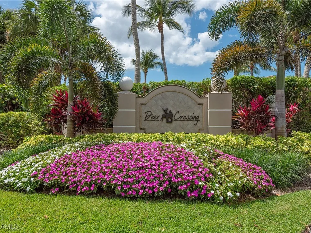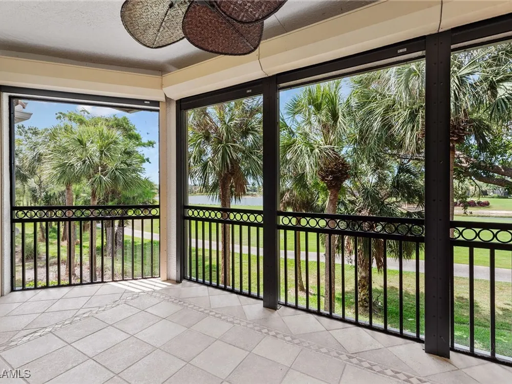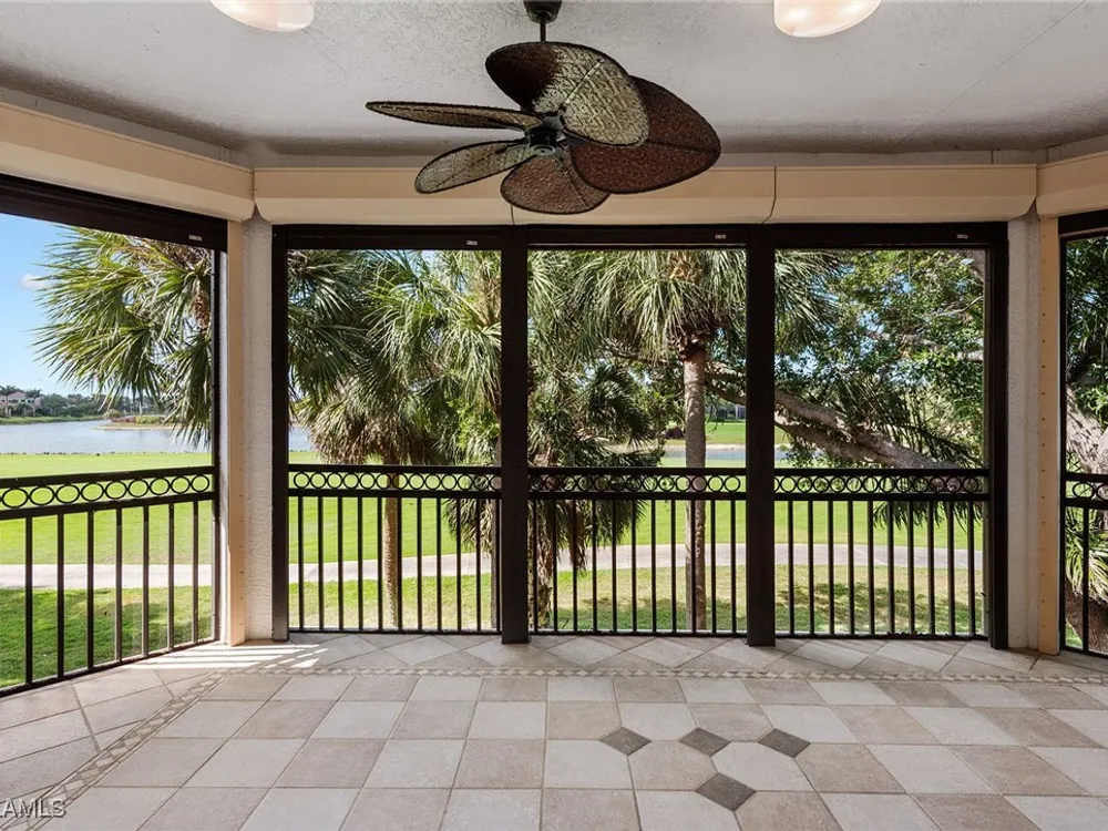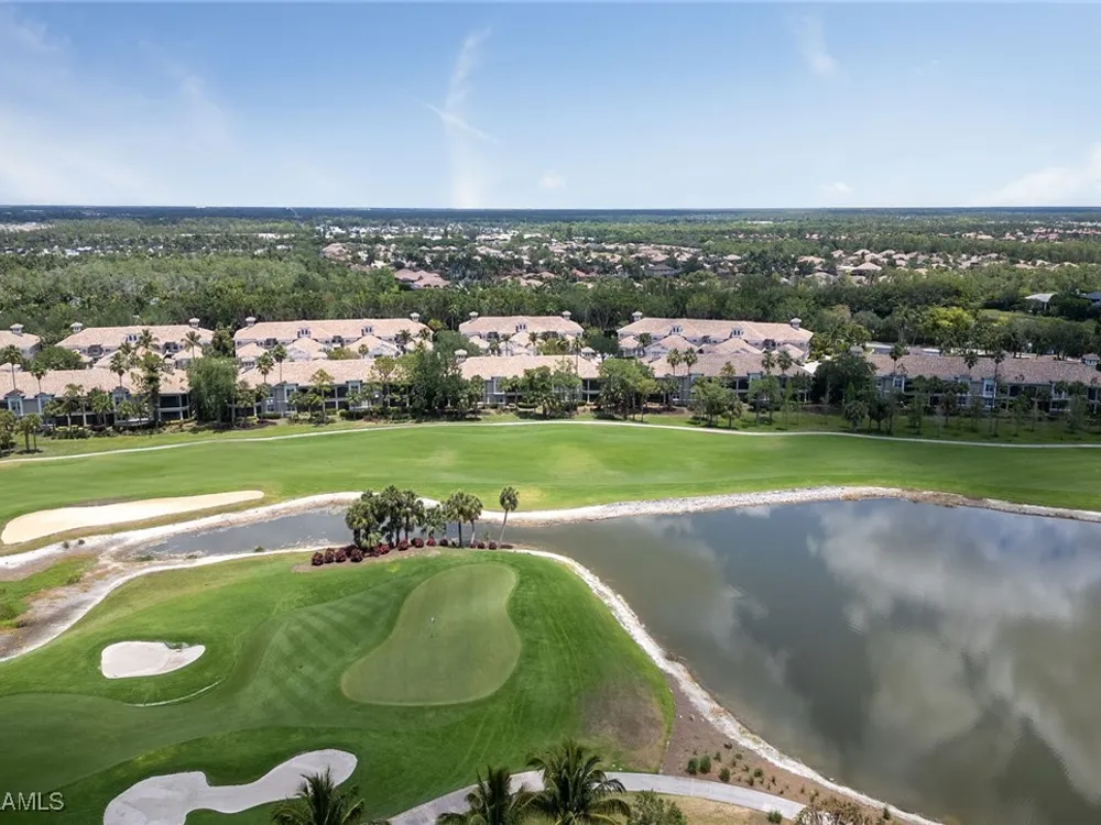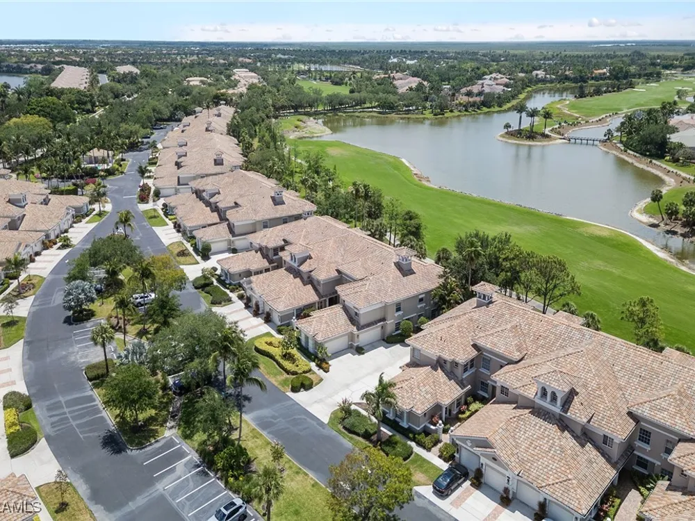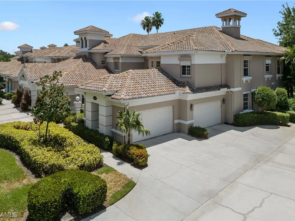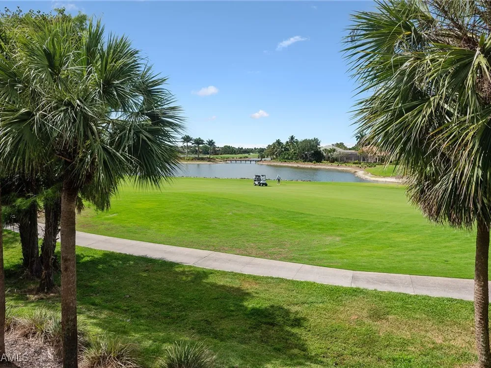 Are you looking for sun-filled southern exposure and stunning Rookery golf course and water views framed by swaying palms? This spacious second-floor end-unit coach home with a two-car garage in the desirable Deer Crossing village of Fiddler’s Creek offers both. Enjoy tranquil outdoor living from the covered screened lanai with tile flooring, electric storm shutters, and a peaceful backdrop of lush tropical landscaping overlooking the water and golf course – an ideal setting for relaxing or entertaining. Inside, the residence offers three bedrooms, a den, two baths and a two-car garage. Finishes include diagonal tile flooring and plush carpeting, recessed lighting, white plantation shutters, and tropical-inspired Tommy Bahama-style ceiling fans. The kitchen is both stylish and functional, featuring granite countertops, a mosaic glass tile backsplash, white shaker-style cabinetry and a window above the sink for natural light. Stainless steel LG appliances include a French-door refrigerator with an icemaker, range, microwave and dishwasher. The adjacent dining area and living room both offer access to the lanai, blending indoor and outdoor living. The owner’s suite features a tray ceiling, generous closet space, and a spacious en-suite bath with a dual-sink vanity, full-width mirror and a walk-in shower. Two guest bedrooms are located near a full bath with a shower-tub combo, ideal for hosting visitors. The den, which includes pocket doors to both the hallway and kitchen, offers flexible use as a study or home office. A dedicated laundry room includes overhead shelving, a utility sink, a washer and a dryer. The two-car garage features built-in shelving and a window for natural light. Additional peace of mind comes with a newer HVAC system. Deer Crossing offers gorgeous landscaping, a beautiful village pool and ample guest parking spaces. Located in the award-winning, gated community of Fiddler’s Creek, residents enjoy a full activity and event calendar with access to resort-style amenities including a luxurious clubhouse, spa services, active tennis and pickleball programs with leagues and clinics, bocce, fine and casual dining, and a state-of-the-art fitness center with trainers and classes. Optional memberships to the newly renovated golf course with immediate membership available and a spectacular brand-new private golf clubhouse. Beach club and marina memberships are also available. Miles of sidewalks perfect for walking, jogging and bicycling, surrounded by stunning flowers, trees, lakes and greenery. All of this is just minutes from downtown Naples and Marco Island, offering convenient access to beaches, yacht clubs, grocery shopping, boutiques, parks, restaurants, the executive airport and all popular Southwest Florida attractions. This is your opportunity to live a truly exceptional lifestyle. CDD bond paid in full.