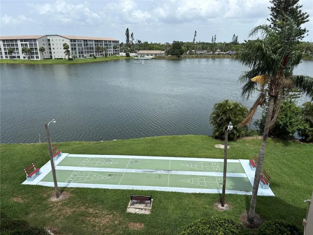 Beautiful 2-bedroom, 2-bathroom fourth-floor condo in Bradenton with a stunning view of the lake. Recently professionally cleaned, with carpets freshly cleaned and the unit inspected for repairs, this home is move-in ready. Ideally situated near the beach, shopping, restaurants, the airport, hospital, and entertainment, this residence offers unmatched convenience for wherever you need to go. The 55+ community features on-site laundry just steps from your front door in a secure indoor room, as well as an elevator, reserved parking, a pool, clubhouse, and shuffleboard. Your Florida retirement is waiting!