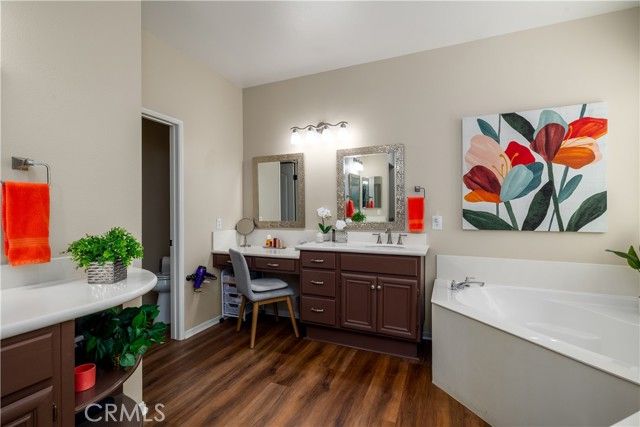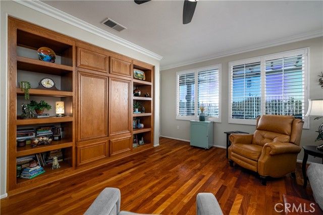 Welcome to 39523 Sierra Madre Dr, a Turnkey, Move In Ready home with a View located in Four Seasons Murrieta 55+ Active Retirement Community. Located just across the street from The Lodge, this home is the Traditional 3 Floor Plan, with 3 bedrooms, 2 bathrooms, and 2,289 sqft of living space. Lots of upgrades noticeable in the home completed in 2023. Luxury Vinyl Plank (LVP) flooring in the Living Room, Dining Room, Bedrooms, and Bathrooms and Wood flooring in the Kitchen and Family Room. The whole house was painted in 2023 with new hinges and door knobs added and hardware added to the cabinets. The kitchen has granite counters, pull out drawers, new stove, new microwave, new dishwasher, new stainless steel sink and fixtures. The Laundry Room utility sink was also replaced and has new fixtures. Plantation shutters throughout and Crown Molding and Upgraded Baseboards through most of the home. Ceiling fans added to the living room, family room, primary bedroom, and guest bedroom. The Primary Bathroom has new toilet, sink fixtures, mirrors, and light fixtures. The 2nd bathroom has new vanity, mirror, toilet, sink fixtures, and light fixtures. The 3rd bedroom is currently set up as an office, but does have added closet. The windows throughout the home are tinted and have sun blocking screens with automated sun shade for the living room window. There is also storage cabinets in the garage, soft water system, and recirculating pump on the water heater. The back yard is low maintenance with Vinyl Fencing and Alumnawood patio cover and is elevated with great sunset views! This home is a must see if you are wanting a Turnkey, Move In Ready home in the Four Seasons Community. Residents of Four Seasons Murrieta enjoy a vibrant community with a variety of clubs and activities, from art classes to yoga, bridge, billiards, and more. Outdoor amenities include a large pool, spa, BBQ area, putting green, golf practice area, horseshoes, shuffleboard, bocce ball, basketball, and lighted courts for tennis, pickleball, and badminton. Indoors, you can take advantage of the gym, library, billiards and card room, craft room, and a large ballroom for events. Nearby, you'll find a major shopping mall with excellent restaurants and movie theaters. Old Town Temecula, with its charming downtown and award-winning wineries, is just a few miles away. Come and discover the active, enjoyable lifestyle waiting for you at Four Seasons Murrieta!