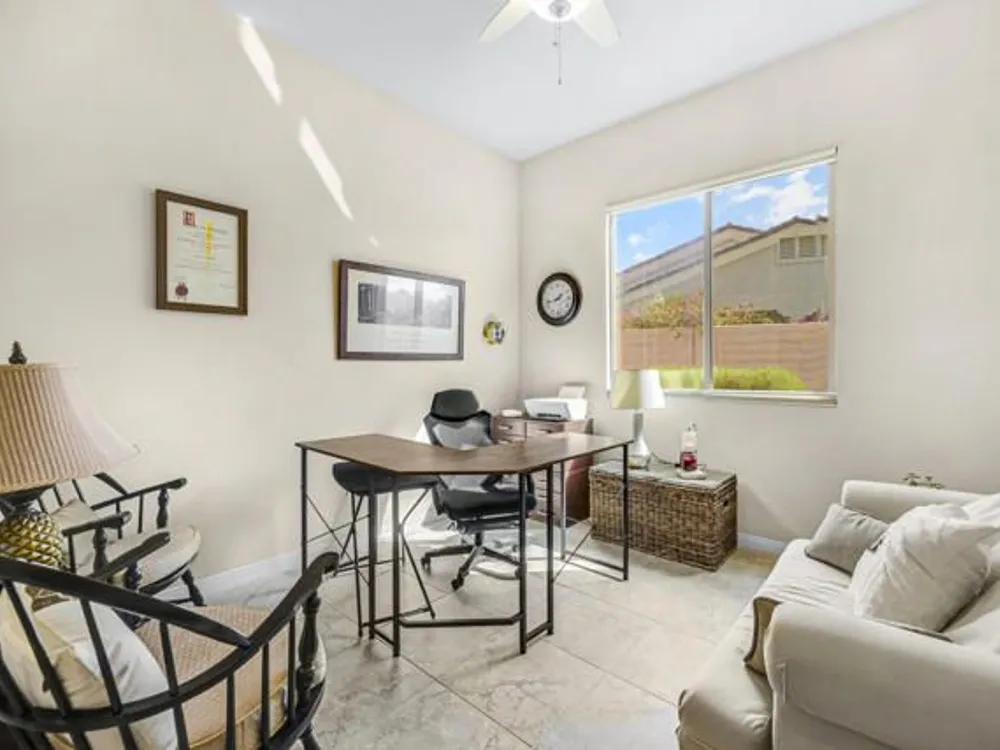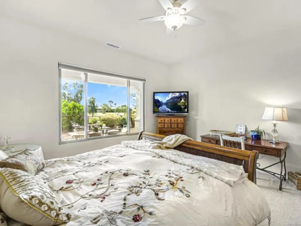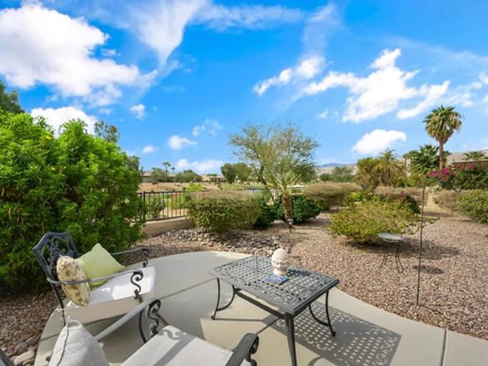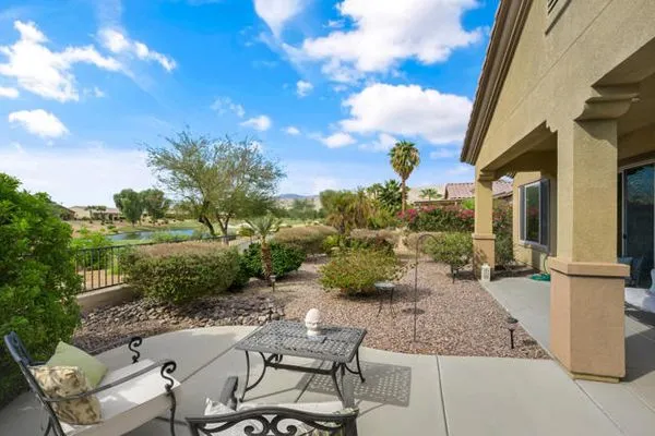Embrace the resort lifestyle of this Avalino floor plan located in the highly sought-after 55+ community of Sun City Shadow Hills. This open concept floor plan with two bedrooms plus a den and two bathrooms is located on the 12th fairway of the North Course, ranked in the top 20 Short Courses in the nation according to Golf Advisor. Bedrooms are conveniently located on opposite sides of the home for privacy, custom window coverings and primary bedroom closet with custom built-ins. Experience true indoor-outdoor living from the extended patio with mountain views looking down the fairway to stunning waterway and desert landscapes. This home was carefully chosen for its fabulous lot location, out of the tee pathway and stunning western exposure views. Indulge in the unparalleled amenities of Sun City Shadow Hills, including state-of-the-art clubhouses, resort style pools and indoor exercise lap pool, pickleball & tennis courts, and a vibrant social calendar.