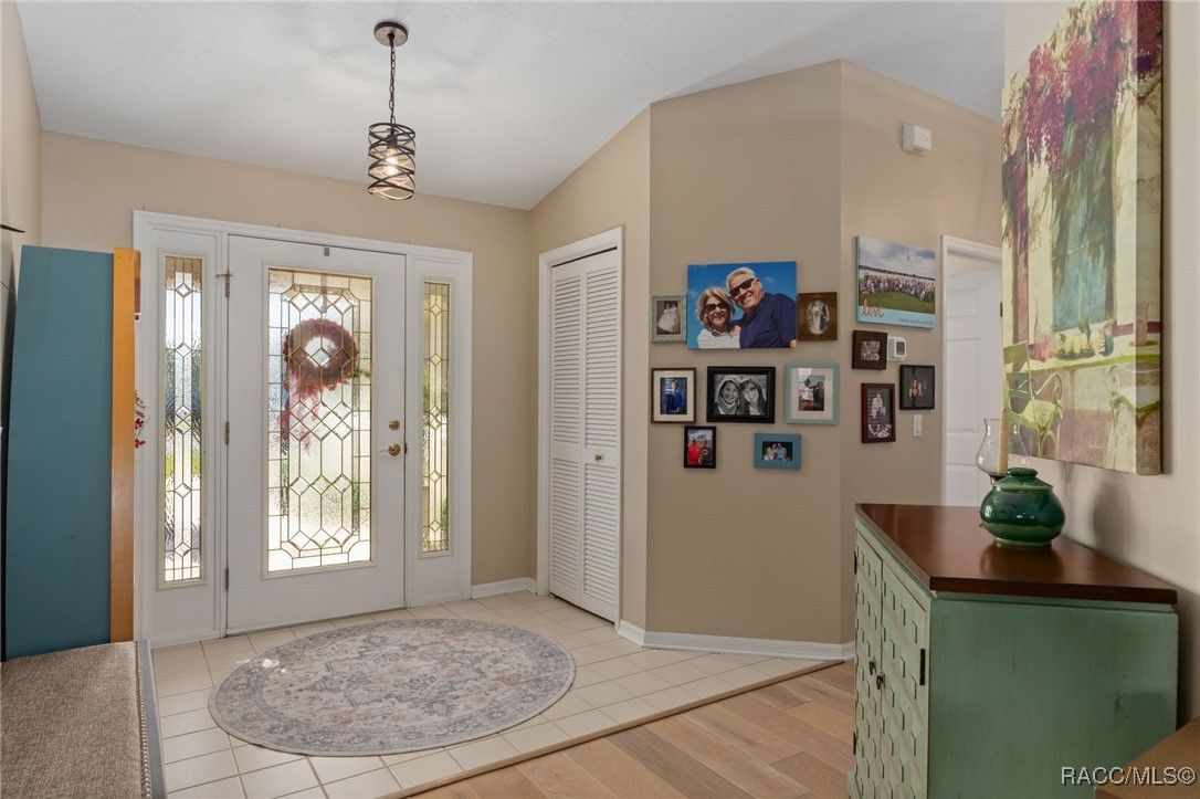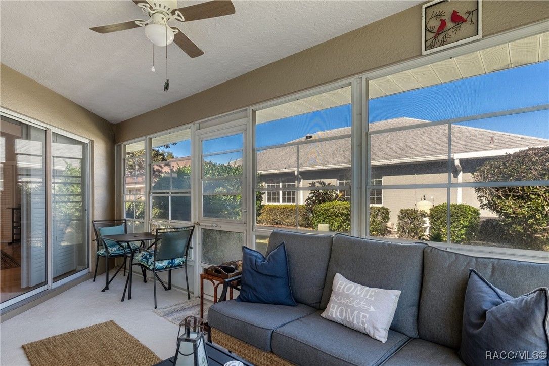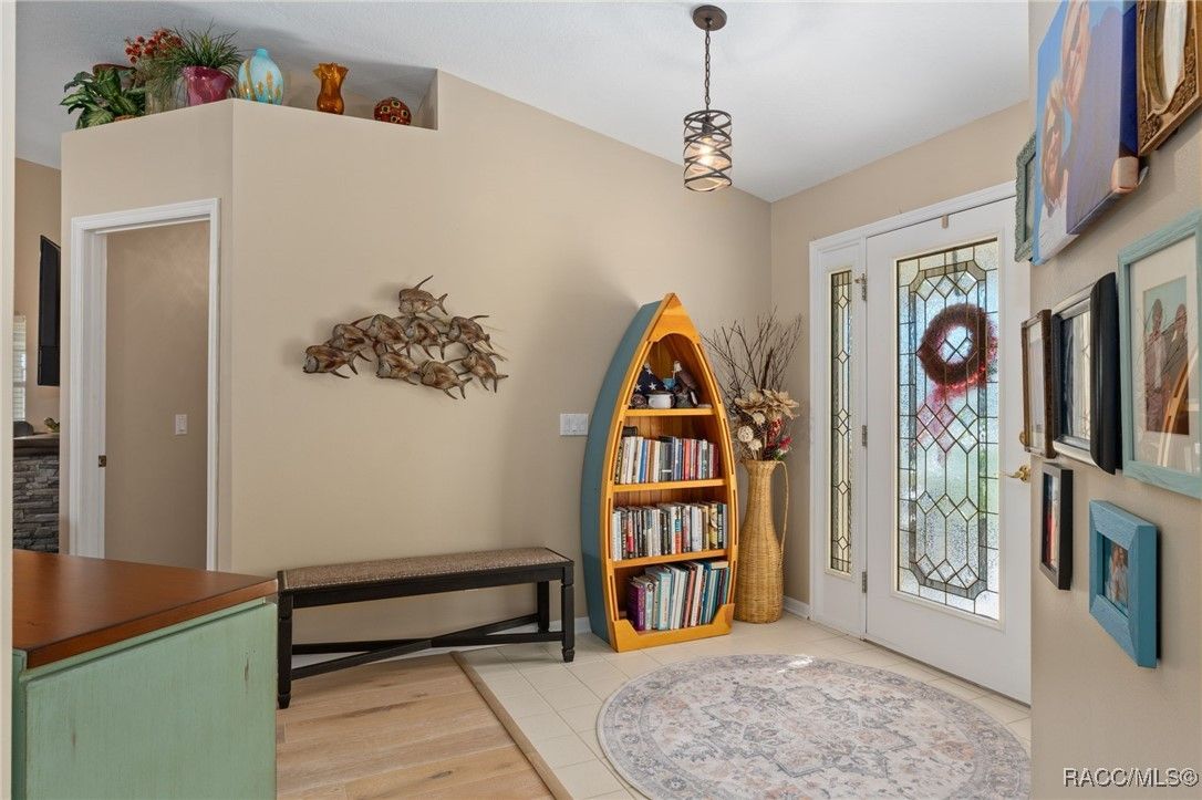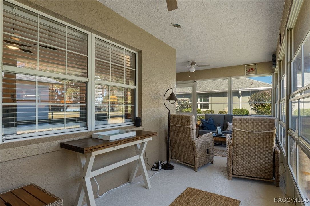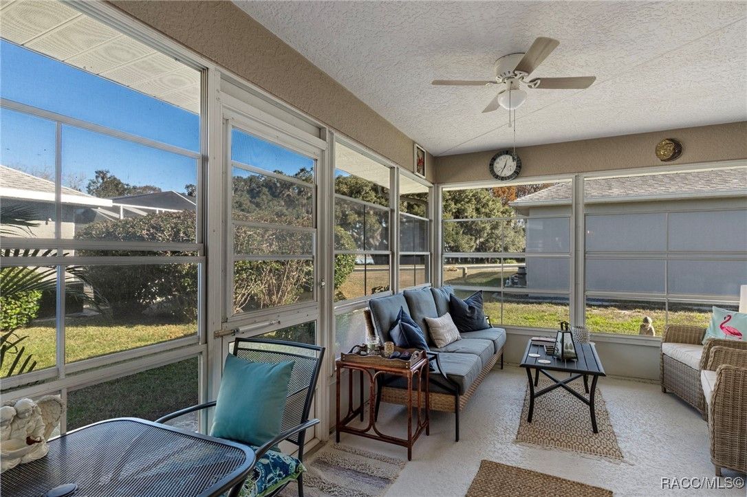 Welcome to your dream home in the highly desirable Arbor Lakes, an exclusive 55+ waterfront community. This beautiful, move-in-ready residence offers everything you’ve been looking for luxury, comfort, and a relaxed lifestyle. As you approach the home, you’ll be greeted by stunning curb appeal with a paver driveway and walkway leading up to the inviting covered front porch. The exterior is further enhanced with gutters and a professionally maintained irrigation system, ensuring the home’s landscaping stays lush and vibrant all year long. Step inside to the foyer, which flows seamlessly into the spacious, open living area. The kitchen is a chef’s delight, featuring crisp white shaker cabinets, elegant white quartz countertops, a convenient breakfast bar, and a pantry for all your storage needs. From the dining and family rooms, enjoy views of the lake, with easy access to two sun porches through sliding glass doors, perfect for soaking in the Florida sunshine. The master suite is a true retreat, offering a walk-in closet, a modern bath with a shower, and private access to the sunroom through its own slider. On the guest side of the home, you'll find a thoughtful design that ensures privacy. A bedroom with a Murphy bed (which conveys with the home), plus another bedroom that leads to its own guest sunroom through sliders. This side of the house also features a door that can close off the area, offering your guests the ultimate comfort and privacy. Throughout the home, you’ll love the elegant plantation shutters and luxury vinyl plank flooring that give the space a coastal vibe. The home is bathed in natural light, making it feel bright and airy. The spacious laundry room includes a large storage closet, a utility sink, and a washer and dryer that convey with the home. Recent updates include a 2023 HVAC system, 2024 garage door opener, new light fixtures, and more, so all you need to do is move in! The Arbor Lakes community offers an array of amenities, including direct access to the lake with a private boat ramp, tennis courts, shuffleboard, a community pool, fitness center, and a clubhouse with social events. For an additional fee, RV and boat storage is available within the community, perfect for outdoor enthusiasts. With low HOA fees of just $515 per quarter, covering cable, Wi-Fi, trash, and recycling, this home provides the perfect combination of ease and luxury. Schedule your tour today!