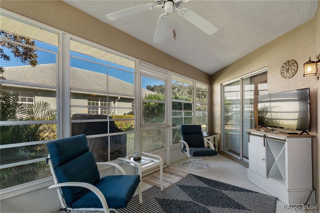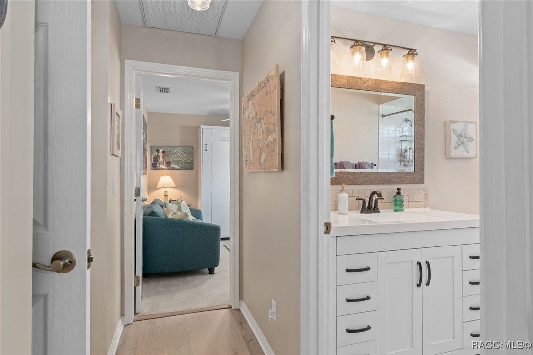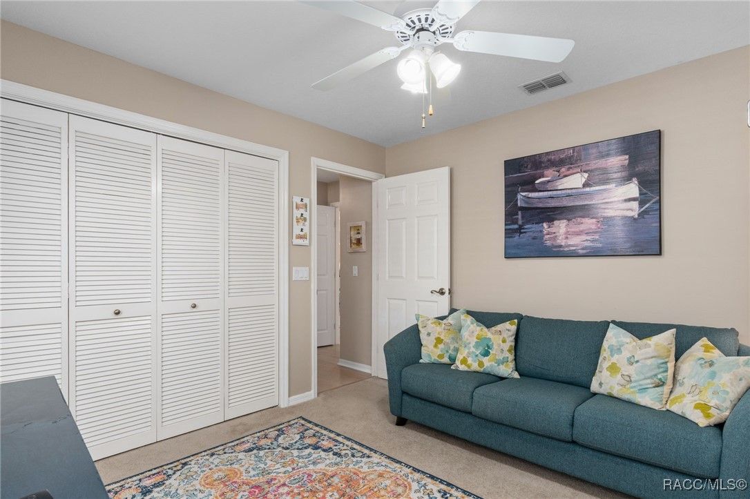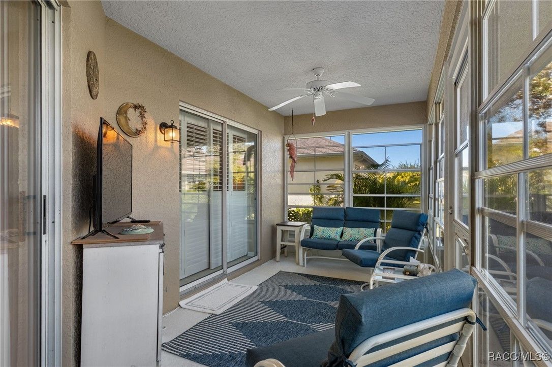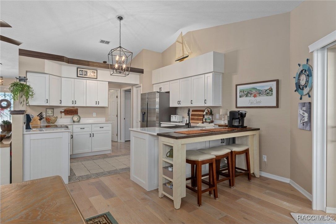 Welcome to your dream home in the highly desirable Arbor Lakes, an exclusive 55+ waterfront community. This beautiful, move-in-ready residence offers everything you’ve been looking for luxury, comfort, and a relaxed lifestyle. As you approach the home, you’ll be greeted by stunning curb appeal with a paver driveway and walkway leading up to the inviting covered front porch. The exterior is further enhanced with gutters and a professionally maintained irrigation system, ensuring the home’s landscaping stays lush and vibrant all year long. Step inside to the foyer, which flows seamlessly into the spacious, open living area. The kitchen is a chef’s delight, featuring crisp white shaker cabinets, elegant white quartz countertops, a convenient breakfast bar, and a pantry for all your storage needs. From the dining and family rooms, enjoy views of the lake, with easy access to two sun porches through sliding glass doors, perfect for soaking in the Florida sunshine. The master suite is a true retreat, offering a walk-in closet, a modern bath with a shower, and private access to the sunroom through its own slider. On the guest side of the home, you'll find a thoughtful design that ensures privacy. A bedroom with a Murphy bed (which conveys with the home), plus another bedroom that leads to its own guest sunroom through sliders. This side of the house also features a door that can close off the area, offering your guests the ultimate comfort and privacy. Throughout the home, you’ll love the elegant plantation shutters and luxury vinyl plank flooring that give the space a coastal vibe. The home is bathed in natural light, making it feel bright and airy. The spacious laundry room includes a large storage closet, a utility sink, and a washer and dryer that convey with the home. Recent updates include a 2023 HVAC system, 2024 garage door opener, new light fixtures, and more, so all you need to do is move in! The Arbor Lakes community offers an array of amenities, including direct access to the lake with a private boat ramp, tennis courts, shuffleboard, a community pool, fitness center, and a clubhouse with social events. For an additional fee, RV and boat storage is available within the community, perfect for outdoor enthusiasts. With low HOA fees of just $515 per quarter, covering cable, Wi-Fi, trash, and recycling, this home provides the perfect combination of ease and luxury. Schedule your tour today!