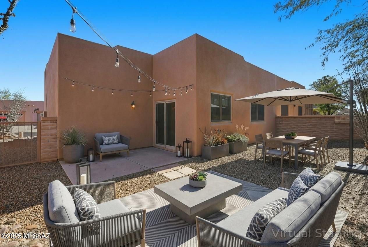 Welcome to 3956 S Calle Viva a charming townhome perfectly suited for winter visitors, year-round living, or an excellent addition to a rental portfolio. This inviting residence features a one-car garage and a comfortable, low-maintenance layout designed for easy living. It's conveniently located within walking distance of the GVR Springs Recreation Center, home to a pool, gym, popular computer club, and renowned clay studio--giving you quick access to activities, amenities, and community events. As you step inside, you're greeted by a bright living area with laminate flooring throughout, making cleaning a breeze. New Andersen windows installed in 2017 enhance energy efficiency, natural light, and overall comfort throughout the home.