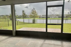 Welcome to Parkland Preserve, one of the most desirable active 55+ communities in the world golf village. This beautifully maintained dalton model from kb homes sits on an expanded waterfront homesite. Backyard is fully fenced in. Screen enclosed patio has new stone tile and leads out to an extended paver patio overlooking the water for entertaining or soaking in the sun. This home has 3 bedrooms plus a flex room and 2 full bathrooms. The bathrooms have quartz countertops and upgraded fixtures. No carpet with tile throughout home. The kitchen is open to the living area with volume ceilings. Kitchen features include white cabinets, gas stove, quartz countertops, walk in pantry, breakfast area and barstools. Other upgrades features of this home include plantation shutters, extended driveway with pavers, paver border for flower beds and epoxy flooring for garage. Come live your best life at Parkland Preserve with amenities including a large zero entry pool, fitness room, pickle ball and tennis courts. Enjoy a calendar full of daily social activities including card games, mahjong, ice cream socials, sewing club, watercolor painting, tech team, water aerobics and more! HOA includes lawn mowing.
