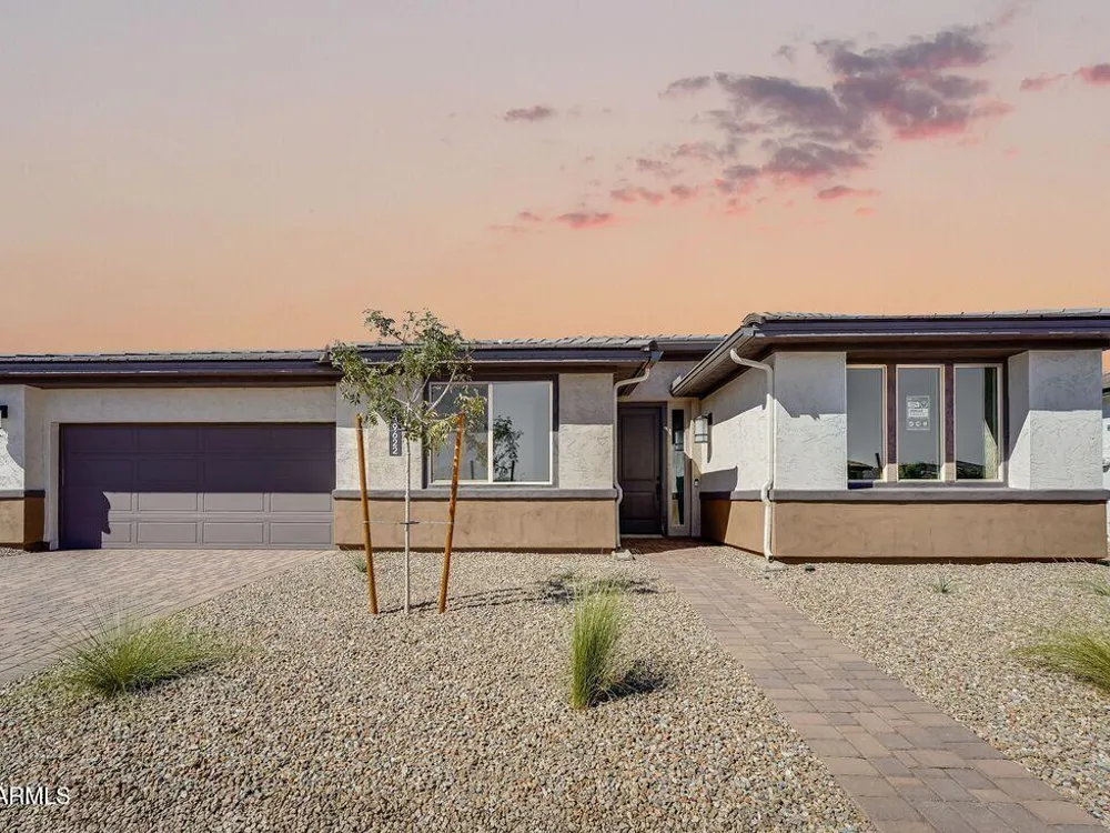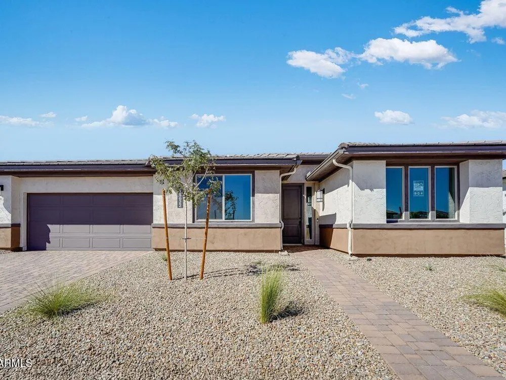 New Construction - Ready Now! Built by America's Most Trusted Homebuilder. Welcome to the Sunrise at 39622 N Kaden Court in Ovation at Meridian, a premier 55+ resort-style community! This open-concept home features a spacious great room and kitchen, flex room, private secondary suite, and a secluded primary suite with a large walk-in closet. Enjoy outdoor living on the covered patio, plus added convenience with an expanded laundry room and walk-in pantry. At Ovation at Meridian, you'll enjoy breathtaking desert scenery and a vibrant, active lifestyle. Amenities include the private Ovation Clubhouse, fitness center, sparkling pool, tennis and pickleball courts, and a tranquil butterfly garden certified by the National Wildlife Federation. MLS#6893380 Additional Highlights Include: Sliding glass door at great room, expanded laundry room in place of garage storage, and garage service door.