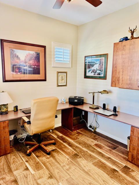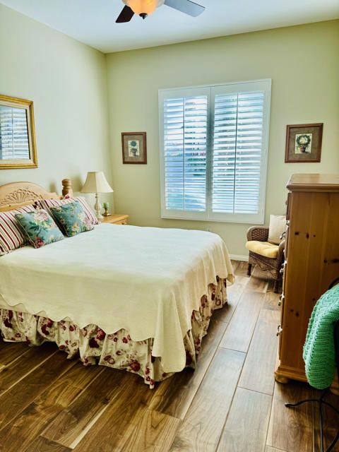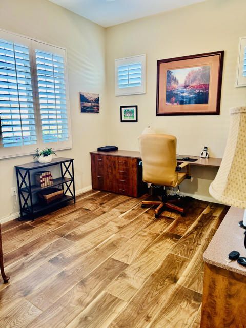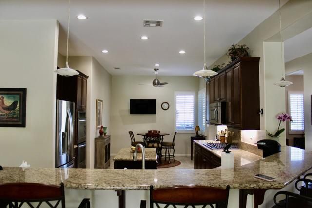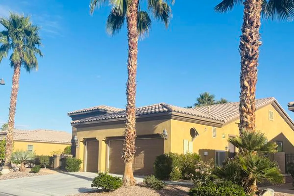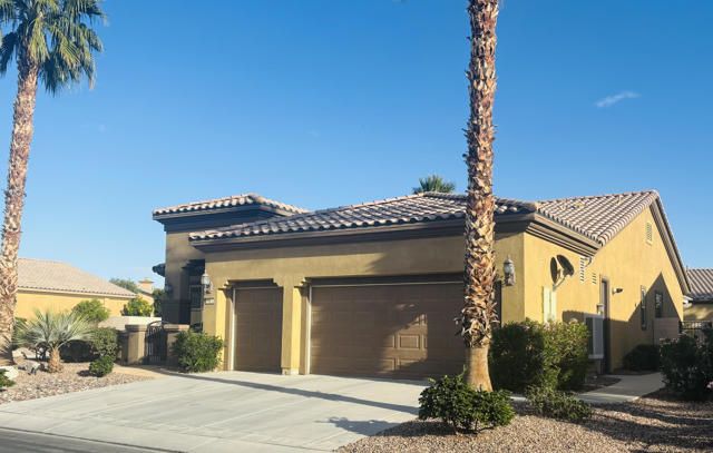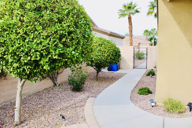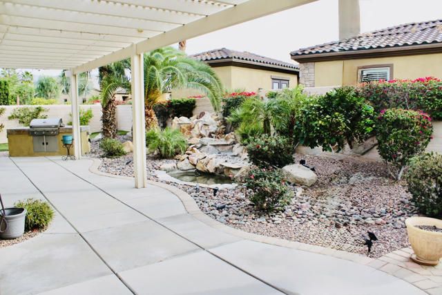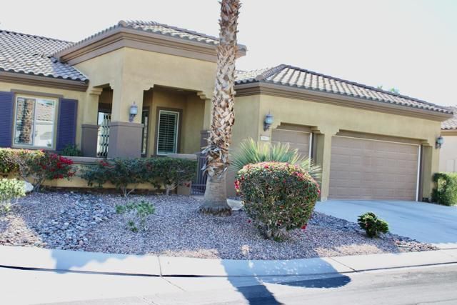Enjoy the lifestyle you've earned in the prestigious 24-hour guard-gated community of Sun City Shadow Hills. This immaculate partially furnished residence offers low-maintenance living, thoughtful design, and access to world-class amenities in a beautifully maintained setting.Enter through a private gated courtyard and double doors into a home that reflects exceptional pride of ownership. The open, flowing floor plan is ideal for both everyday comfort and entertaining, while a dedicated den/office provides flexible space for working from home, hobbies, or a quiet retreat.The spacious kitchen is designed for active living and gatherings, featuring a center island, granite countertops, stainless steel appliances, breakfast bar, and a sunny breakfast nook. It opens seamlessly to the main living areas, creating an inviting and connected space.The primary suite is a peaceful retreat, complete with a large walk-in closet and a spa-inspired bath offering dual vanities, a soaking tub, and a walk-in shower. A comfortable guest bedroom with its own bath ensures privacy for visitors, complemented by an additional powder room.Additional features include crown molding and custom plantation shutters throughout, a separate laundry room with ample storage, and a 3-car garage with built-in cabinetry--perfect for storage, hobbies, or a golf cart.Situated on an 8,276 sq. ft. lot, the backyard is a private desert oasis. Fully landscaped for easy maintenance, it showcases a beautiful fountain with cascading spillover into a tranquil stream, creating a soothing, resort-like ambiance. A covered patio offers the perfect space to relax, entertain, or enjoy peaceful desert evenings.Residents of Sun City Shadow Hills enjoy resort-style amenities including multiple pools, state-of-the-art fitness centers, tennis and pickleball courts, social clubs, and a grand clubhouse.Move-in ready and perfectly suited for an active adult lifestyle--this is desert living at its finest.
