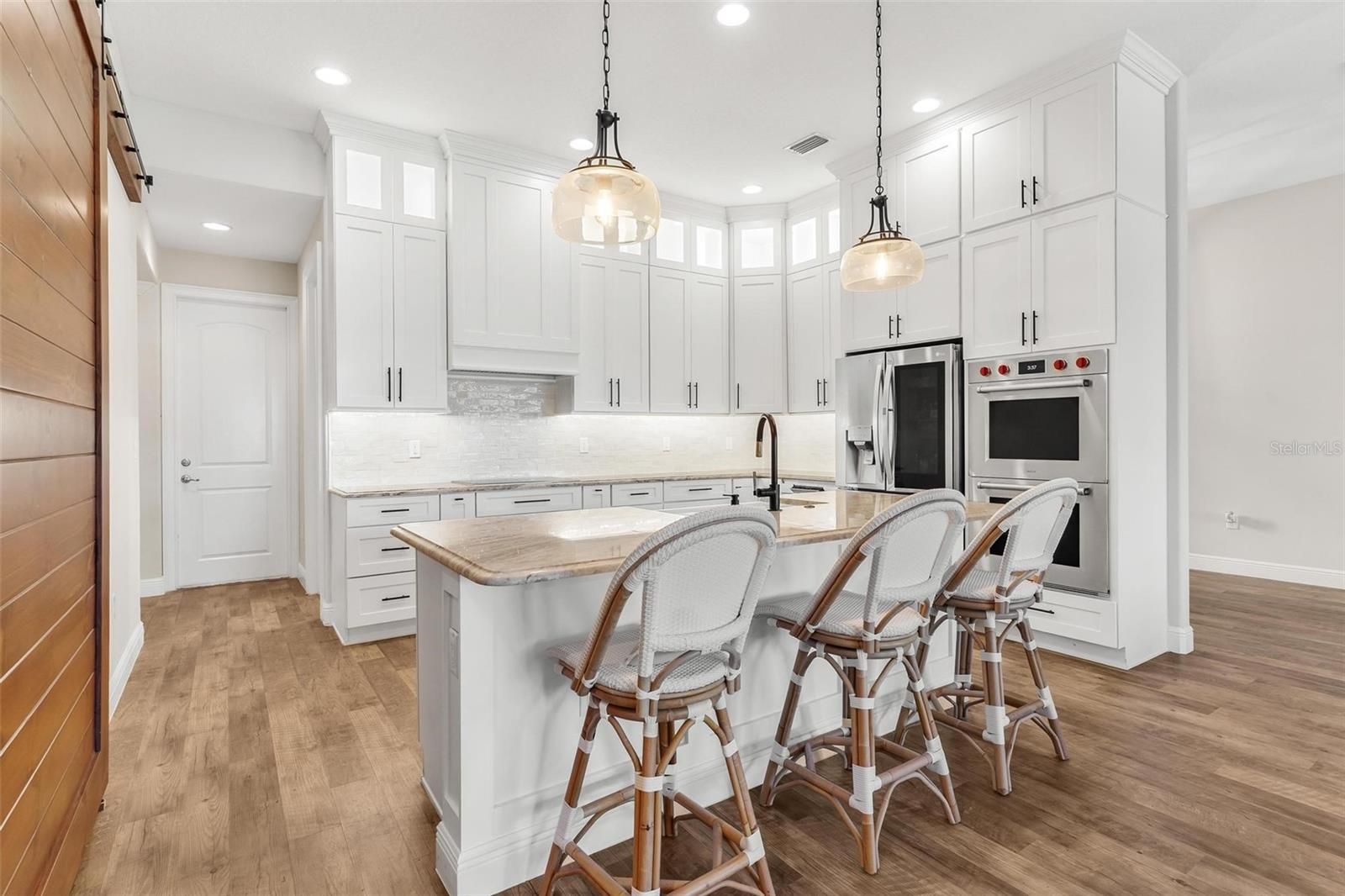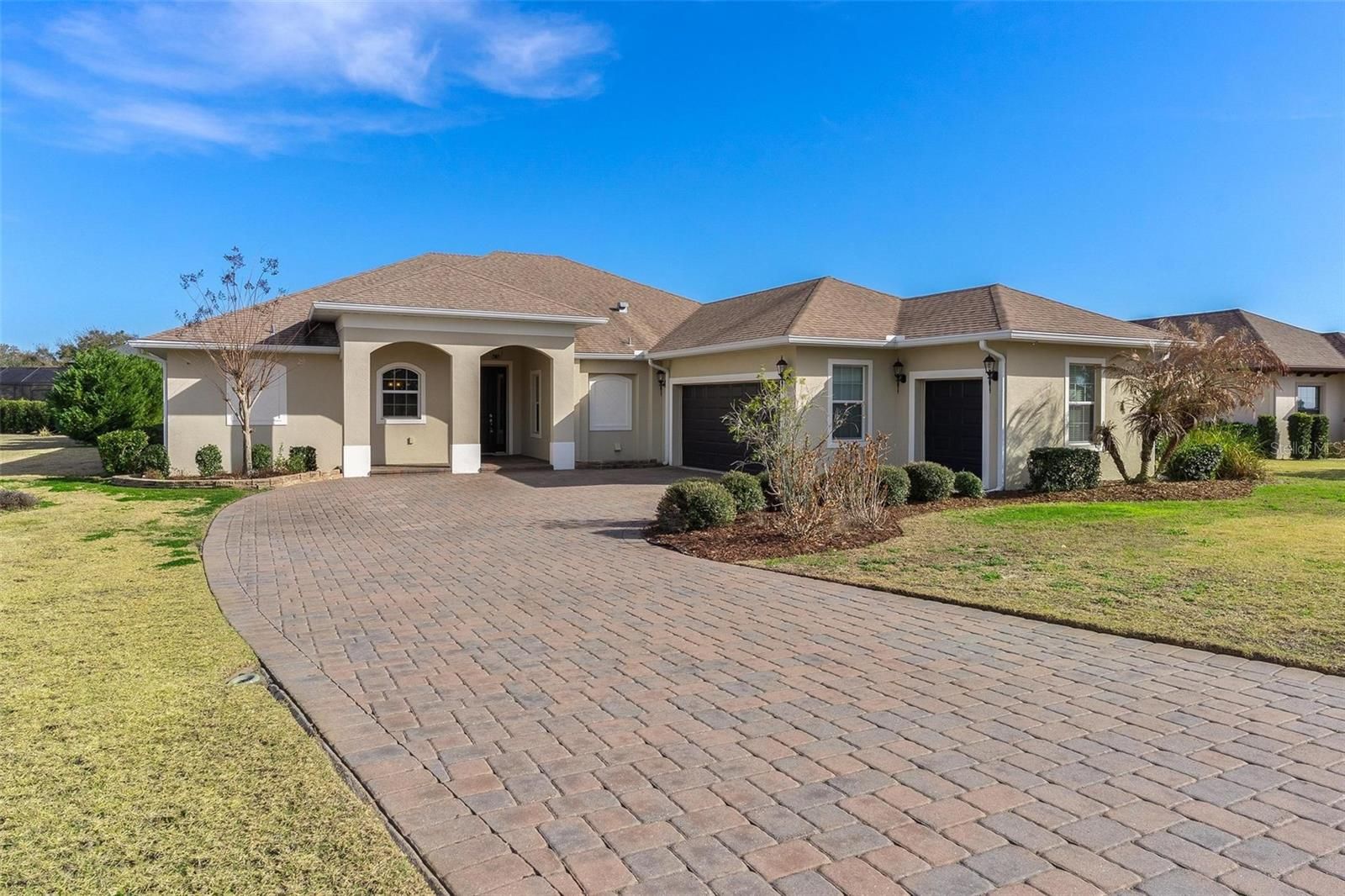 Stunning Remodeled Home in Harbor Hills Country Club. Prepare to fall in love with this beautifully upgraded 3-bedroom, 2.5-bath home situated on a just-under-half-acre lot in this highly desirable community. With over $100,000 in renovations, this home blends modern luxury with comfortable Florida living. The spacious interior showcases a striking stone-accented fireplace, custom built-ins, plantation shutters, designer lighting, and a seamless mix of granite and quartz countertops throughout. The gourmet kitchen is a true showstopper, featuring premium Wolf appliances, an induction range (with optional gas hookup available), French-door refrigerator with InstaView, breakfast bar with pendant lighting, and a custom barn-style sliding pantry door. Entertain with ease in the elegant dining area, complete with a custom-built butler’s kitchen and beverage fridge. The oversized primary suite offers a relaxing retreat with two walk-in closets, dual vanities, and a large walk-in shower. A desirable split-bedroom floor plan places two guest bedrooms and a well-appointed guest bath on the opposite side of the home. Additional highlights include quaint front flex room ideal for a study or playroom, spacious laundry room with built-in pet spa, convenient mudroom off the garage, 2wo-car plus golf cart garage, paved driveway, outdoor lighting and whole-house surge protector. Harbor Hills is a gated community conveniently located near The Villages, with easy access to dining, shopping, and entertainment. This exceptional home truly is love at first sight—schedule your private showing today!