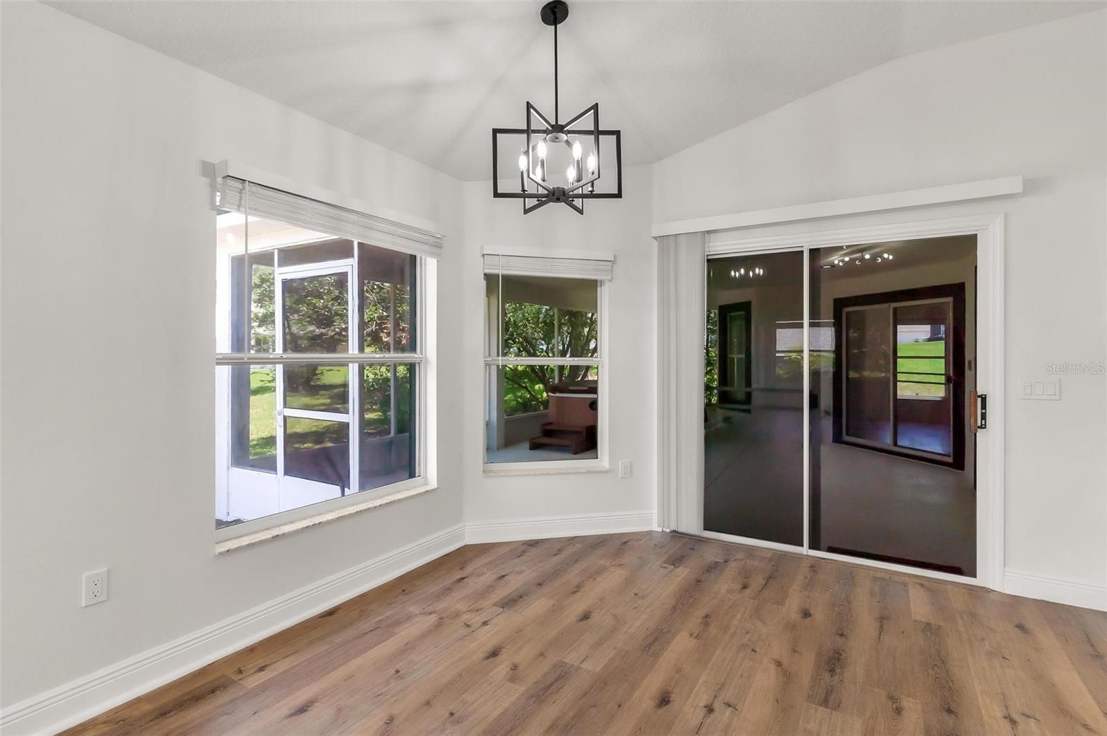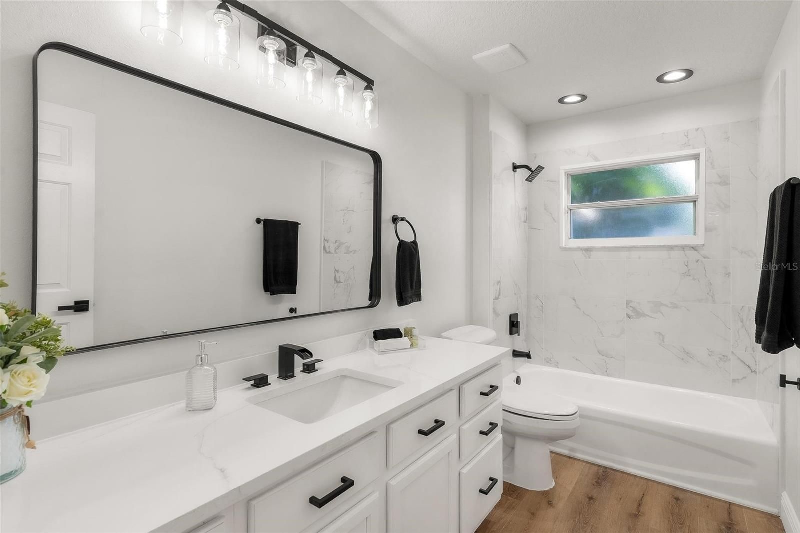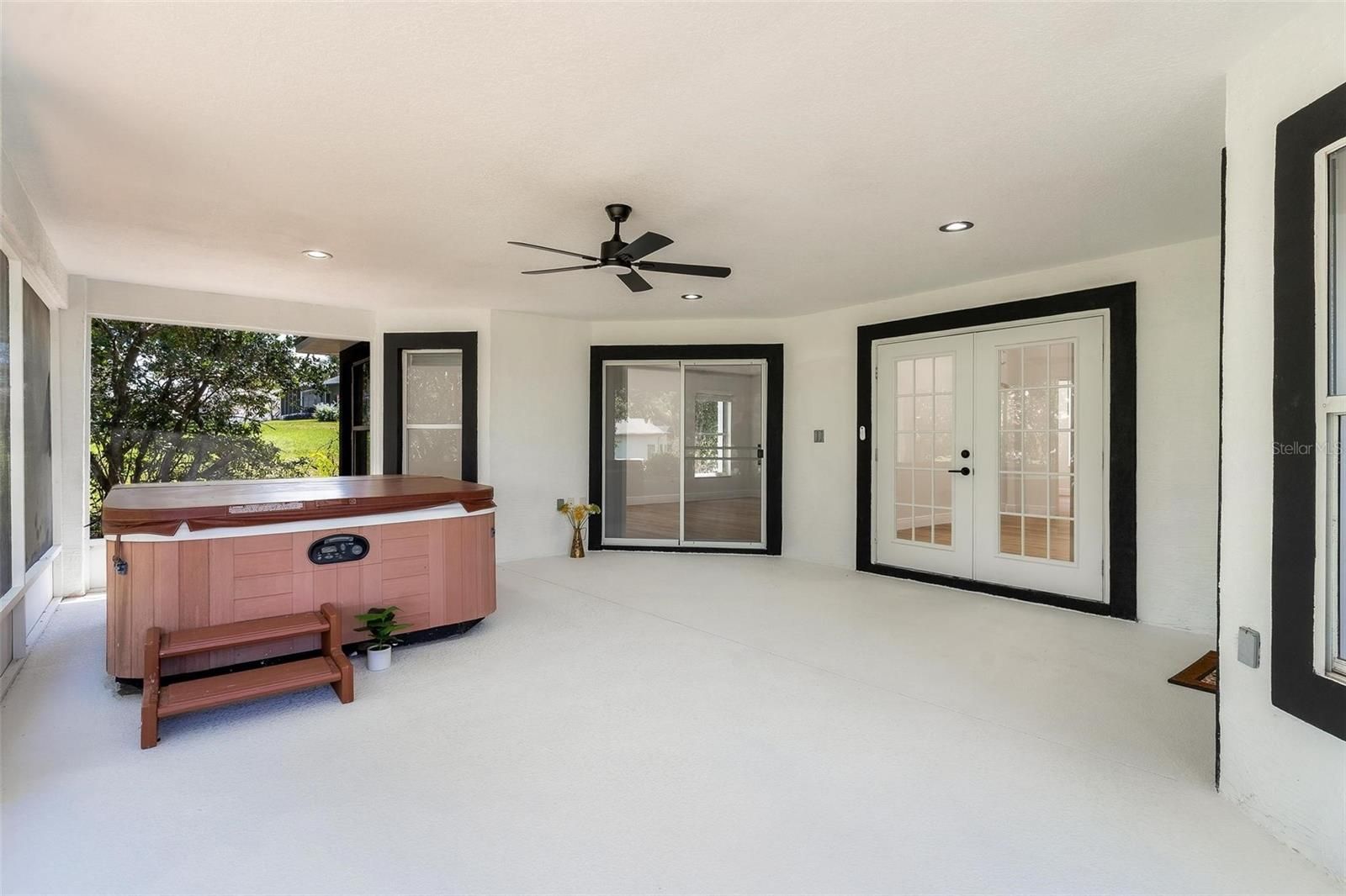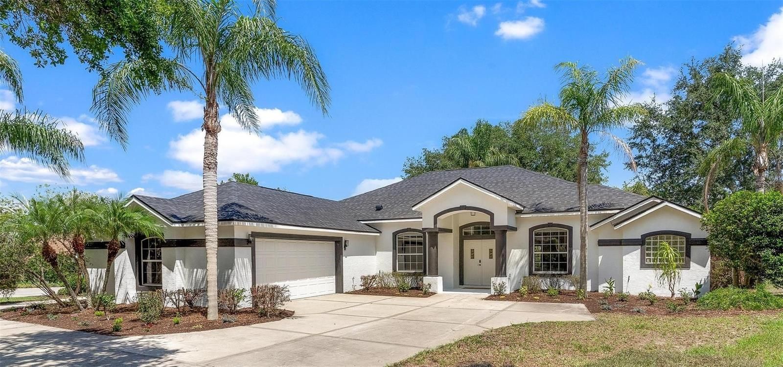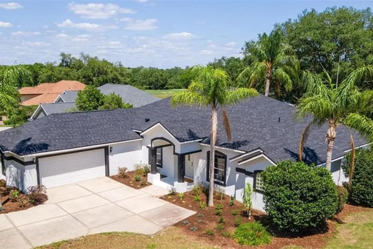 HOME FEELS BRAND NEW! Stop looking...ATTENTION BUYERS! Recently renovated from top to bottom, this stunning home features a NEW ROOF in April 2025 and a long list of upgrades you'll love! Step through the double front doors into a welcoming foyer that leads to a formal living room with French doors opening to the lanai. Adjacent is a separate formal dining area with soaring volume ceilings and elegant crown molding. Need a private workspace? Enjoy a quiet den/office with French doors. The oversized kitchen is a chef’s dream—featuring upscale Calacatta countertops, a full backsplash, a large island perfect for entertaining or prepping, and a lighted walk-in pantry. High-end appliances include a refrigerator, smooth-top range, and brand-new dishwasher and microwave. A large snack bar opens to the expansive family room, ideal for gatherings, with sliding glass doors that lead to a screened porch—complete with your very own hot tub for year-round relaxation! The spacious primary suite is a true retreat, with a cozy sitting area, bay window, and sliding doors to the lanai. The luxurious ensuite bath features an impressive irregular shaped bath with dual vanities, an oversized glass walk-in shower with dual rain shower heads, and both a deep walk-in and a large wall closet for plenty of storage. The split floor plan offers privacy for guests, with Bedrooms 2 and 3 boasting volume ceilings and sharing a well-appointed hall bath with a tub/shower combo. UPGRADES & FEATURES INCLUDE: New vinyl “wood-look” flooring throughout. Fresh paint inside and out. All new light fixtures, recessed lighting, switches, ceiling fans, and chandeliers. New window blinds throughout. Large two-car garage plus separate golf cart entrance. Epoxy-coated garage floor for a clean, polished finish. Enjoy this truly GUARD GATED 24/7 golf community where you always feel “safe and secure”! Clubhouse and Golf memberships are available for a separate fee and is an optional membership! Don’t miss this move-in ready gem—it’s everything you’ve been looking for and more!