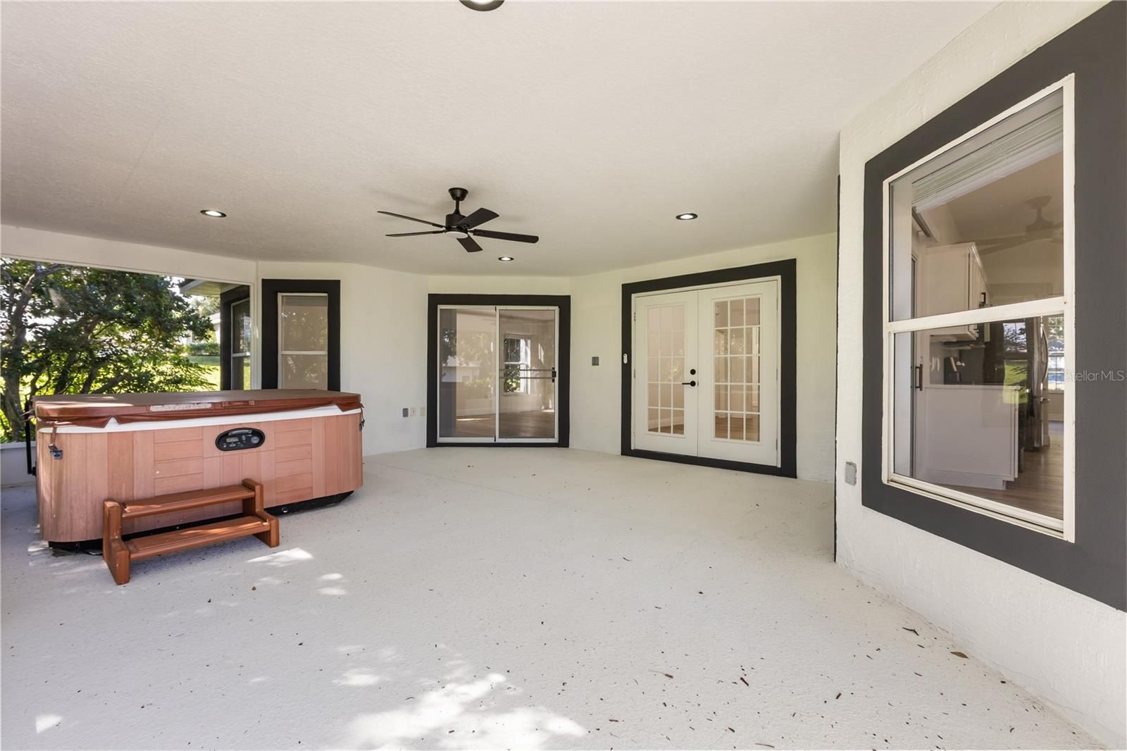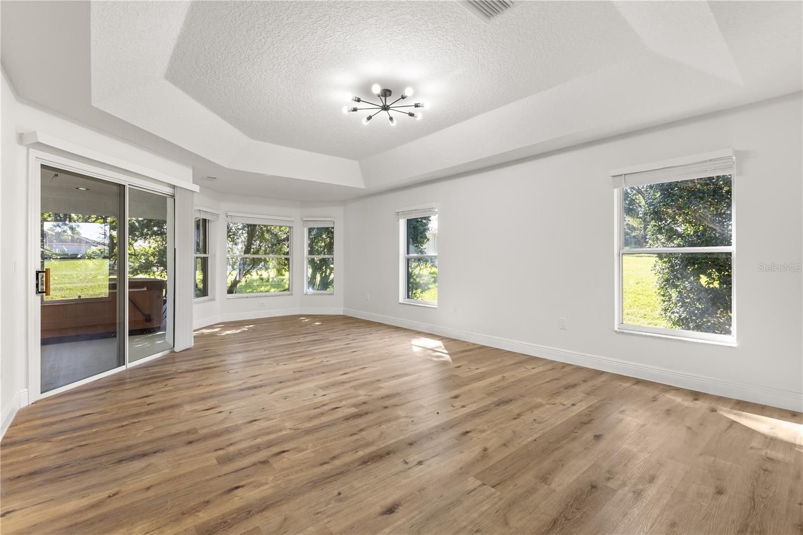 One or more photo(s) has been virtually staged. Welcome to this beautifully updated 3-bedroom, 2-bath home in the prestigious Harbor Hills gated golf community of Lady Lake. Featuring a spacious 2,500+ sq ft layout, this home offers new vinyl flooring, a brand-new roof, fresh paint inside and out, and modern light fixtures throughout. The open kitchen shines with quartz countertops, a large island, and newer appliances, flowing seamlessly into the family room and out to a screened lanai with a relaxing private spa. The split floor plan provides a large primary suite with lanai access, dual vanities, and a luxurious walk-in shower, plus two additional bedrooms for guests or an office. Enjoy the oversized garage with golf cart space, manicured landscaping, and the peace of a secure, guard-gated community with golf, tennis, and clubhouse amenities. Move-in ready and beautifully maintained—this home perfectly combines comfort, style, and Florida living at its best.