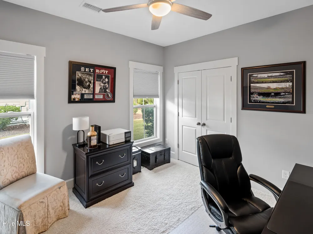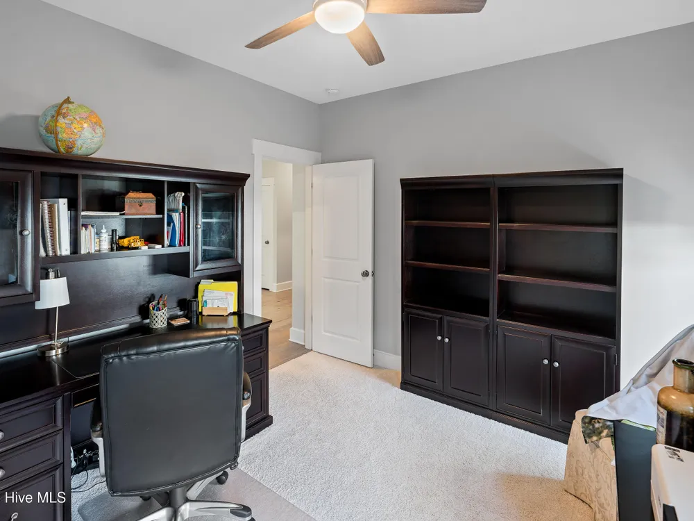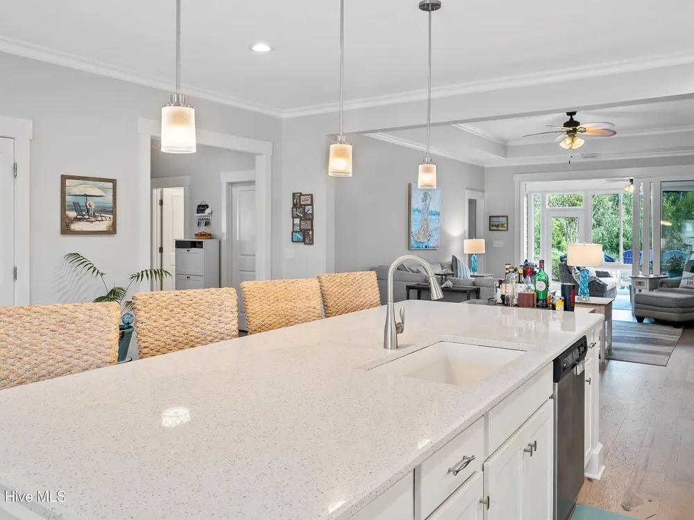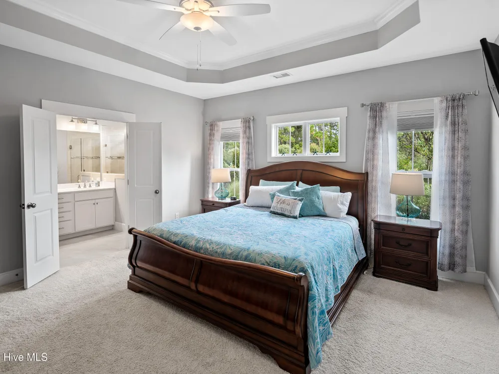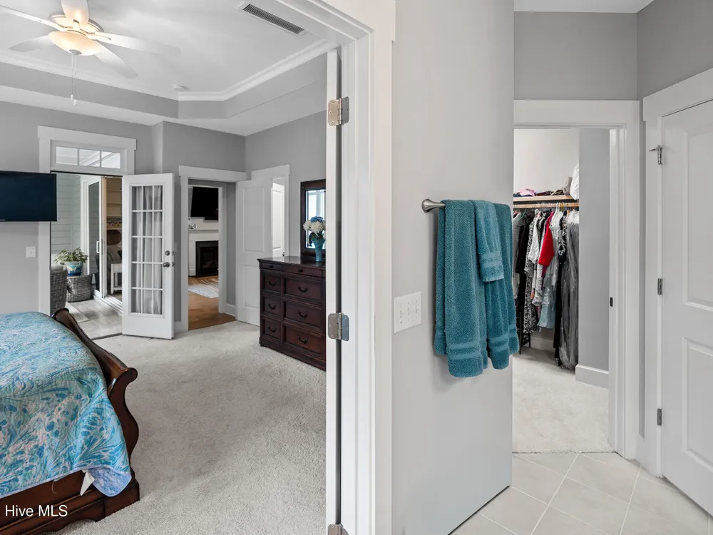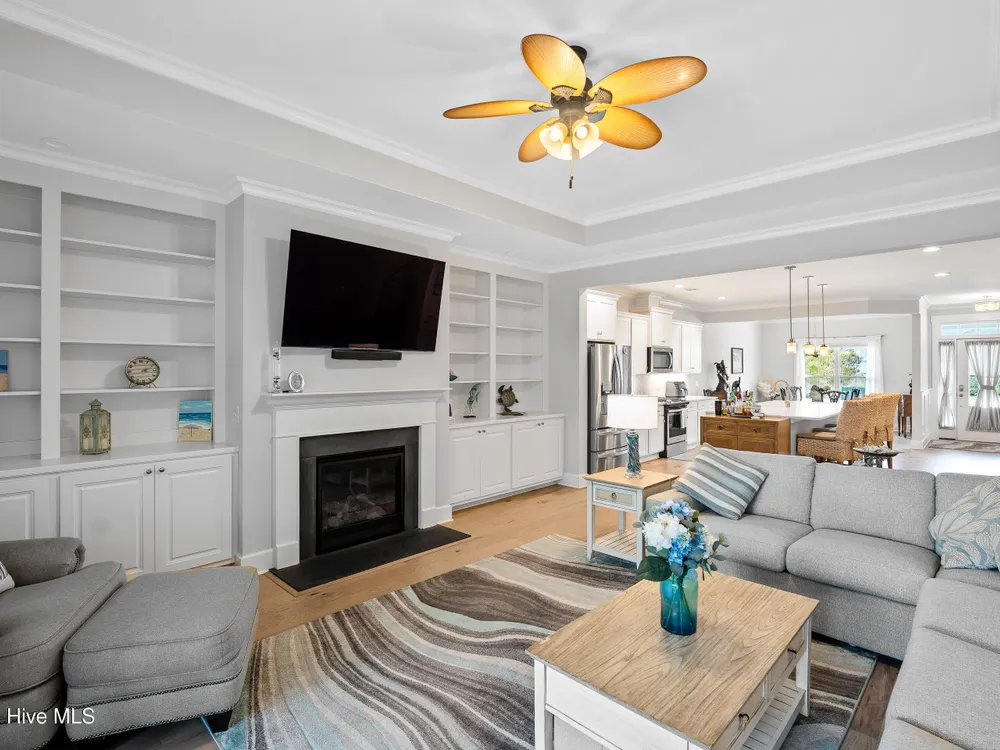 - Blinds/Shades, Tray Ceiling(s), Walk-In Closet(s), Walk-in Shower, Entrance Foyer, Master Downstairs, Kitchen Island, High Ceilings, Ceiling Fan(s), Bookcases