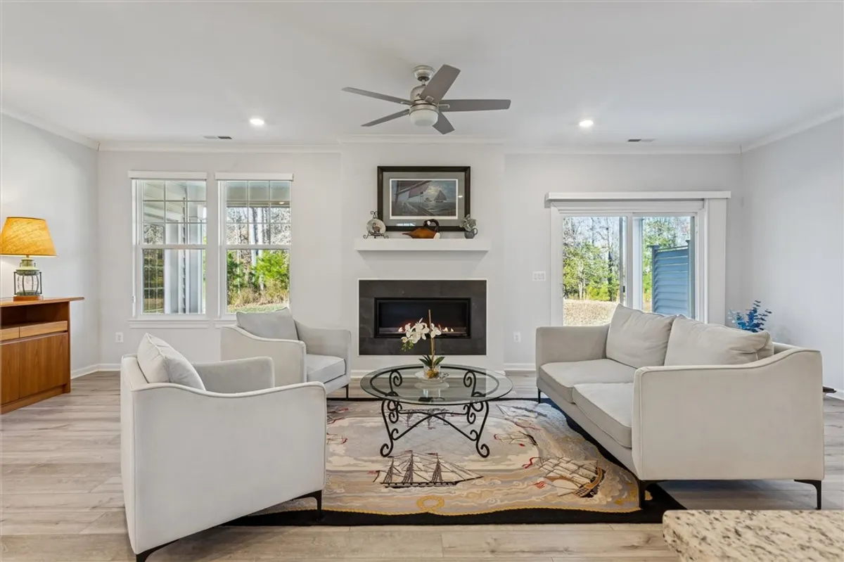 Re-defining the word EXCEPTIONAL! Better than new and ideally situated in a quiet location backing to expansive wooded green space, this beautifully updated James model offers bright, open one-level living that feels far larger than its nearly 2,000 sq. ft. Thoughtfully designed with spacious rooms and abundant natural light, this home features stunning upgrades including NEW LVP flooring, fresh paint throughout, updated lighting fixtures, and added under-cabinet lighting. Enjoy low-maintenance ranch-style living with a welcoming front porch and a rear porch perfect for relaxing while taking in serene wooded views. An ideal home for those seeking comfort, style, and the outstanding resort lifestyle that Colonial Heritage is known for.