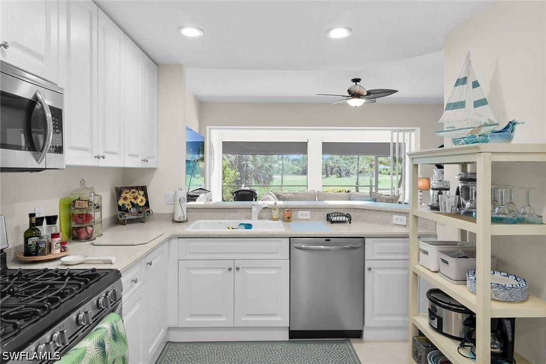 Experience refined resort-style living in this beautifully maintained first-floor condo in the prestigious Fiddler’s Creek community. This light-filled 3-bedroom, 2-bath residence showcases tranquil south-facing golf course and water views, creating a serene and inviting atmosphere throughout. The thoughtfully designed kitchen features stainless steel appliances, a gas range, crisp white cabinetry, an eat-in kitchenette, breakfast bar, and a seamless connection to the formal dining area—ideal for both everyday living and entertaining. The open-concept floor plan flows effortlessly into a spacious screened lanai, perfect for relaxing or enjoying the picturesque surroundings. The primary suite offers a private retreat with generous walk-in closet, dual vanities, and peaceful views of the golf course and water. Additional highlights include plantation shutters throughout. An attached one-car garage and charming courtyard entry enhance both functionality and curb appeal. Residents of Fiddler’s Creek enjoy world-class amenities, including a resort-style clubhouse and spa, state-of-the-art fitness center, multiple pools, championship golf, tennis, pickleball, bocce, dining options, social events, and extensive biking and walking paths. Optional beach club and marina memberships are also available. Discover a lifestyle of comfort, elegance, and exceptional amenities in one of Naples’ most sought-after communities.