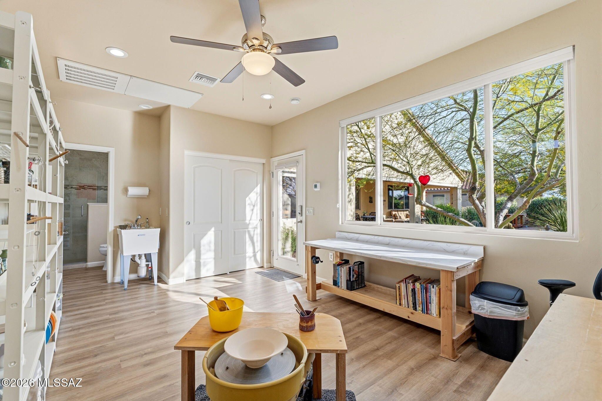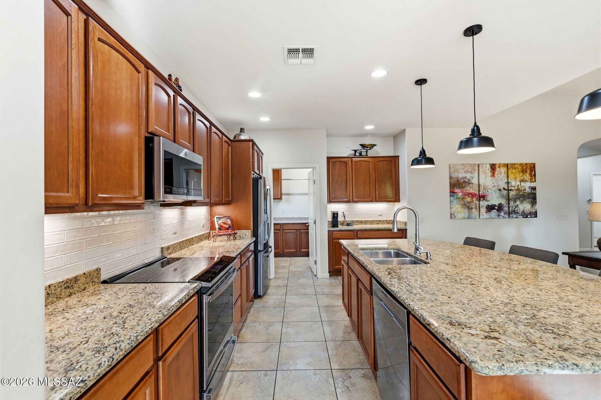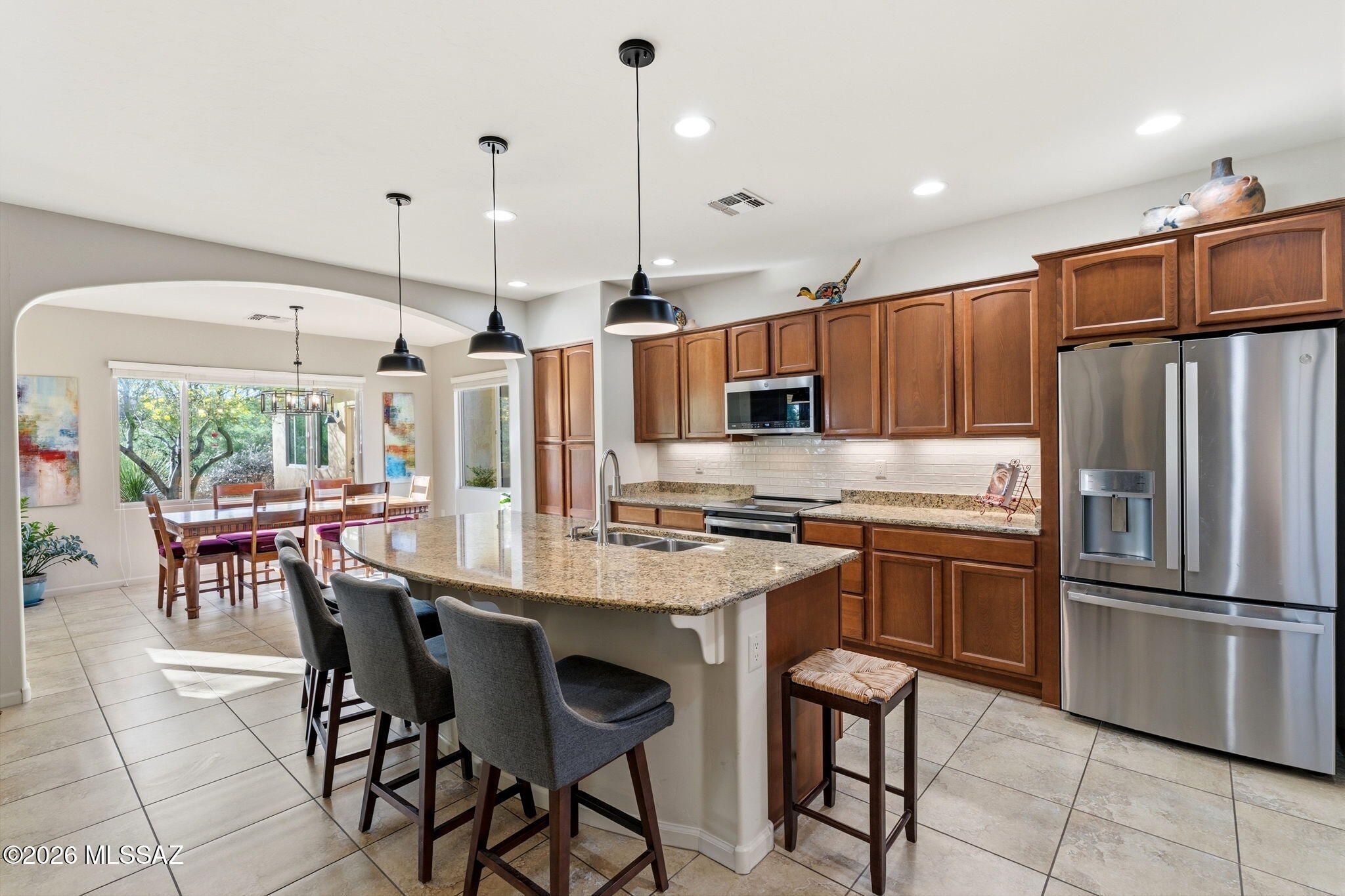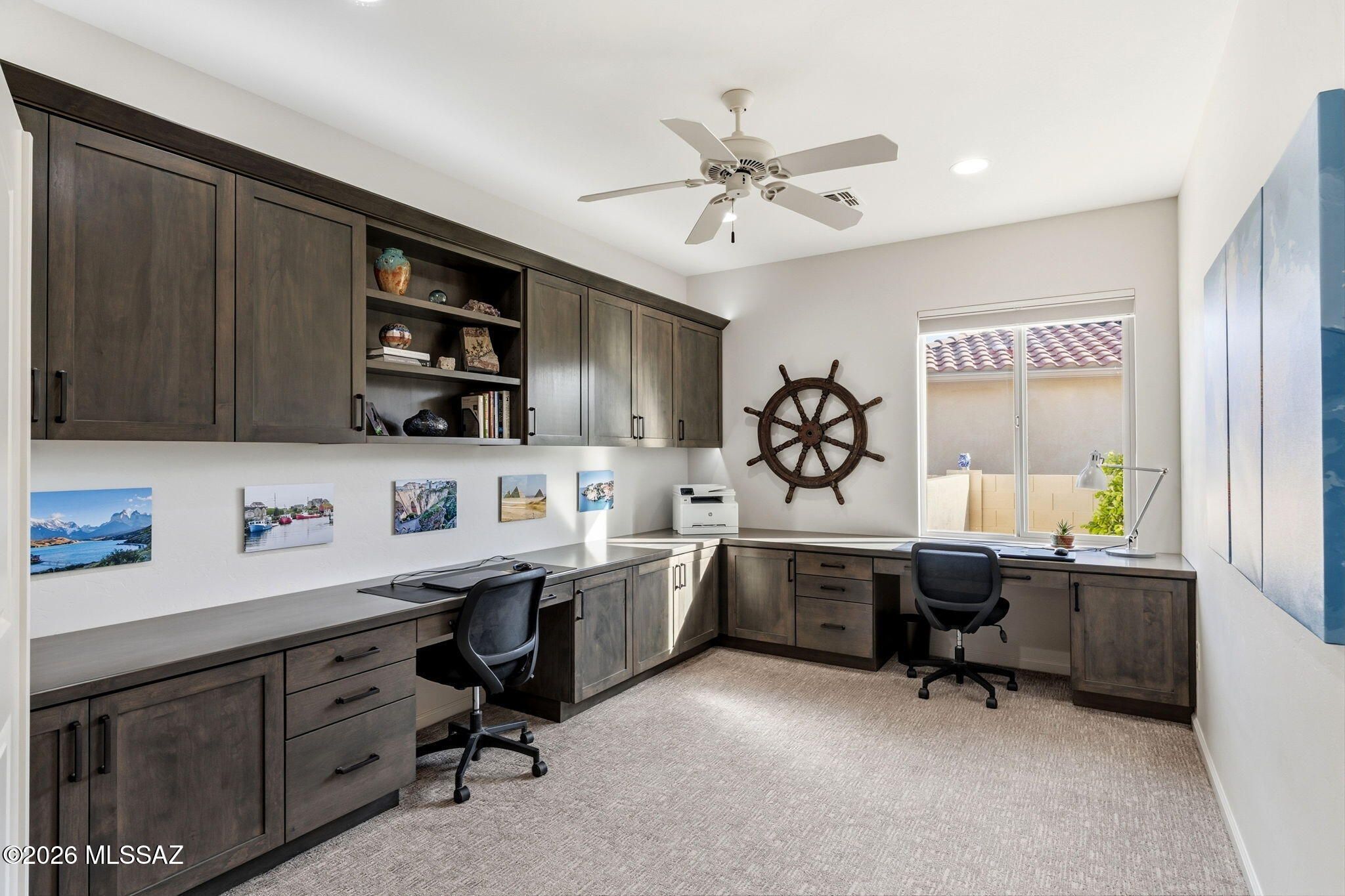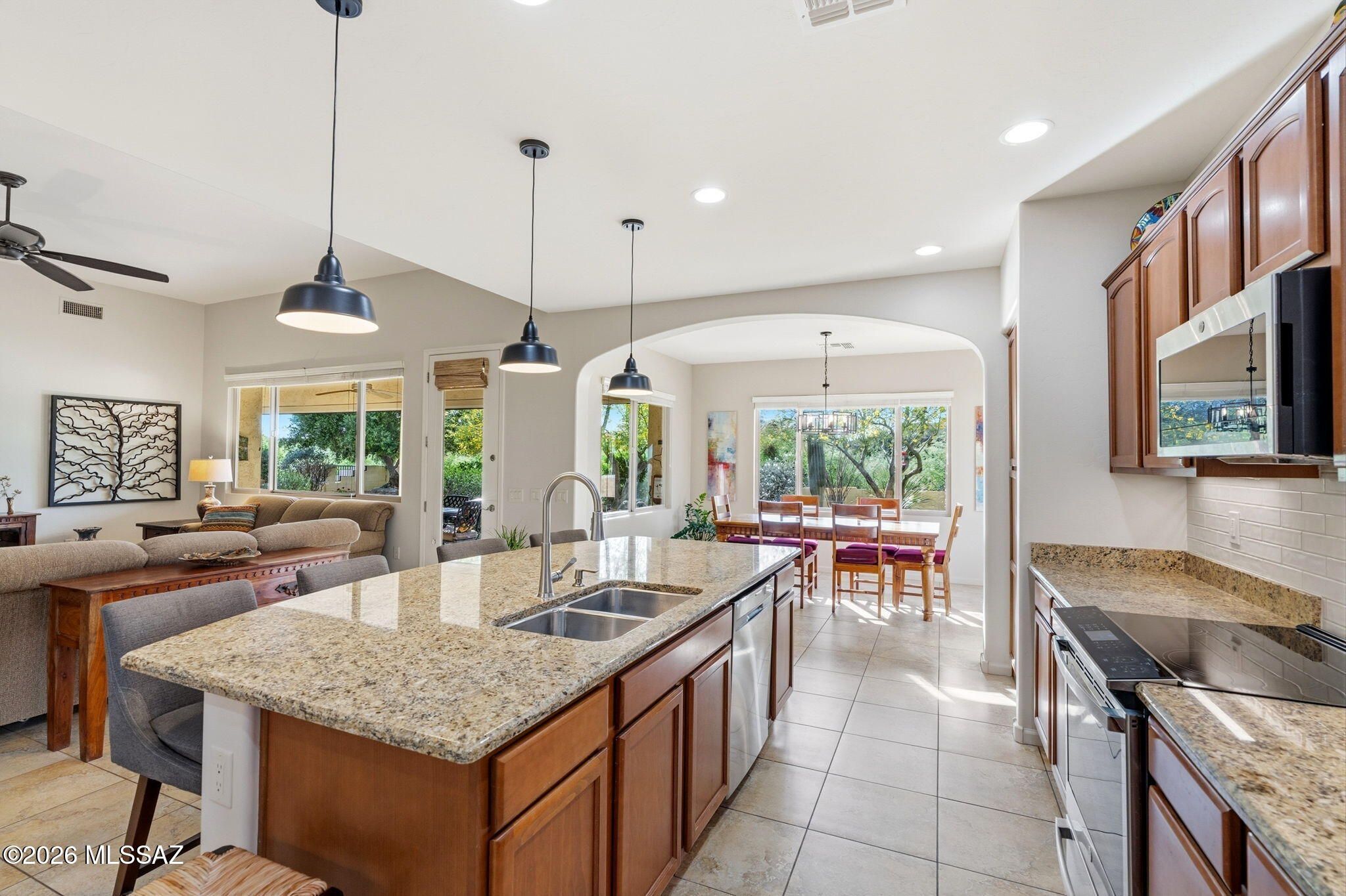 Located in the highly sought-after SaddleBrooke 55+ active adult community, this stunning 2,369 sq ft property offers the perfect blend of comfort, functionality, and Arizona lifestyle living. The main home features 2BD/2.5BA, plus a detached 1BD/1BA casita--ideal for guests, a private studio, or hobby space. Step inside to an inviting open-concept floor plan that seamlessly connects the living and dining areas to a chef's kitchen, complete with granite countertops, abundant cabinetry, and newer appliances, including an induction cooktop. The spacious owner's suite provides a relaxing retreat with a large walk-in closet and an oversized walk-in shower. A private guest room with ensuite bath ensures comfort and privacy for visitors, while the den--featuring custom built-in wall units--offer