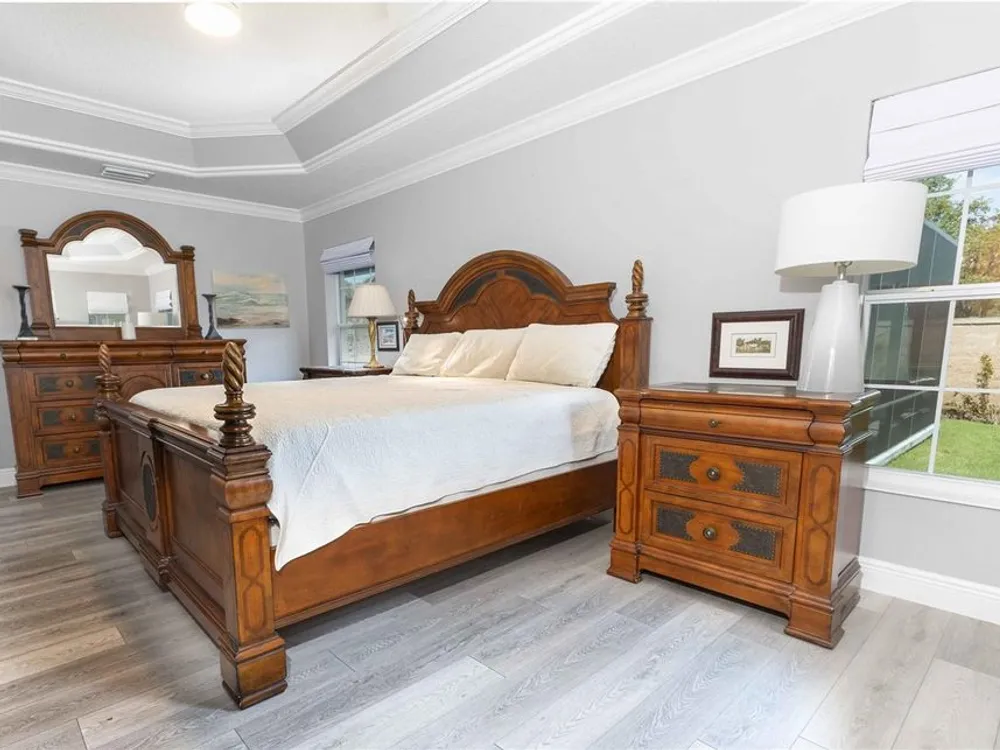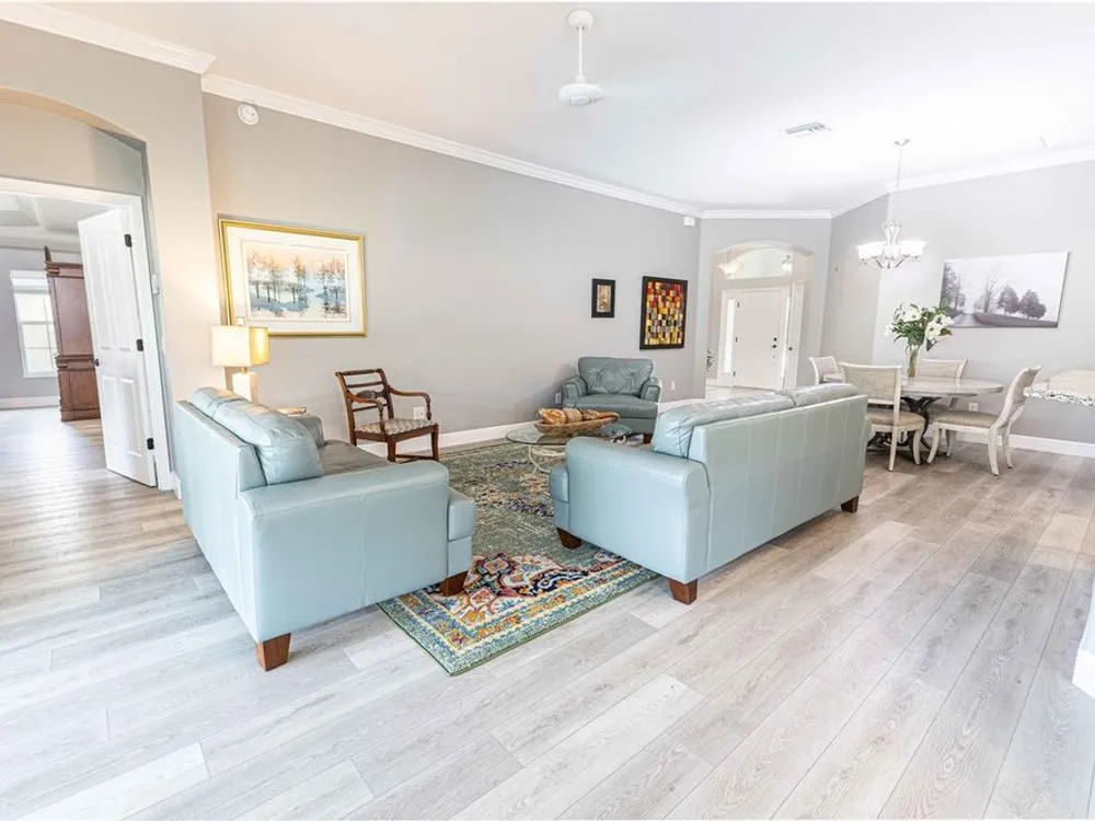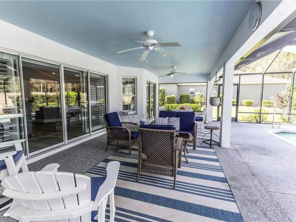 !!MOVE-IN READY!! SOLAR POOL HOME!! NEW ROOF!! NEW PAINT!! CROWN MOULDING & PLANTATION SHUTTERS THROUGHOUT!! Welcome to your slice of paradise in the highly sought-after Village of Lake Deaton, just off the shimmering shores of Lake Deaton. Perfectly positioned minutes from BROWNWOOD TOWN SQUARE, dining, and shopping (Target, Lowe’s, Home Depot, and the BRAND-NEW WALMART coming soon), this home offers both convenience and tranquility. Unlike most homes, this property backs up to Wildwood’s Historic Baker Home and adjacent vacant land, giving you a serene and private backdrop with a DECORATIVE PRIVACY WALL that creates your very own tropical lanai and pool oasis. Immediately feel the warmth of “home” as you step inside this EXPANDED 3-BEDROOM, 2-BATHROOM IRIS DESIGNER MODEL consisting of 2,025sqft of living space, over 1,250sqft lanai & pool area, and over 600sqft garage totaling 4,000+/-sqft! With a 2-CAR GARAGE PLUS A SEPARATE GOLF CART GARAGE, there’s plenty of room for everything that makes The Villages lifestyle so much fun. This BLOCK & STUCCO HOME has been beautifully updated with a NEW ROOF and FRESH EXTERIOR PAINT (2025), A STRETCHED INTERIOR AND LANAI, GRANITE COUNTERTOPS, and STAINLESS STEEL APPLIANCES. Thoughtful upgrades throughout include CROWN MOULDING, LUXURY VINYL PLANK FLOORING, PLANTATION SHUTTERS, SHAKER-STYLE CABINETS, EPOXY GARAGE FLOORS with ATTIC DECKING for STORAGE, a DECORATIVE DRIVEWAY with CONCRETE LANDSCAPE CURBING, a WHOLE-HOUSE WATER FILTRATION SYSTEM, and lush landscaping that completes the Florida feel. Of course, the centerpiece is your SOLAR-HEATED POOL—perfect for floating the day away under the FLORIDA SUN. Location doesn’t get much better. You’re surrounded by world-class recreation: championship golf at EVANS PRAIRIE, BONIFAY, and BELLE GLADE COUNTRY CLUBS; executive courses like MANGROVE, PALMETTO, and SWEETGUM; and nearby recreation centers including EISENHOWER, BRADENTON, MANATEE, and CAPTIVA. Whether you enjoy pickleball, dancing, arts and crafts, swimming, or simply relaxing, everything is at your fingertips. So picture yourself here: lounging by the pool with a cool drink in hand, the sun on your shoulders, and all of The Villages lifestyle right outside your door. This home is more than just MOVE-IN READY—it’s MOVE-IN AND START LIVING YOUR BEST LIFE READY. Call today to schedule your private showing and discover why life in The Villages is all about LIVING BETTER.