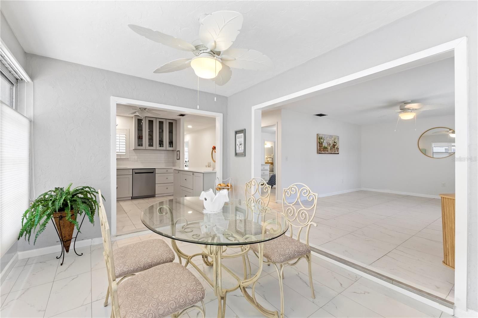 One or more photo(s) has been virtually staged. Welcome to 3978 Overlook Bend Terrace Unit #25, a delightful updated 2-bedroom, 2-bathroom villa nestled in the heart of Sarasota's sought-after Glen Oaks Ridge Villas—a tranquil 55+ community known for its lush landscaping, well-maintained properties, and vibrant social atmosphere. This 1,040 sq ft single-story end-unit villa, offers a perfect blend of comfort and convenience. The interior boasts a spacious updated combination dining and living room adorned with ceiling fans and blinds, providing a cozy setting for relaxation and entertainment. The sunlit Florida room invites you to unwind and enjoy the serene surroundings. There are upgrades galore, including new AC unit with all new ductwork and new hot water heater. It also boasts new paver patio, new screened enclosure with solar screening, new ceramic floor tile throughout except master bath. The updated kitchen is equipped with new kitchen cabinets with white subway backsplash and quartz countertops. It also has a new stainless steel refrigerator, stove and dishwasher all catering to all your culinary needs. It also has a newer washer and dryer with added additional storage. This wonderful homes also has new ceiling fans, plantation shutters throughout with a new updated guest bathroom. The master suite features a walk-in closet and an updated vanity, offering a private retreat within your home. The community features a heated pool, clubhouse with kitchen, exercise room, game room, shuffleboard and various social activities including a putting green. Glen Oaks Ridge Villas provides residents with a great low-maintenance lifestyle, thanks to a homeowners' association that covers the roof and all roof maintenance, pool care, exterior building maintenance, grounds upkeep, insurance, water, sewer, and cable. Situated just minutes from downtown Sarasota, the stunning Gulf Coast beaches, shopping centers, restaurants, and parks, this villa offers the perfect balance of peaceful living and urban convenience. Don't miss the opportunity to make this charming villa your new home in one of Sarasota's most welcoming 55+ communities.