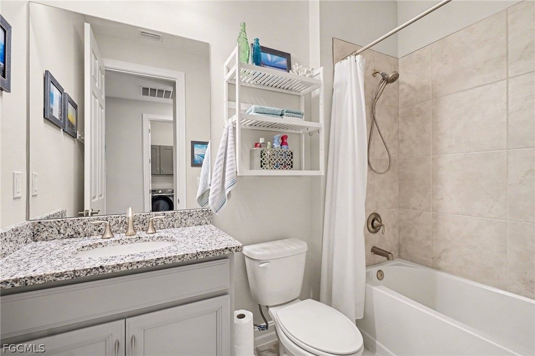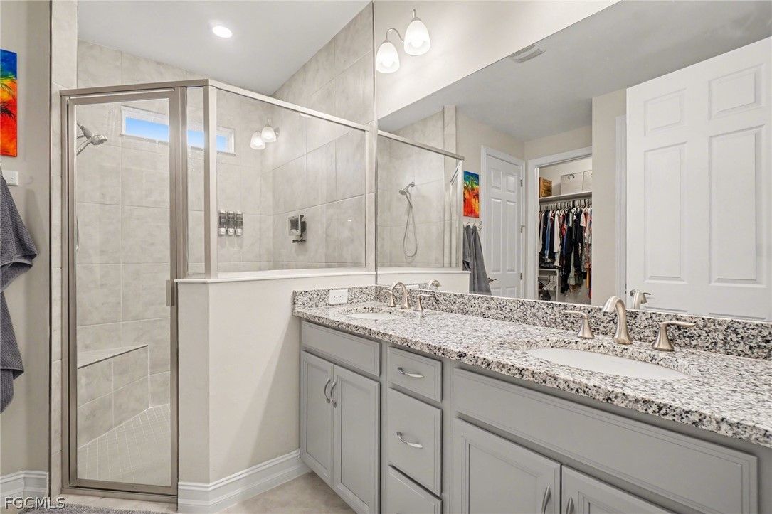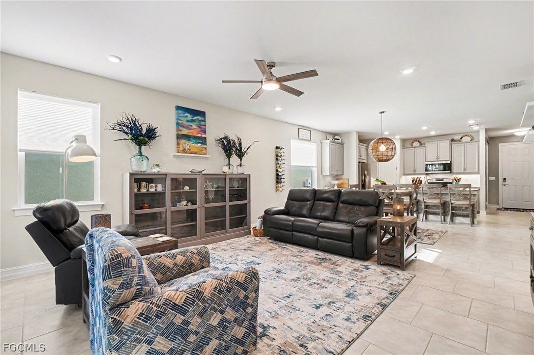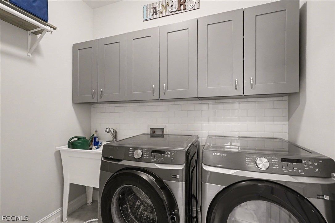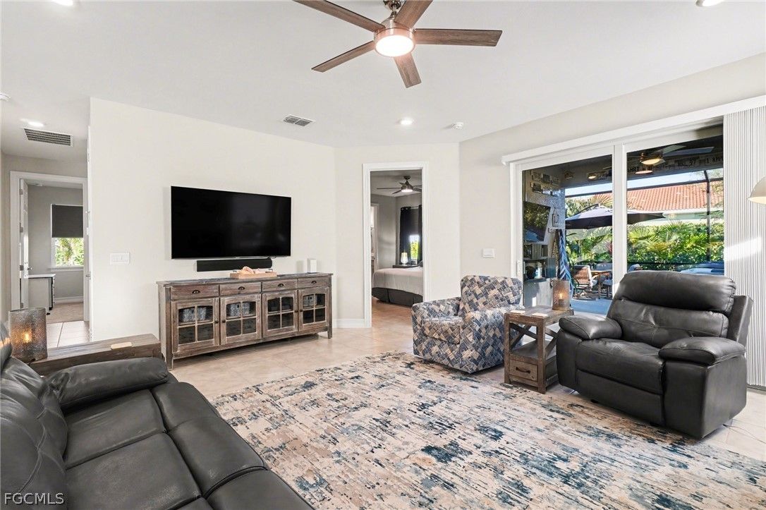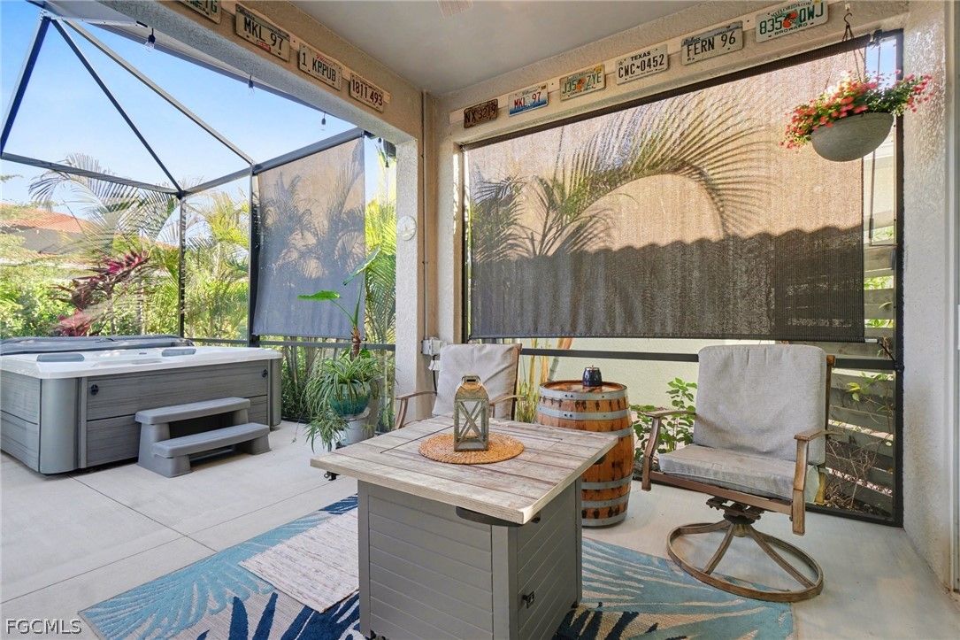 EXPERIENCE MODERN LUXURY AND YOUR VERY OWN PRIVATE TROPICAL PARADISE and a 2.5 CAR GARAGE - ALL IN THE HEART OF MAGNOLIA LANDING! Step into this beautifully updated home where every detail has been thoughtfully designed for style and comfort. -Nestled among mature landscaping with charming cement curbing, this residence boasts a sophisticated palette of grey cabinetry with finished trim molding on top and below, complemented by soft grey ceramic tile on the front of the bar. Under-cabinet lighting and a stylish backsplash enhance the kitchen’s modern appeal, while additional cabinets, cupboards, and matching backsplash in the dining area create seamless continuity. -Warm grey accent walls flow throughout the home, paired with new fans and lighting to brighten every space. Tile flooring extends throughout (no carpet here), while upgraded accordion fabric shades and blinds on sliding door add both elegance and functionality. Closets have been completely redone, offering organized and welcoming storage in every room. -The laundry room continues the high-end finishes with matching cabinetry, backsplash, shelving, a mud sink, and an upgraded Samsung washer and dryer. -Step outside to your private tropical oasis, framed by lush trees providing natural privacy. Relax on the lanai, soak in the hot tub, or entertain on the outdoor patio—your personal retreat awaits. -All of this is located in the desirable Magnolia Landing community, offering a serene, family-friendly neighborhood with easy access to local amenities.