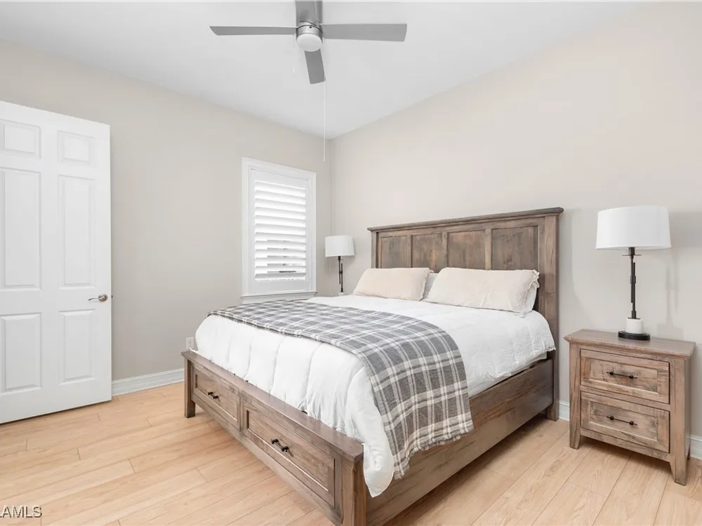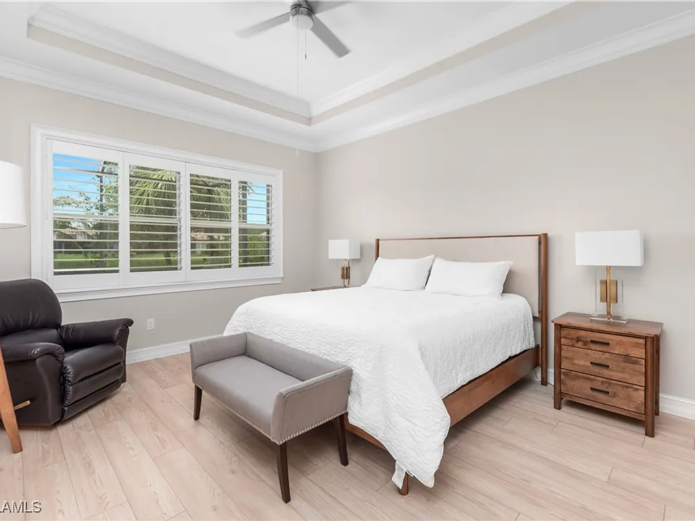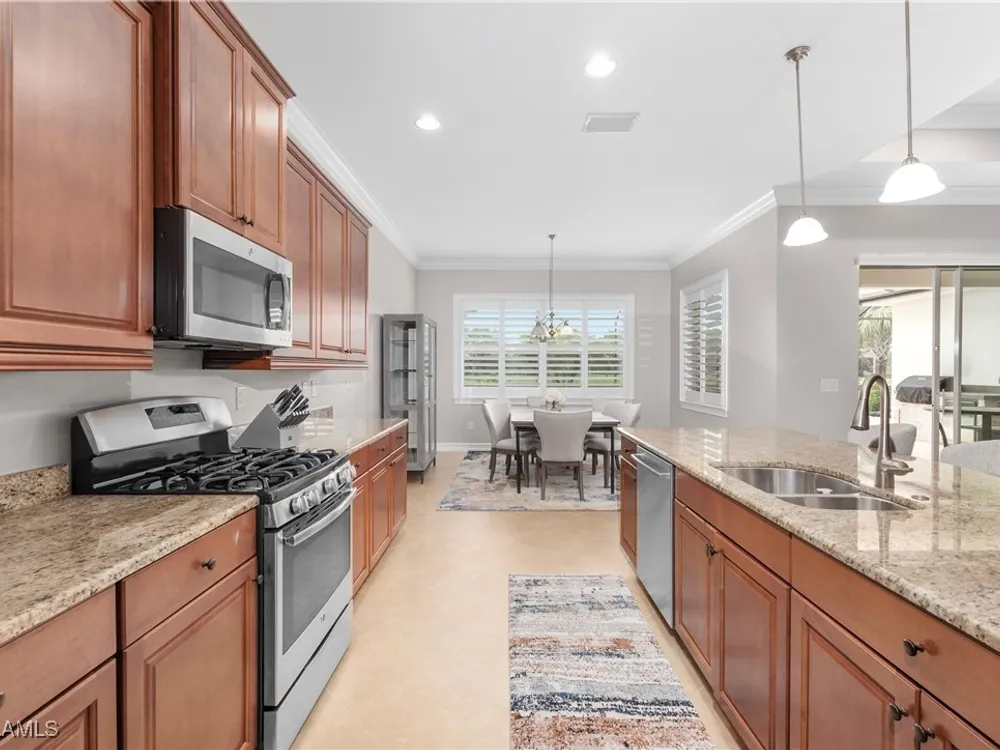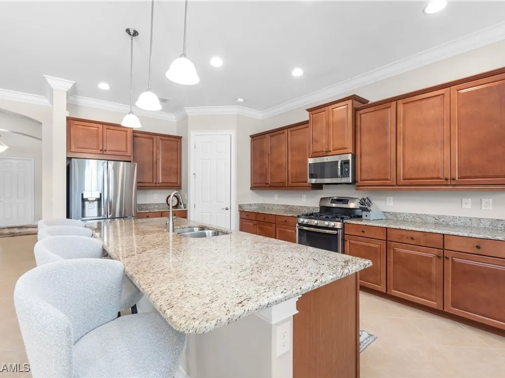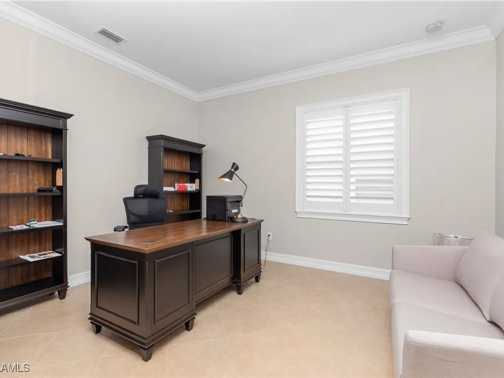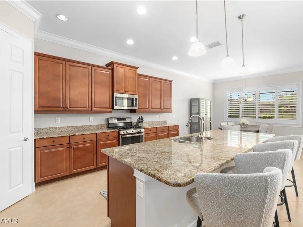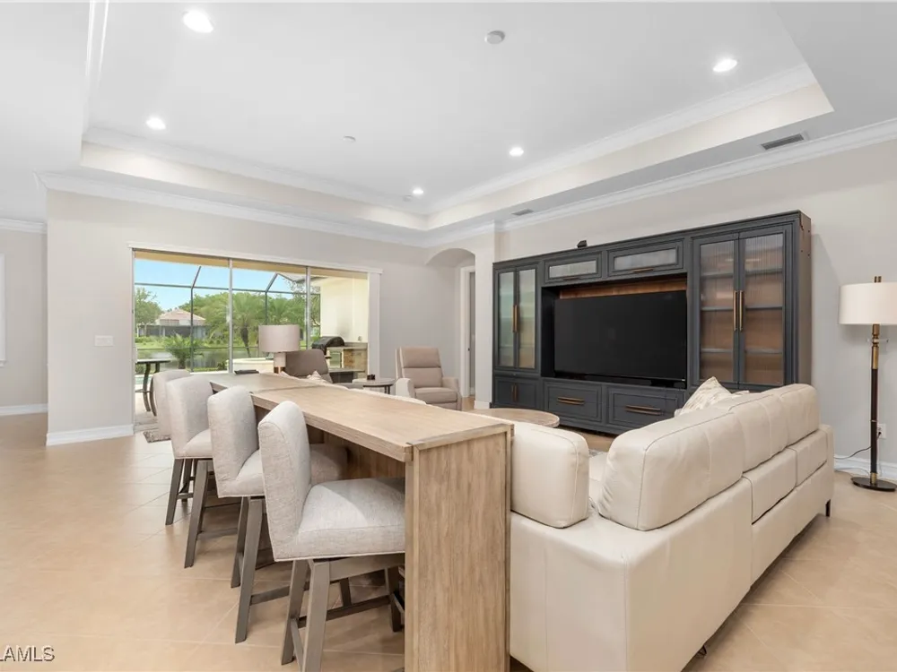 This PARTIALLY FURNISHED beautiful POOL home features 3 bedrooms, 3 bathrooms, an attached 3 car garage and a wide open floor plan. The seller has taken this house from builders grade to custom. It features nearly 2600 sq ft of living space, new wood floors were installed in all the bedrooms, fixtures were replaced and the 3 car garage has a new custom epoxy floor applied. Boasting high tray ceilings, custom lights, PLANTATION SHUTTERS, crown molding, an OUTDOOR KITCHEN, custom ceiling fans, CUSTOM CLOSETS and much much more ... this home is a show piece. The kitchen has STAINLESS STEEL and an eat in kitchen with an open view of the entire main living area. The exterior of the house was repainted. Note: The large lanai has a HEATED POOL AND HOT TUB, overlooks a gorgeous fresh water lake, has a NEW OUTDOOR KITCHEN and a large lanai to accompany all your guests. Verandah has created a wonderful lifestyle with two 18-hole championship golf courses, tennis courts, a state-of-the-art fitness center, a community pool, pickleball, and bocce ball courts....there's even a Doggy Park for man's best friend. For those who love outdoor activities, how about venturing out and KAYAKING on the adjacent ORANGE RIVER, or going for a nice bike ride or walk on the 9+ miles of trails? Verandah is conveniently located to Downtown Ft Myers, the Caloosahatchee River, and both the Ft Myers and Punta Gorda Airports.