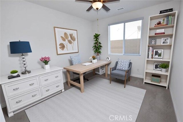Turnkey home located on a cul-de-sac in the highly desireable, gated 55+ Community of Somersbend with paid for solar and a huge fully landscaped low-maintenance yard. The home features a great room a family room and dining area which flow seamlessly into the kitchen as well as 3 bedrooms and 2.5 bathrooms and a huge alumnawood patio with fireplace and multiple fans. The kitchen is a chef’s delight with a large quartz center island and a walk-in pantry and Stainless steel appliances including a fridge. The master suite features a generously sized walk-in closet and a spa-like bathroom with an oversized walk-in shower as well as a linen closet. Two additional bedrooms and a full bath provide comfortable space for guests or a home office. The laundry room has a sink as well as plenty of additional storage space as well as a counter for folding clothes. The backyard retreat with an extensive aluminum patio cover featuring an outdoor gas fireplace and fans also features low-maintenance landscaping with artificial turf and concrete walkways. There is also a convenient storage shed. Esplanade has exclusive resort-style amenities, including a clubhouse, pool, fitness center, and more. All this, just minutes from Temecula Wine Country, shopping, and dining. This home perfectly blends comfort, convenience, and community.