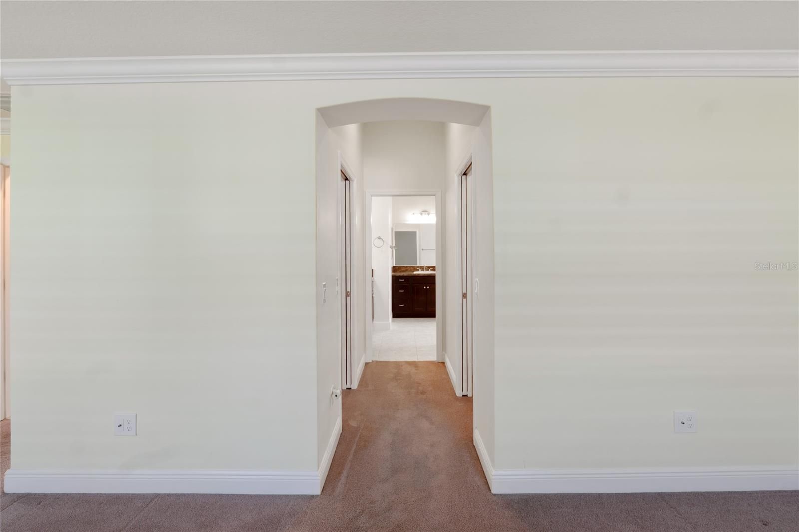 - Cathedral Ceiling(s), Ceiling Fan(s), Eat-in Kitchen, High Ceilings, Living/Dining Room, Open Floorplan, Main Level Primary, Split Bedrooms, Stone Counters, Thermostat, Vaulted Ceiling(s), Walk-In Closet(s)