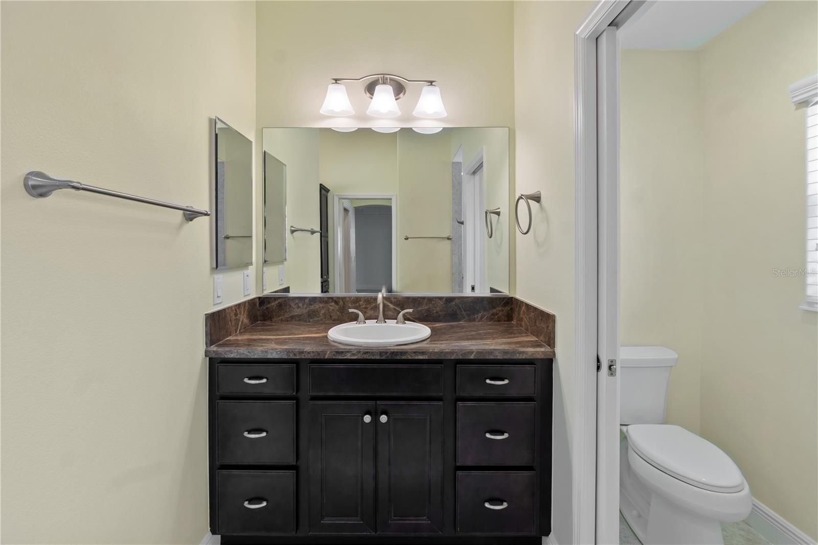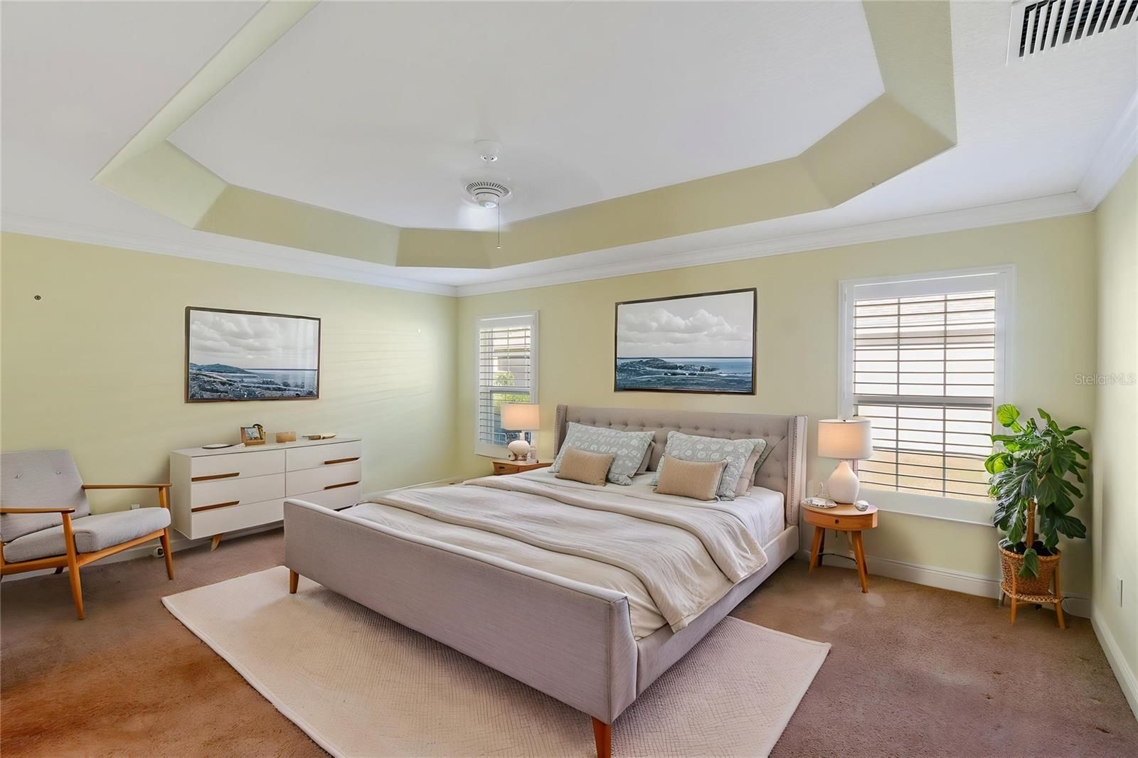 One or more photo(s) has been virtually staged. Welcome to this beautifully upgraded block and stucco Gardenia model perfectly positioned on a premium corner homesite offering both space and privacy! From the moment you arrive, you’ll appreciate the charming front porch, incredible curb appeal, and thoughtfully designed outdoor living areas—including a side brick paver patio with fire pit and an additional rear patio, creating the ideal setting for relaxing or entertaining. Step inside and you’re greeted by volume ceilings, rounded drywall corners, plantation shutters, and a light, bright open layout that truly lives large. The kitchen is an absolute showstopper, featuring rich espresso (Java) staggered cabinetry, stunning Cambria quartz countertops inspired by the iconic look at Bluefin, and stainless steel appliances including a French door refrigerator. This is not your typical Villages kitchen—these countertops were a custom upgrade and truly elevate the entire space. The home offers tile flooring in all wet areas, knockdown ceilings, and a seamless flow perfect for gatherings. The spacious primary suite features a tray ceiling, dual vanities, and a Roman shower, creating a true retreat. Car enthusiasts and golf cart lovers will appreciate the 2-car plus FULL DEPTH golf cart garage, providing plenty of room for vehicles, storage, and toys. The garage is also equipped with a Culligan water softener system, enhancing water quality throughout the home. Outside, the professionally landscaped yard wraps the entire property and has been recently refreshed, offering a lush and inviting environment year-round. The home also features a Roof Maxx treatment, designed to extend the life of the roof and add long-term value. One of the most unique features of this homesite is its exceptional privacy—backing to the side of another home rather than directly behind, giving you a more open and peaceful feel rarely found. Freshly painted on the exterior approximately one year ago, this home is move-in ready and meticulously maintained. If you’re looking for a home that stands out from the rest with custom upgrades, incredible outdoor living, and a fantastic layout for entertaining—this is it!