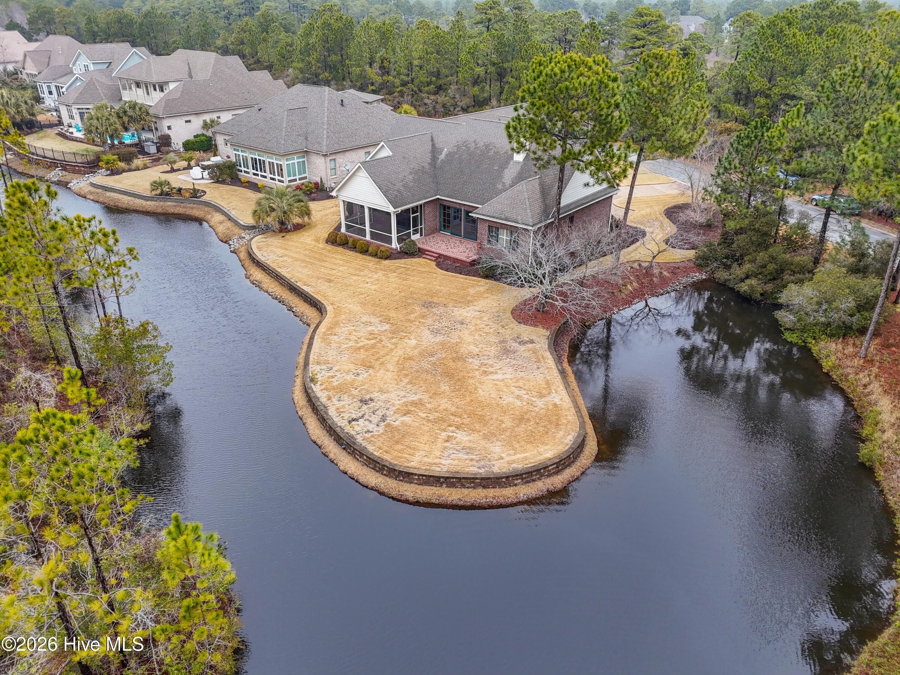Situated on one of the most beautiful and sought-after streets in the Reserve section of St. James Plantation, this brick home offers a rare pond setting surrounded by water on two sides and a protective retaining wall designed to prevent erosion while preserving the timeless pond views. The treed location on the street provides exceptional privacy and a peaceful approach to the home, complemented by an inviting open front porch. Inside, the spacious living room features a wood-burning fireplace and flows seamlessly into the open-concept kitchen and dining areas—ideal for both everyday living and entertaining. A dining room and a dedicated office / den add versatility to the floor plan. A Jack-and-Jill bath connects the office/den and an adjacent bedroom. The office could be closed off and used as an additional bedroom if desired. A screened porch and open patio offer perfect spaces to relax while enjoying views of the gently flowing water. The primary suite is generously sized and thoughtfully designed for comfort and privacy. The home offers three full and one half bathrooms in total. Upstairs, a large bedroom with a loft area provides flexible space for guests, or recreation, or a second office, along with a spacious walk-in attic for excellent storage. Step outside to a beautiful backyard overlooking the pond, where tranquil water views surround the home on two sides, creating a truly special outdoor setting. The three-car garage with extra height offers ample room for vehicles, storage, or hobby space. Residents enjoy access to St. James Plantation's exceptional lifestyle and amenities, including miles of walking and biking trails, 81 holes of championship golf, tennis, pickleball, croquet, bocce, a marina, private beach club, fitness centers, pools, and on-site restaurants—all within a secure, gated coastal community.