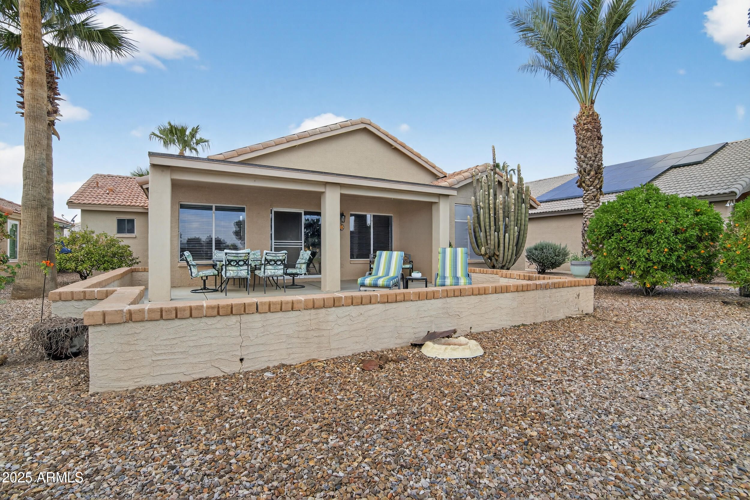 Welcome to resort-style living in this beautifully updated home, perfectly situated on a premium golf course lot with stunning, unobstructed views. Designed for both comfort and style, this home offers two spacious primary suites and an open-concept great room ideal for entertaining. The remodeled kitchen showcases upgraded cabinetry, quartz countertops, and stainless steel appliances. Enjoy exceptionally low utility costs with owned solar panels. Step outside to a relaxing covered patio where you can unwind and take in the sweeping golf course scenery. Located in the desirable PebbleCreek community, you'll have access to top-tier amenities including golf, pickleball, tennis, and countless social activities. This home offers the perfect blend of luxury, comfort, and active adult living.