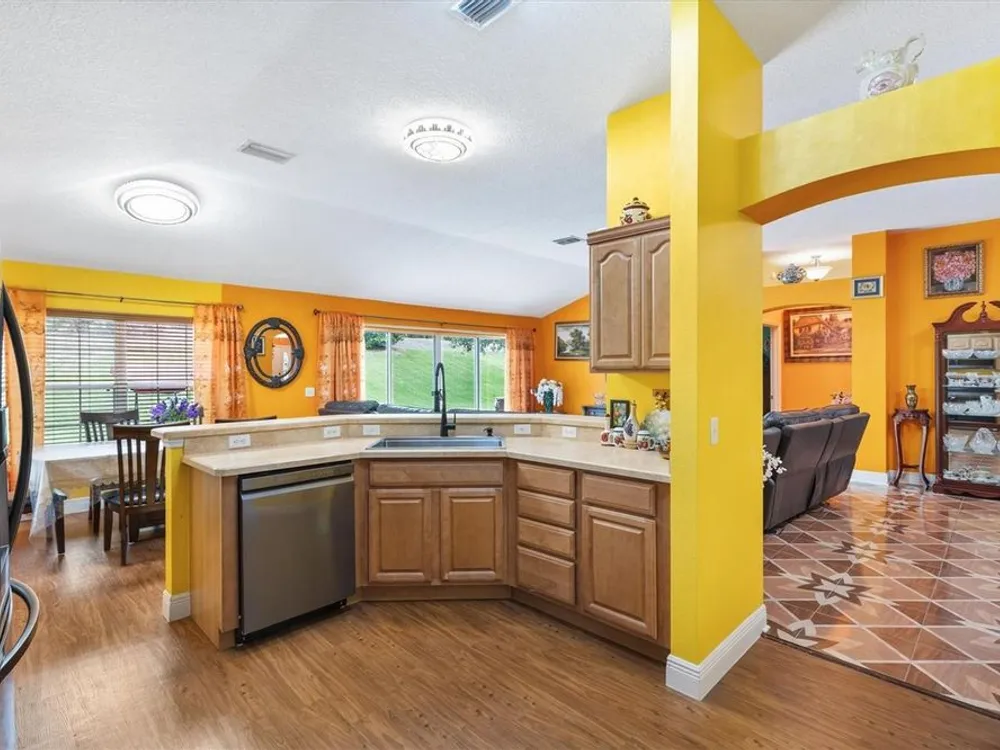 Welcome to Harbor Hills! This house in just inside the main gate making it easily accessible without having to drive throughout the neighborhood. NO Bond! Open floor plan with vaulted ceilings giving it a very spacious feeling, 2100 square feet, 3 bedroom, 2 bath, upgraded tile and laminate flooring, roof......hot water heater....HVAC......whole house water filtration system, no neighbors in the back, Enjoy the beautiful landscaping and the fruit trees. The amenities abound at Harbor Hills including golf with a clubhouse and dining, fitness center, swimming pool, tennis, pickleball and racquet , boat water access with 24 hour security. Close to The Villages, shopping, medical facilities and restaurants. This is not a 55+ community, you can bring the kiddos!