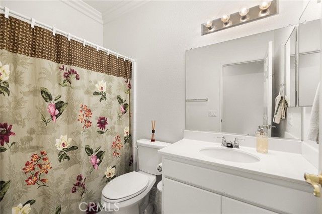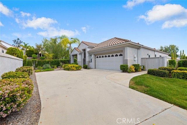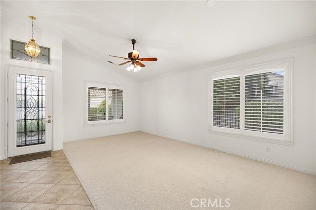 Gorgeous highly upgraded home in The Colony, a 55+ community with many amenities! This home is immaculate and ready to move in. Very well cared for! Open floorplan with plenty of space and lots of natural light. Gated courtyard entry, formal Living & Dining rooms at the front of the house, spacious kitchen with large center island which faces the Family Room. Family room has a gas fireplace and a TV niche. Large Primary Suite with high ceilings and a door to the patio, ensuite with dual sinks, soaker tub, shower, and walk-in closet. The 2nd bedroom does not have a closet, can be used as a den or office, or easily add a closet door. Bedroom 3 has tile flooring and is perfect for guests! Many upgrades including energy efficient windows, crown molding, plantation shutters, ceiling fans, and more! New paint & carpet! Enjoy the good life at The Colony! Amenities include pool, spa, gym, sport courts, BBQ area, clubhouse, and many activities.