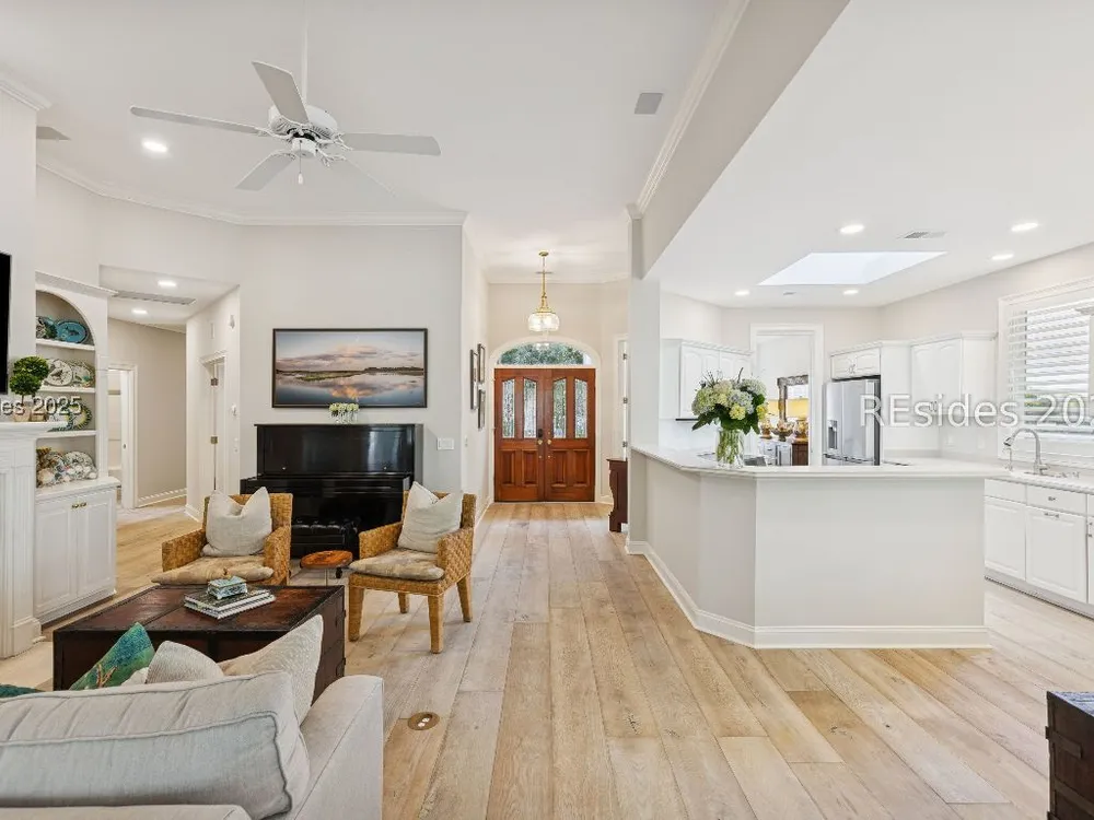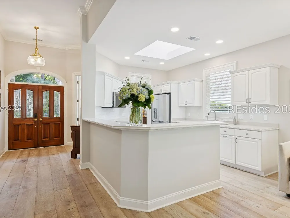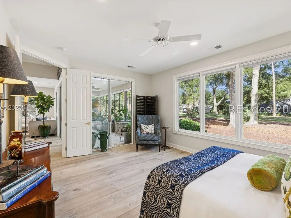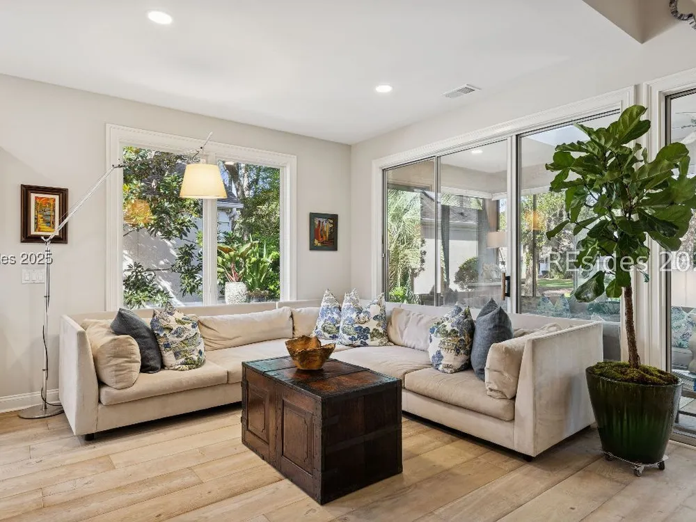 The best way to get into Indigo Run! An updated patio home that lives large. New wide-plank, white oak wood floors, new Kitchen appliances, painted inside and out++. This move-in ready home is so welcoming, offering a versatile and sought-after bright and open Great Room plan. A Dining Room that could easily be a Den/Office and an additional oversized dining area off the Kitchen, two bedrooms down and a Bonus/3rd Bedroom with ensuite bath over the garage. Carolina Room gives the homeowner additional living space while taking in the view on the ninth hole of the Golden Bear. Beautifully landscaped, this home is situated on one of only three patio home streets in Indigo Run. A small private cul-de-sac street being the most attractive with open space across from the front of the home and green golf course at the back make Bethel Court most desirable. Located in the center of Indigo Run close to the amenities that are offered via à la cart membership gives todays buyer the rare opportunity to decide on amenities all while enjoying an affordable POA in one of HHIs newest communities. 7 to 10 minutes from shopping center and the beach, this is a must see.