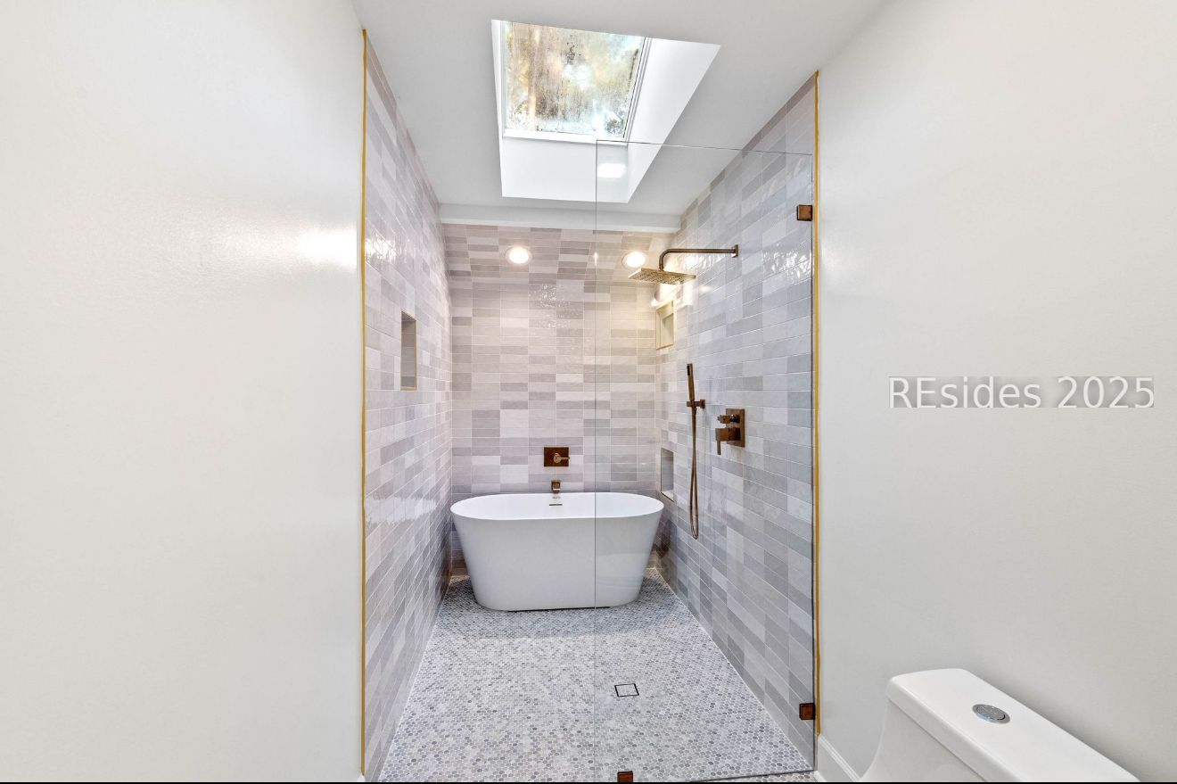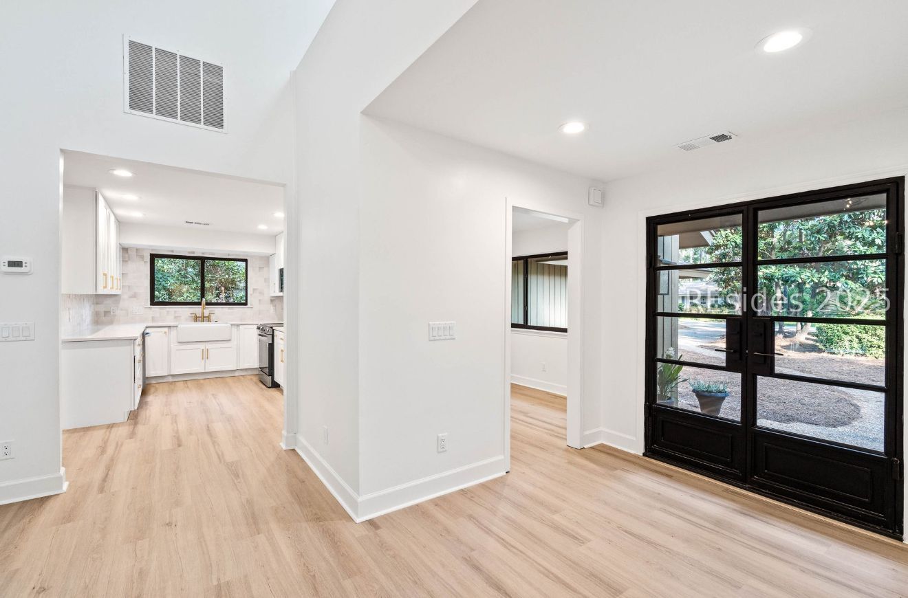 Step into the charm of Lowcountry living with this beautifully renovated 3BD/2.5BA home located in Hilton Head Plantation. This residence seamlessly combines coastal elegance with everyday comfort. The vaulted ceilings adorned with custom beams create a spacious and bright atmosphere, enhanced by designer lighting and high-quality finishes throughout. Enjoy gatherings with friends around the enclosed pool, relax on the patio that overlooks serene wooded views, or take a short stroll to Dolphin Head Recreation and enjoy a walk on the beach. Nestled on a private 1/3 acres lot within one of the island's most sought-after gated communities, this property offers more than just a home, it's a perfect everyday retreat. Sold "As Is"