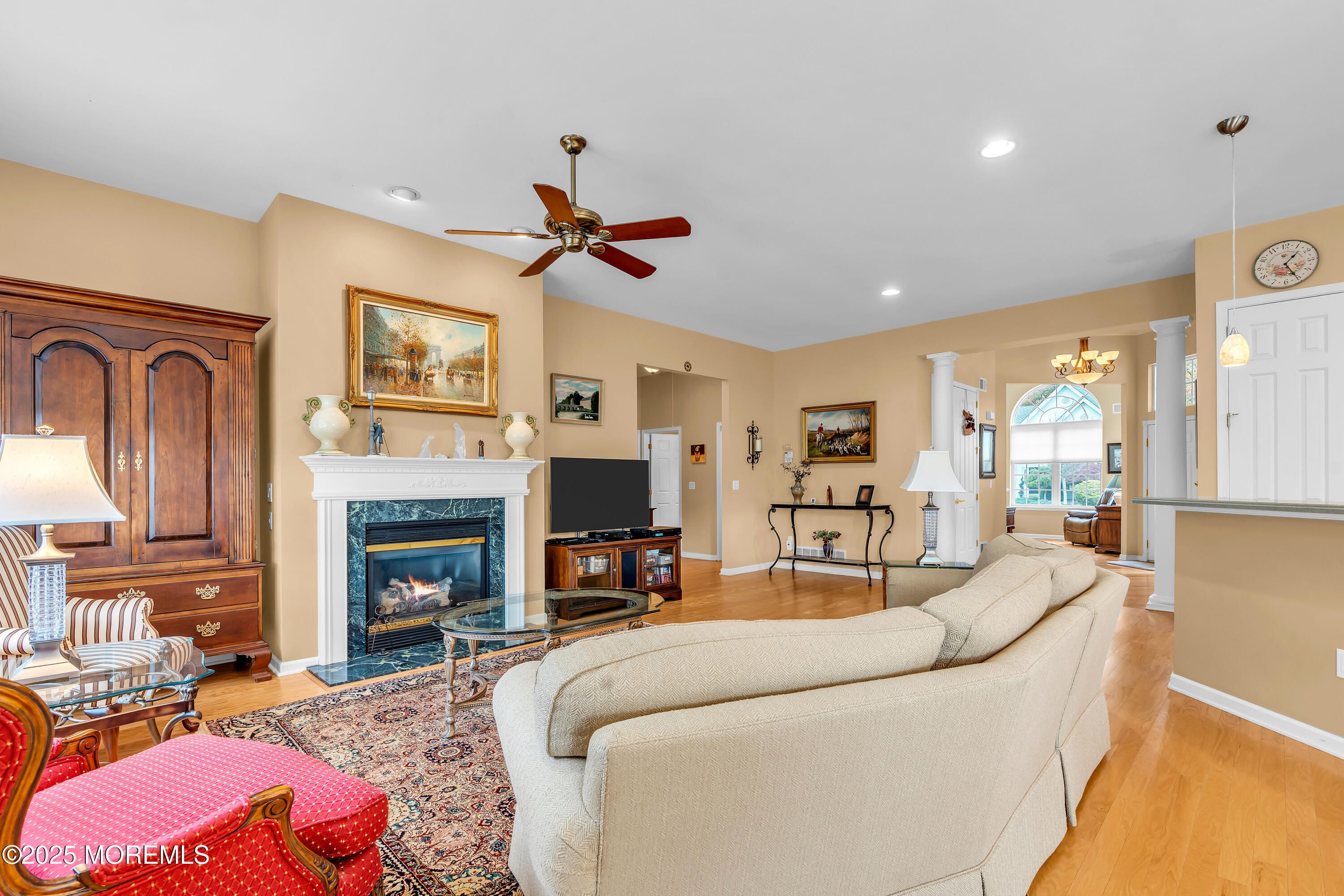 Riviera at Freehold a Toll Brothers built adult community is now offering a one story Prestwick model. This home has engineered hardwood flooring throughout, 2 bedrooms, 2 full baths, gas fireplace in the family room and office or media room. The main Bedroom has a large Walk in closet. It also comes with custom made Hunter Douglas shades for most of the windows. The house is nicely situated with curb appeal with a park like backyard. BONUS The home is covered with a 1 year homeowner's warranty that covers heating, A/C and hot water heater. This warranty will be transfered at closing. Hot Water heater was replaced 3yrs ago and appliances were changed out about 4 years ago. Please note that this home has a whole house generator.