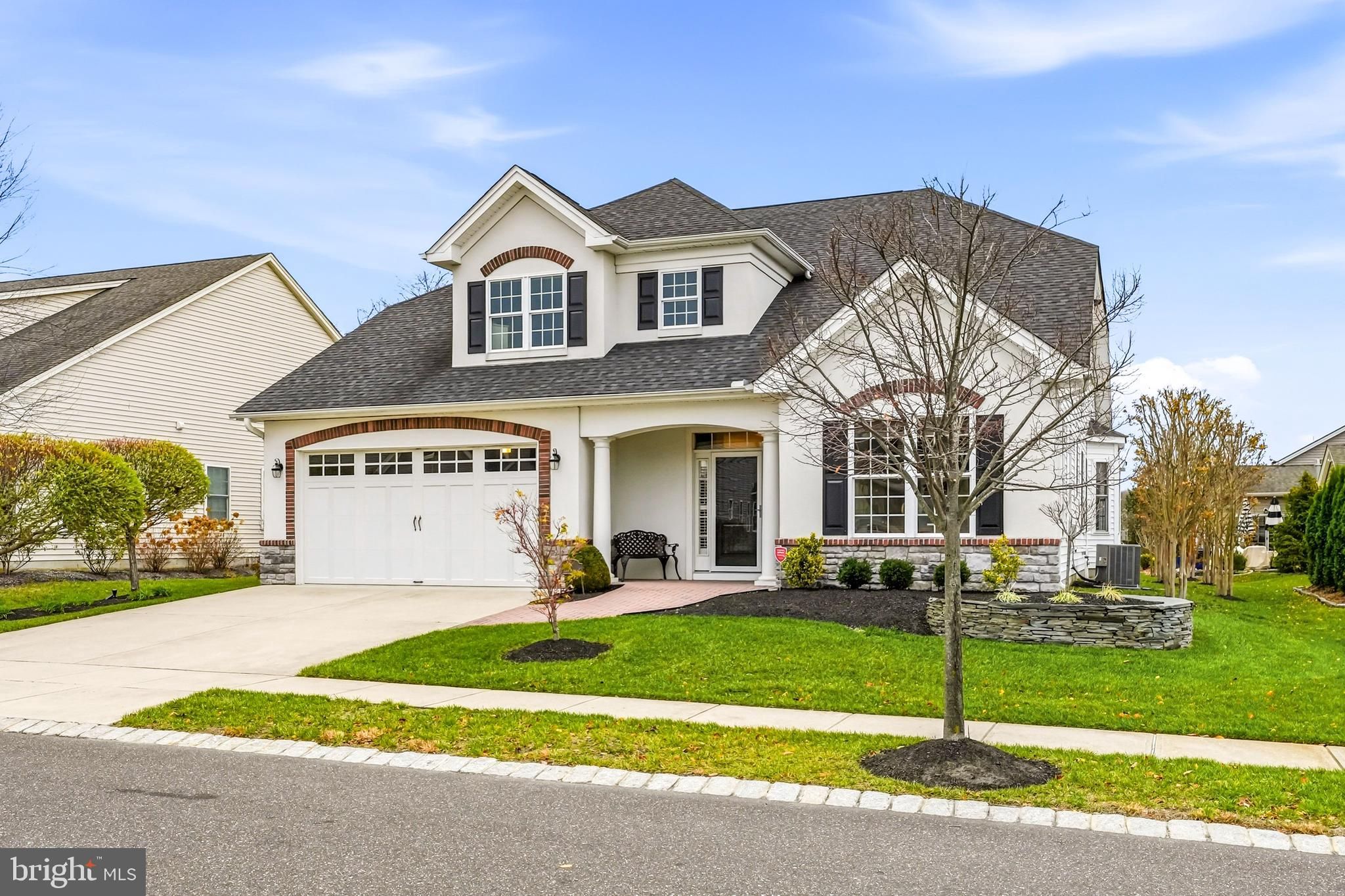 Welcome to the life you’ve been waiting to live. Tucked within the tranquil cul-de-sacs of Wyngate at Medford, Bob Meyer’s premier 55+ community, this exceptional Castell model is anything but typical. From the moment you arrive, it’s clear no expense was spared—every upgrade, every detail, every thoughtful enhancement was selected to elevate comfort, beauty, and ease. Set on one of the largest lots in the community, this European-style home presents itself with show-stopping curb appeal—lush landscaping, a paver walkway, and a charming covered entrance that sets the tone for what awaits inside. Step through the front door and experience a Foyer that feels like a quiet celebration: an octagonal boxed tray ceiling, elegant wainscoting and chair rail, and wide-plank flooring that flows seamlessly throughout the main level, drawing you forward into the heart of the home. Custom plantation shutters add a refined touch to every main-floor space. Just off the Foyer, a private study with French doors and built-in bookcase offers an inspiring space for reading, working, or pursuing hobbies. The smart layout includes two first-floor bedrooms—a private guest suite with pocket-door access to its own bath, and the beautifully appointed Primary Suite, where an expanded walk-in closet, custom organizers, and a curved entrance to the spa-inspired bath create a peaceful retreat. Indulge in an oversized, floor-to-ceiling tiled shower with dual showerheads, a marble bench, and luxurious finishes. The open-concept living area—enhanced by a 4-foot extension to both the breakfast room and great room—is ideal for gatherings large or small. A 42" gas fireplace adds warmth and ambiance, while the Gourmet Kitchen is a true showpiece: Woodmode Brookhaven cabinetry, granite countertops, tile backsplash, Bosch stainless-steel appliances, a 36" gas cooktop with exterior-vented hood, and double wall ovens. Whether you’re preparing holiday meals or hosting weekend brunch, this kitchen rises to the occasion. A well-designed laundry room with cubbies, cabinets, utility sink, and two full closets keeps daily life organized and effortless. Upstairs, the home continues to surprise. A spacious game room—complete with pool table—sits alongside a massive third bedroom with its own full bath and storage room, perfect for long-term guests, hobbies, or multigenerational living. But the Wyngate lifestyle is about more than a beautiful home—it’s about a community designed to enrich your days. Enjoy a luxurious clubhouse, sparkling pool, fitness center, game room, library, tennis courts, and a full calendar of activities that bring neighbors together. Move right in and begin the next chapter of your life—relaxed, refined, and absolutely unforgettable—right here in Wyngate at Medford.