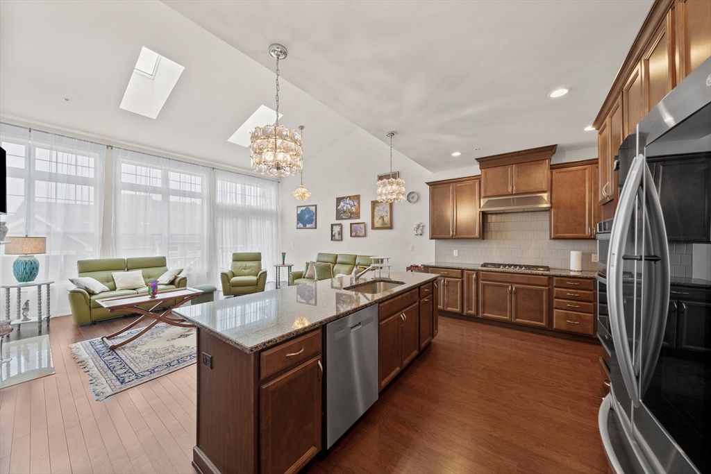 - Range, Dishwasher, Disposal, Microwave, Refrigerator, Plumbed For Ice Maker