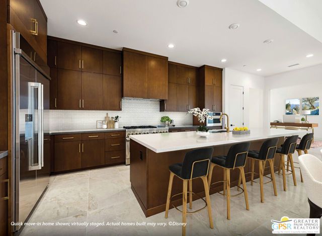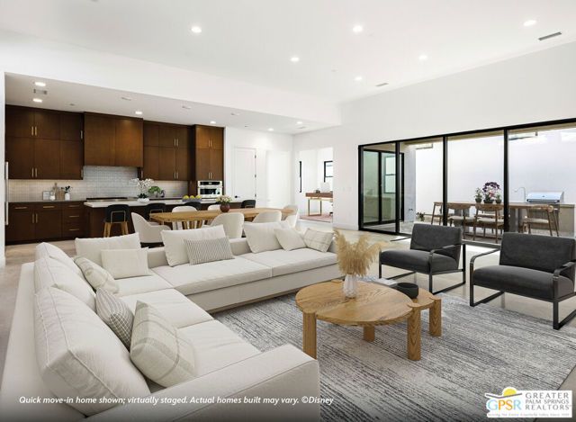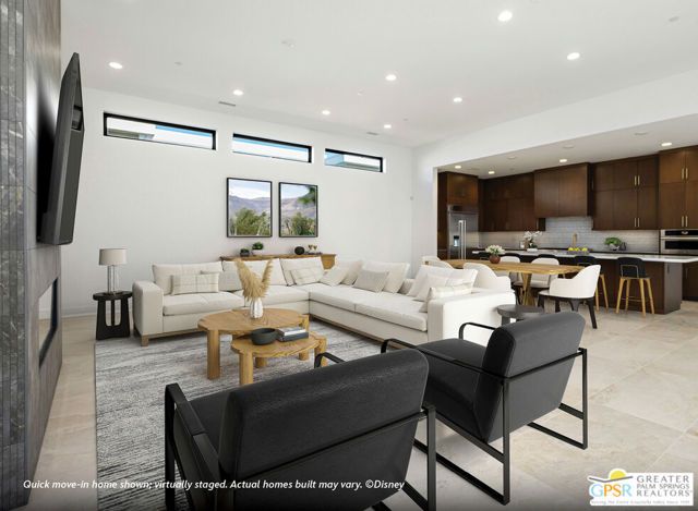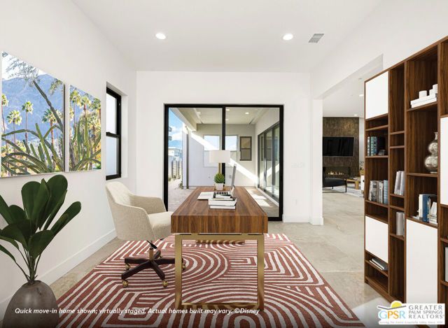 Welcome to Cotino, a Storyliving by Disney community, located in Rancho Mirage. Nestled in the serene Longtable Park section of the community, this exquisite 2-bedroom, 2.5-bathroom home (Atelier) by Shea Homes is thoughtfully designed for those 55+ who seek a harmonious blend of luxury and tranquility. Encompassing approximately 2,262 square feet, this residence invites you to experience resort-style living. The striking Agrarian exterior by Shea Homes sets the tone for character, while the open floor plan celebrates the seamless indoor-outdoor lifestyle that defines the Palm Springs area lifestyle. The gourmet kitchen, outfitted with high-end appliances, an elegant backsplash, and an oversized island, creates the perfect setting for entertaining and connection. The refined primary suite offers a sanctuary with a well-appointed bath and direct access to the outdoors. The secondary bedroom, complete with an attached bath, along with a versatile flex space, provides flexible living options tailored to your needs. Cotino combines natural beauty, charming parks, and the magic of Disney to create a unique and vibrant community -- perfect for beginning your next chapter. Come see for yourself and experience all that this exceptional community has to offer.