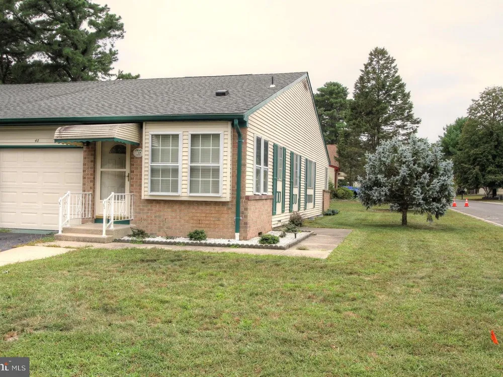 55+ Community Crestwood Village 5. Orleans Model is a two-bedroom home with a full bath and dressing room, laundry room with washer and dryer, an eat-in kitchen with stove and refrigerator, and a generous-sized living room. This house also offers a front Sunroom and an attached garage. It has newer windows, a Garage Door, and more.