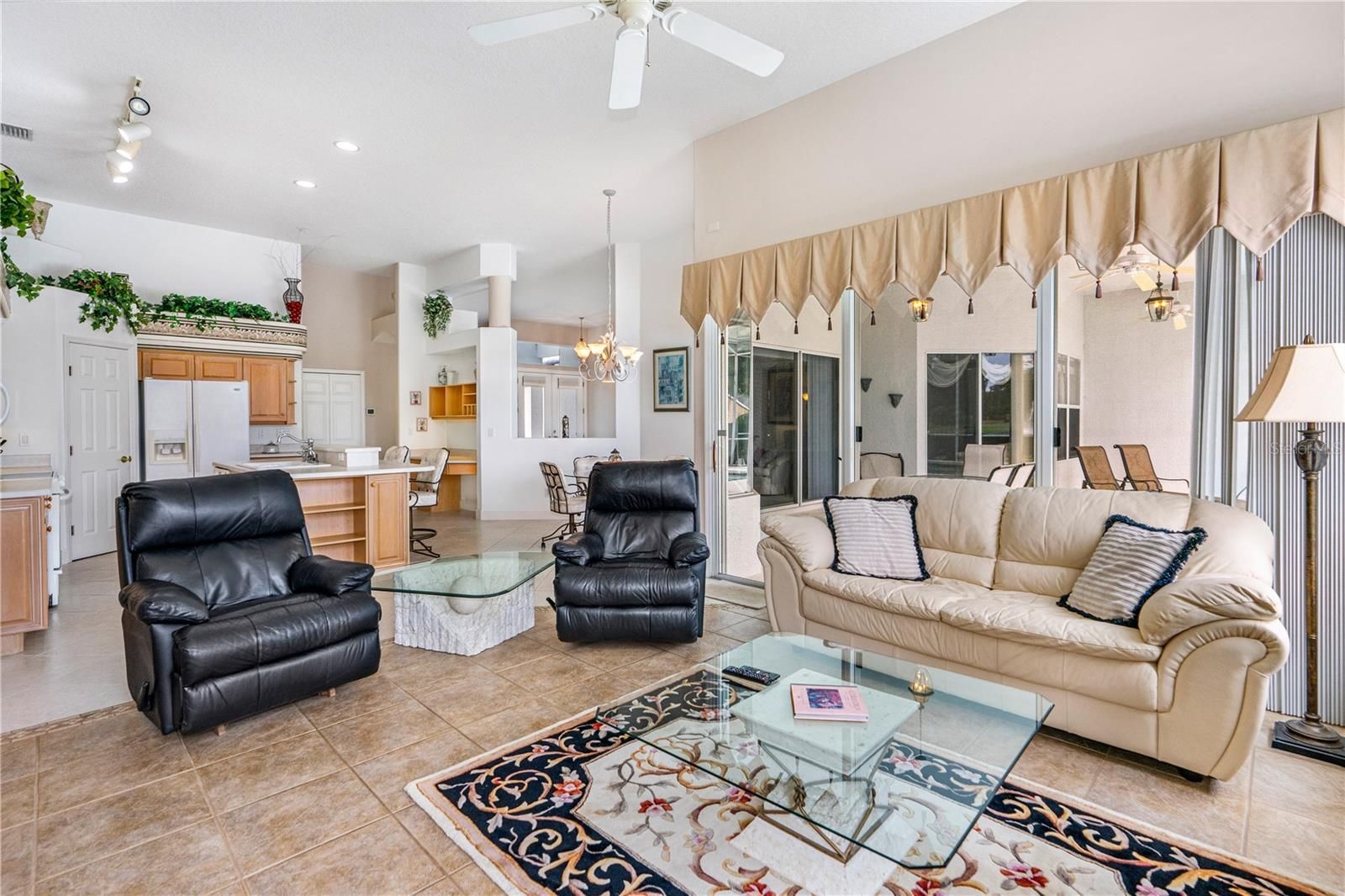 - Ceiling Fan(s), High Ceilings, Living/Dining Room, Open Floorplan, Main Level Primary