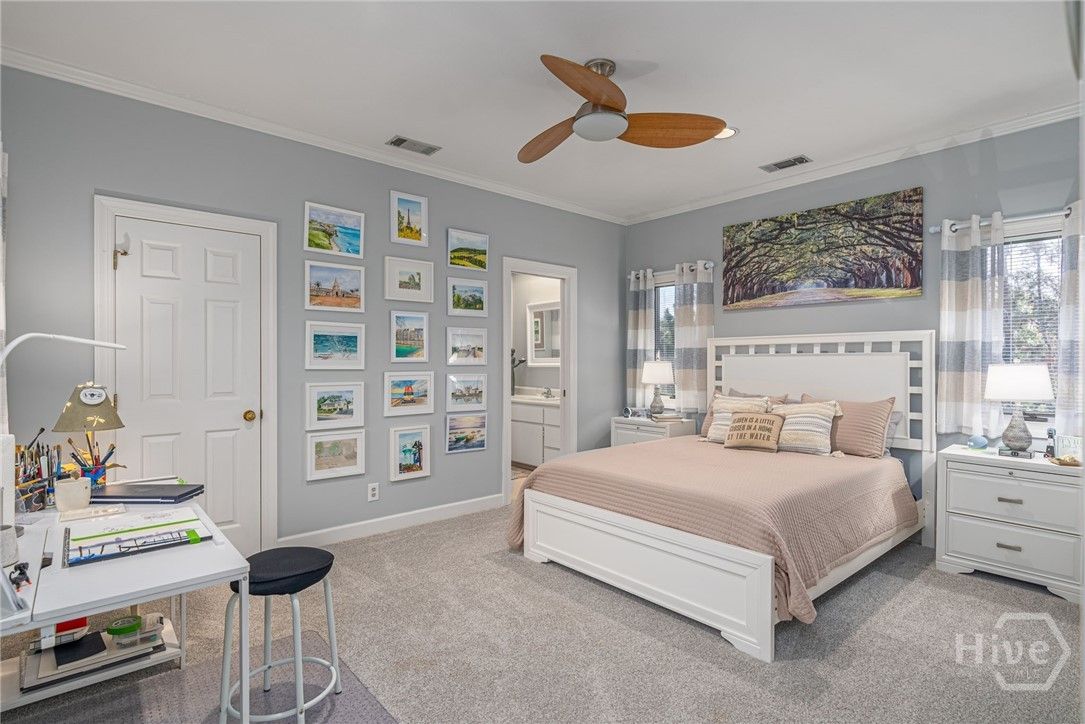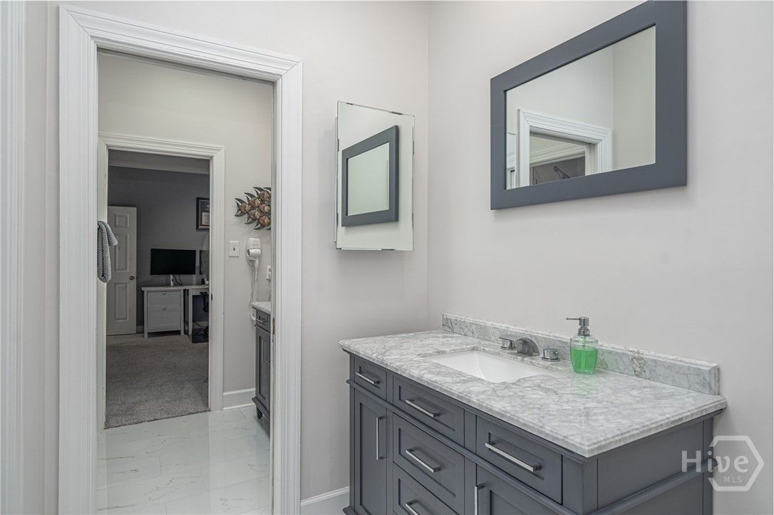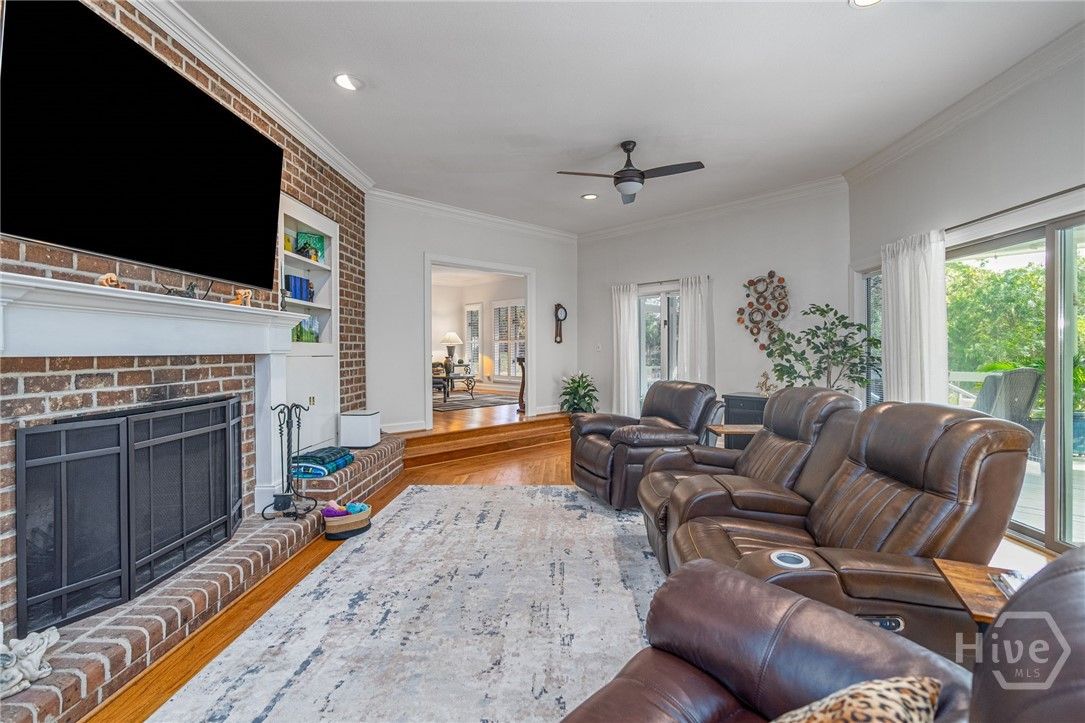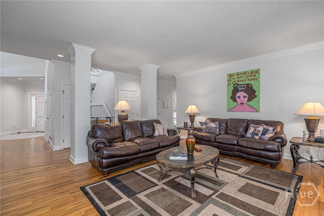 Located on a private lot in The Landings on Skidaway Island, this 3,893 sq. ft. home offers unobstructed marsh and golf course views, 4 bedrooms, 3.5 bathrooms, and a flexible layout built for real life. The main level features a spacious living room, formal dining, a separate den, and a covered porch overlooking the view. The kitchen has been updated with obsidian countertops, modern appliances, and a new backsplash. Upstairs, a loft overlooks the two-story foyer and provides space for an office, playroom, or additional lounge area. The primary suite includes a fully renovated bathroom with upgraded finishes. The Jack-and-Jill and half baths have also been updated. Additional features include a tankless water heater, refreshed landscaping, and an oversized garage with dedicated golf cart parking, a workshop, and ample storage. Move-in ready, meticulously maintained, and positioned to take full advantage of the Landings lifestyle.