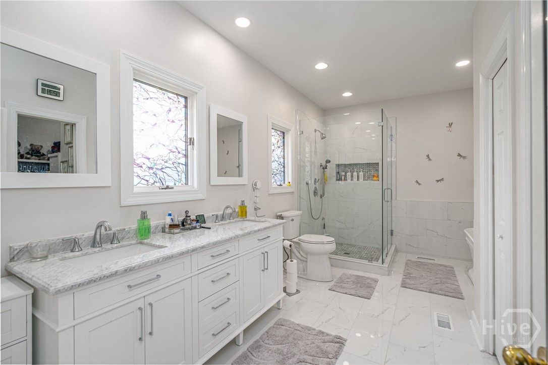 - Attic, Built-in Features, Double Vanity, Entrance Foyer, Gourmet Kitchen, Garden Tub/Roman Tub, High Ceilings, Kitchen Island, Main Level Primary, Pantry, Pull Down Attic Stairs, Recessed Lighting, Separate Shower, Programmable Thermostat