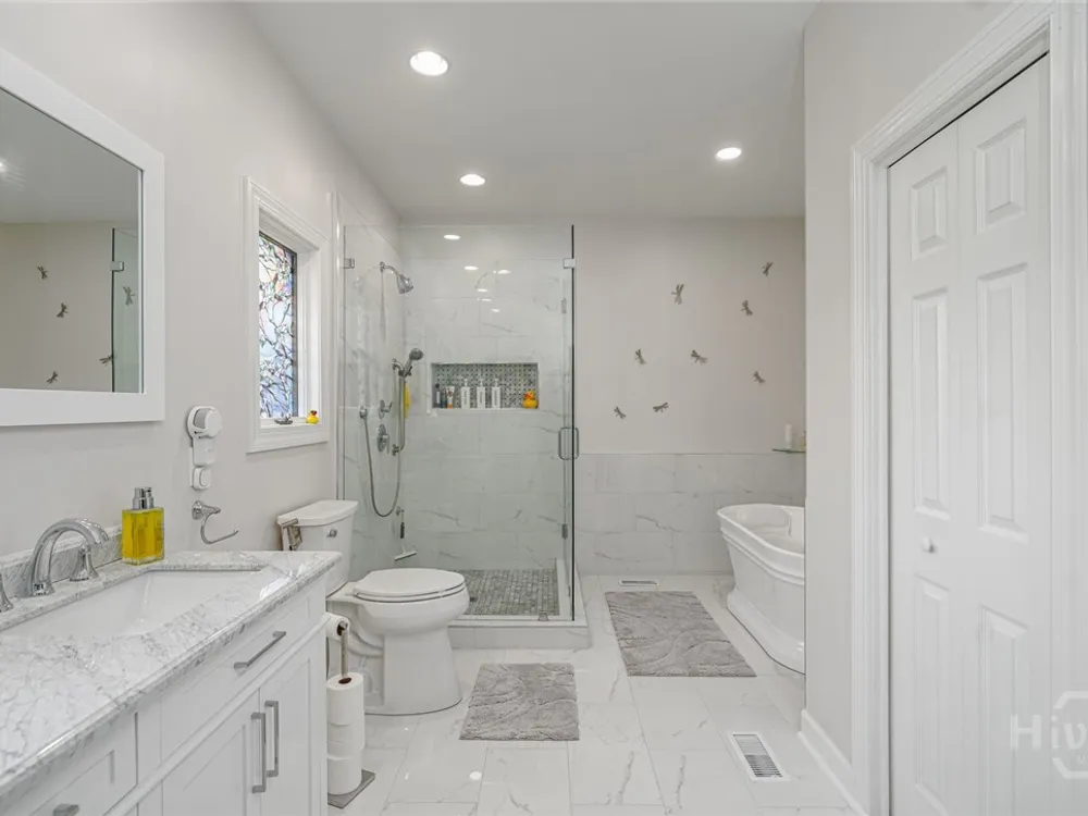 - Attic Access, Built-in Features, Double Vanity, Entrance Foyer, Gourmet Kitchen, Garden Tub/Roman Tub, High Ceilings, Kitchen Island, Main Level Primary, Pantry, Pull Down Attic Stairs, Recessed Lighting, Separate Shower, Programmable Thermostat