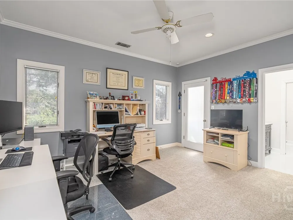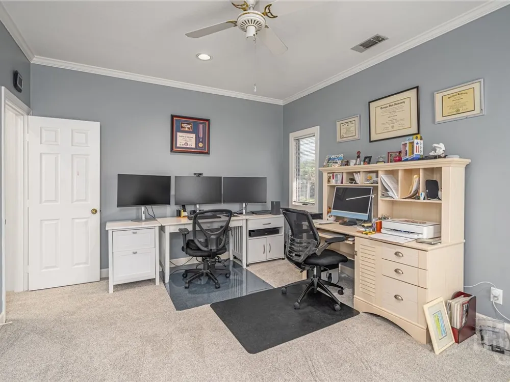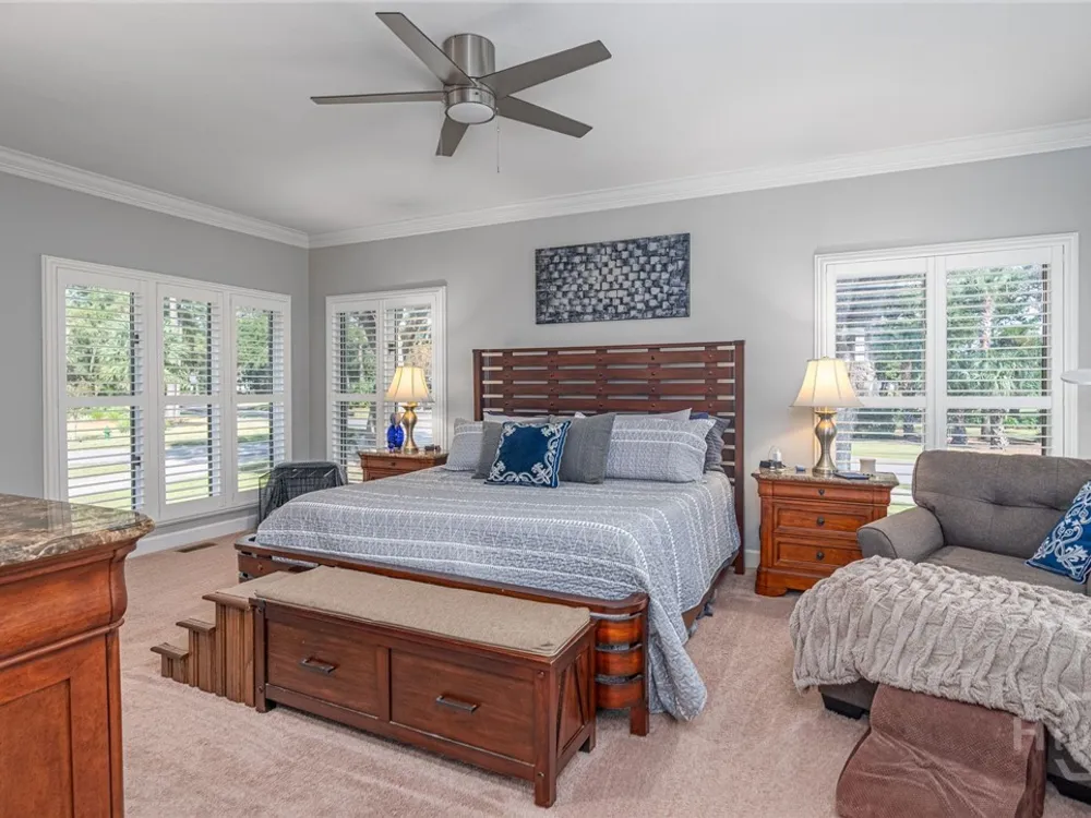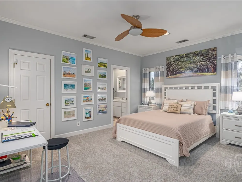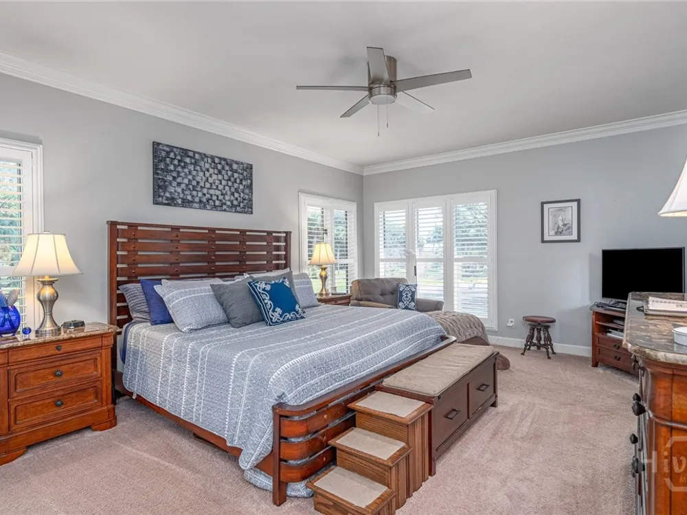 Tucked away on a quiet, private lot with unobstructed marsh and golf course views, this 3,893 sq. ft. residence is a masterclass in timeless Southern living. Graceful proportions, refined updates, and natural beauty come together to create a home that feels both elegant and effortless. With 4 bedrooms, 3.5 updated baths, and a flowing layout, every space invites connection—from the dramatic two-story foyer to the sunlit loft above. The kitchen stuns with obsidian countertops, modern appliances, and a chic new backsplash, while the reimagined primary suite offers a serene escape with a spa-inspired bath. Outside, the covered porch is perfectly positioned to capture every golden hour. Thoughtful extras include a tankless water heater, refreshed landscaping, and an oversized garage with golf cart bay, storage, and workshop space. Rich in comfort and style, this home offers the luxury of space—and the luxury of stillness.