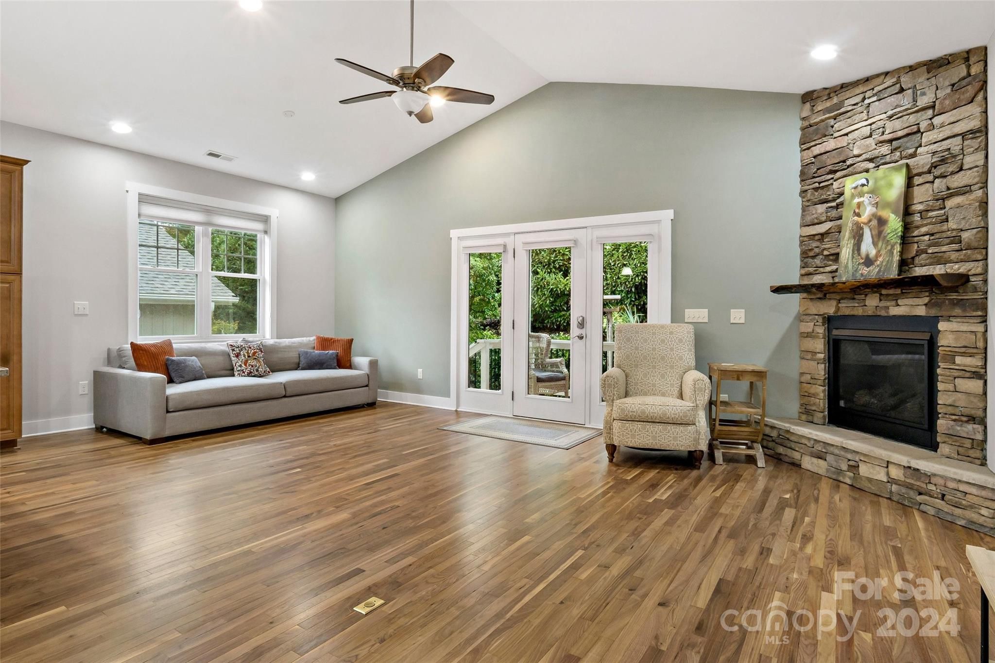 Have you been endlessly looking for a newer one-level living home with as few stairs as possible? Then come experience this beautiful home where a "lock and go" lifestyle meets the warmth of this close-knit community. The open floor plan features vaulted ceilings, a cozy gas fireplace, and abundant natural light. The kitchen includes stainless steel appliances, a central island, and a breakfast bar, perfect for entertaining. Step out from the dining area onto a charming covered patio, ideal for relaxing with a fenced-in backyard and privacy bushes. Spacious bedrooms with walk-in closets and an attached 2-car garage provide comfort and ample storage. This home feels new with refinished hardwood floors, fresh carpet, and a new coat of paint. Enjoy your home and favorite activities while the HOA cares for your yard work. Located less than 20 minutes from Asheville and 10 minutes from Black Mountain, this home offers both convenience and low-maintenance living.