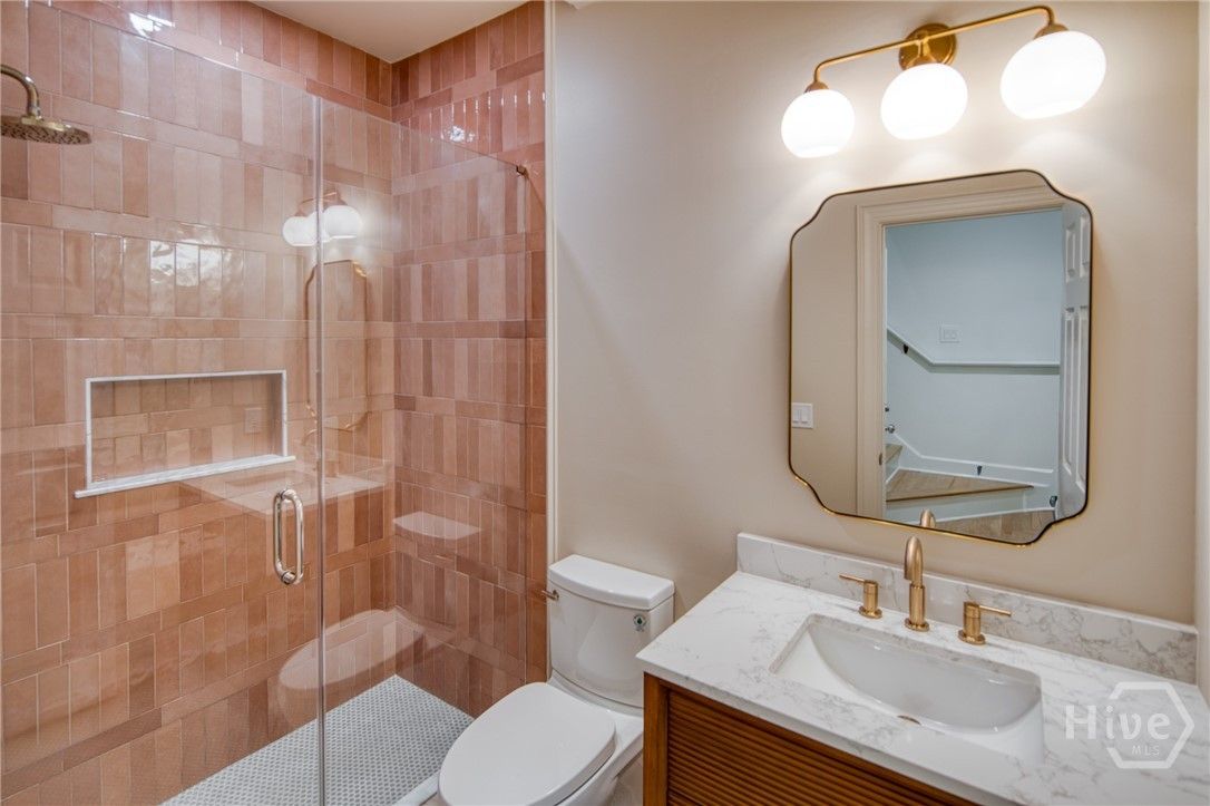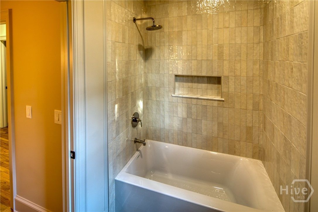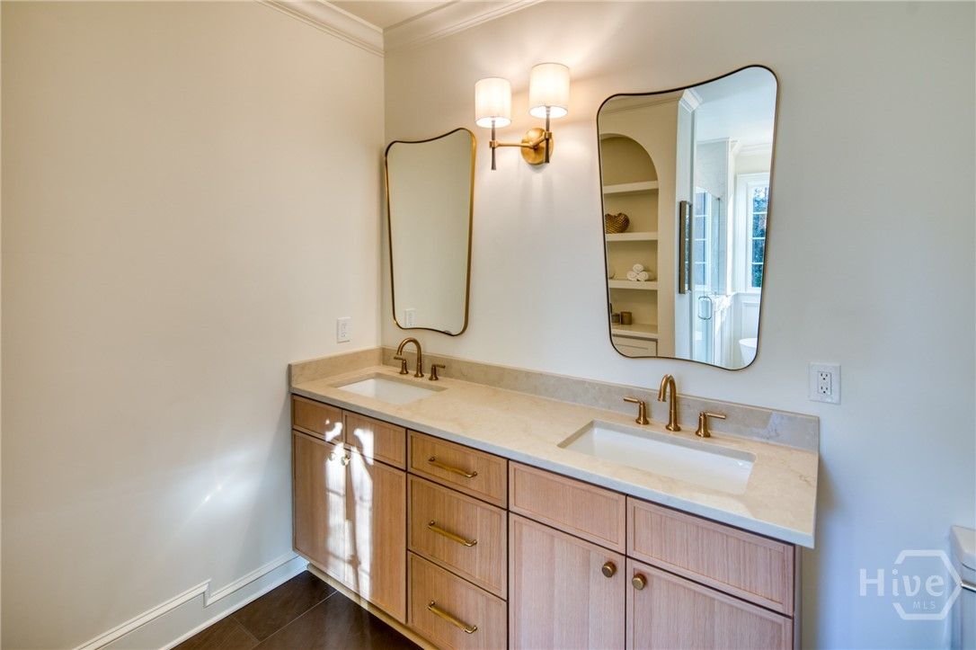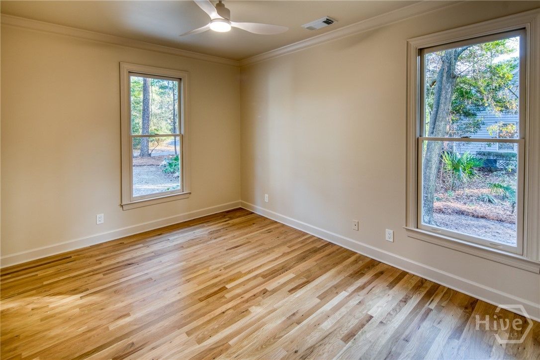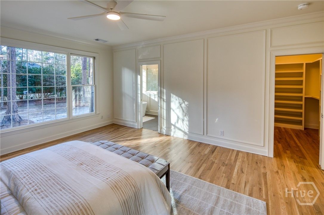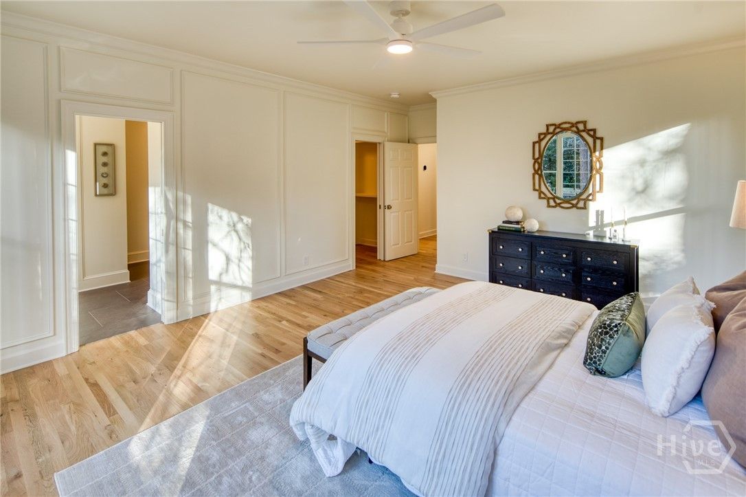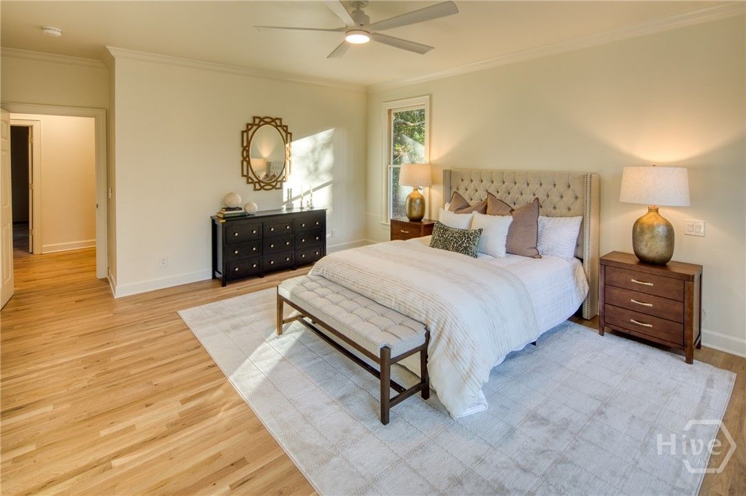 Completely reimagined from top to bottom, 4 Planters Lane offers beautifully renovated living in the highly coveted Landings community. This 4 bedroom, 3.5 bath home blends timeless design with thoughtful modern upgrades throughout. A welcoming entry anchored by a solid mahogany front door opens to elegant interiors featuring custom wall treatments, abundant natural light, and stunning herringbone white oak hardwood flooring in the living room, complemented by refinished solid hardwoods throughout the remainder of the home. The chef’s kitchen is anchored by quartz countertops, custom cabinetry, and generous prep space, while a combined laundry room and secondary wet kitchen adds everyday convenience. The primary suite serves as a private retreat with a freestanding soaking tub, walk-in shower, double vanity, arched linen storage, and custom-designed closet. Additional improvements include new insulated glass window sashes, crawlspace encapsulation with dehumidifier, copper exterior lighting, and a two-car garage with a dedicated golf cart bay—perfect for Landings living.
